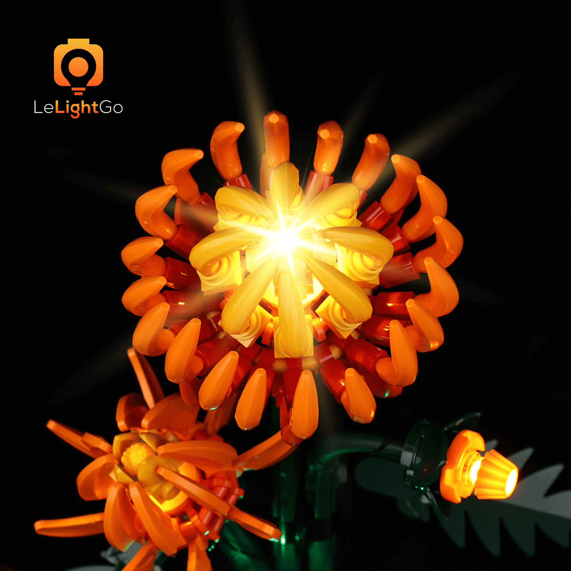 Bring magical shine to your LLG Chrysanthemum 10368. This lighting kit is designed especially for the Lego ICONS Chrysanthemum 10368. This highly detailed Lego model is a spectacle in itself, but when paired with the LeLightGo lighting kit, the charming model comes alive, not only during the day but also at night.
