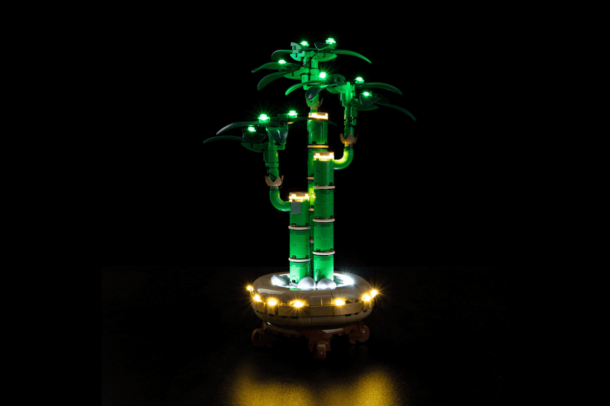 Bring magical shine to your Lucky Bamboo 10344. This lighting kit is designed especially for the Lego Botanical Collection Lucky Bamboo 10344. This highly detailed Lego model is a spectacle in itself, but when paired with the LeLightGo lighting kit, the charming model comes alive, not only during the day but also at night.