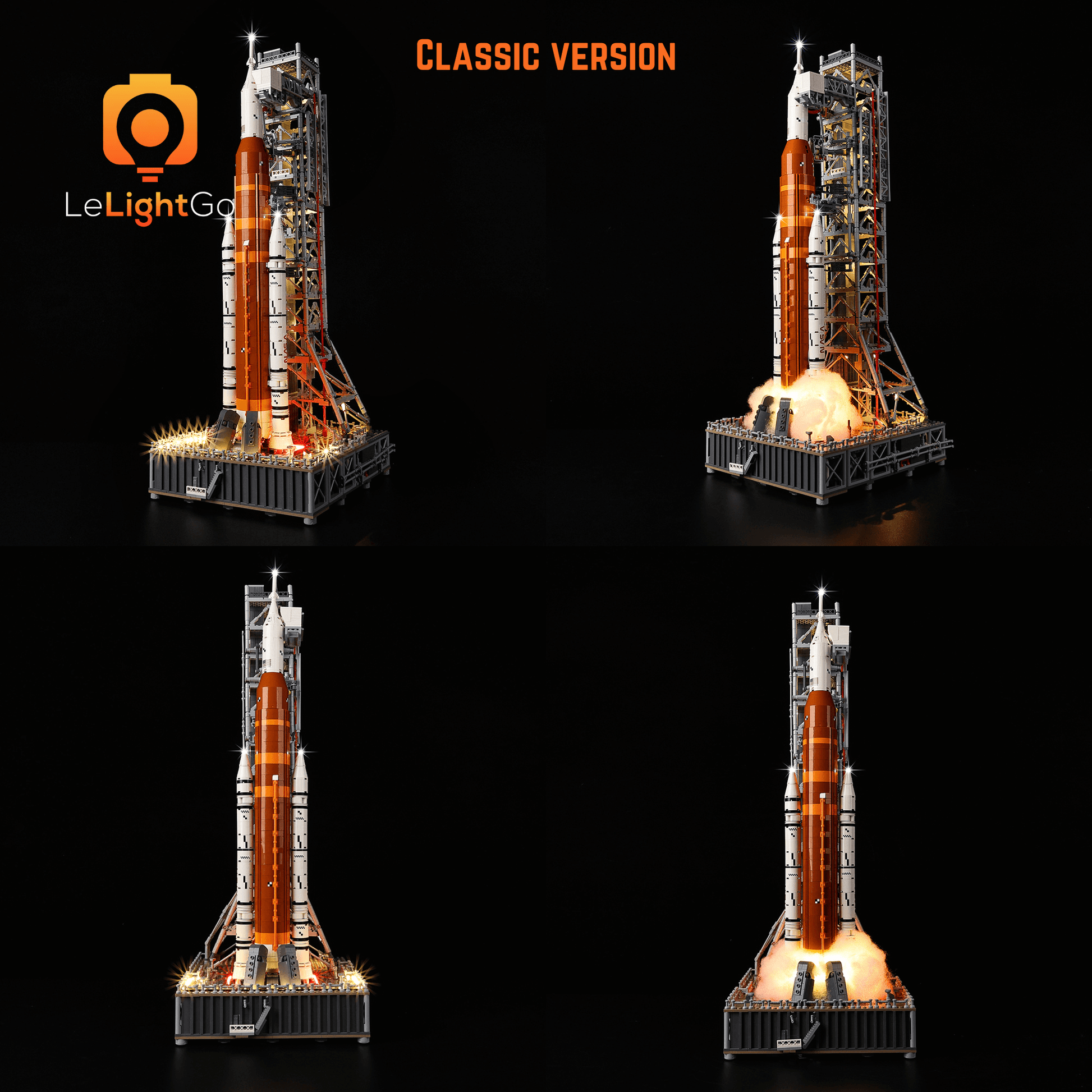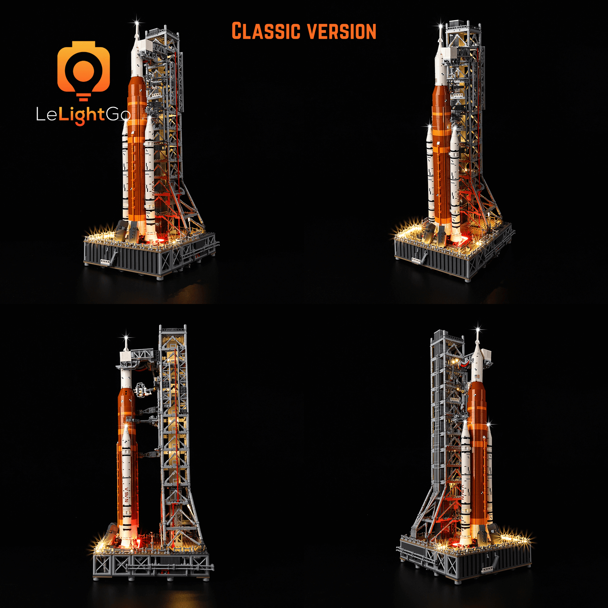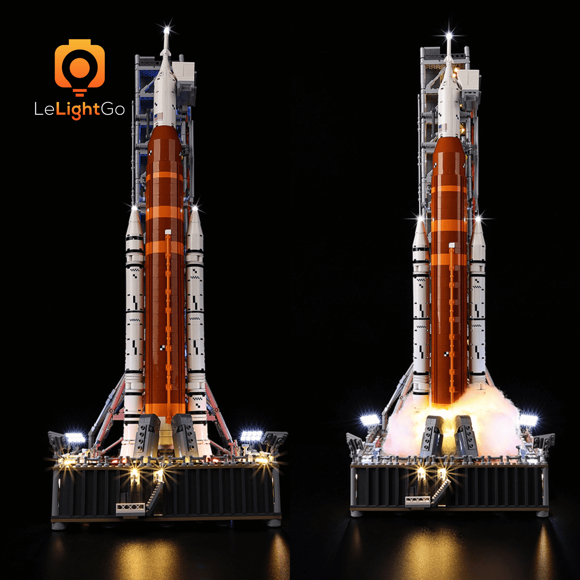 Follow LeLightGo step-by-step instructions to light up your NASA Artemis Space Launch System 10341, something amazing will happen at night. All our kits are plug-and-play - no electronics knowledge is needed!