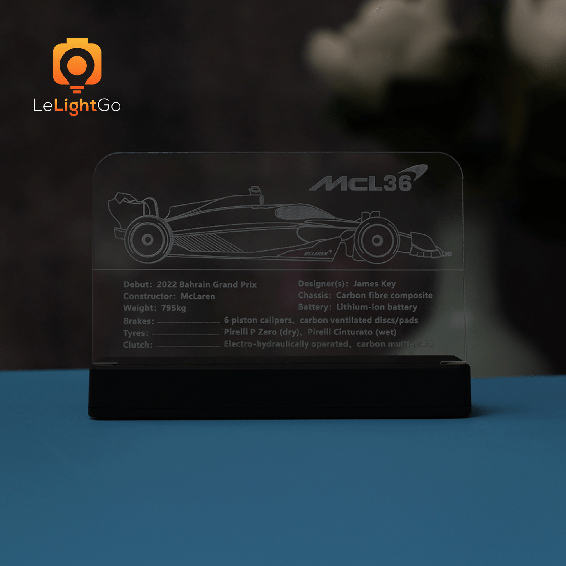 - Clear acrylic nameplate is designed specifically for McLaren Formula 1 Race Car Lego set, the personalized nameplates with graphics and basic information about the LEGO set.