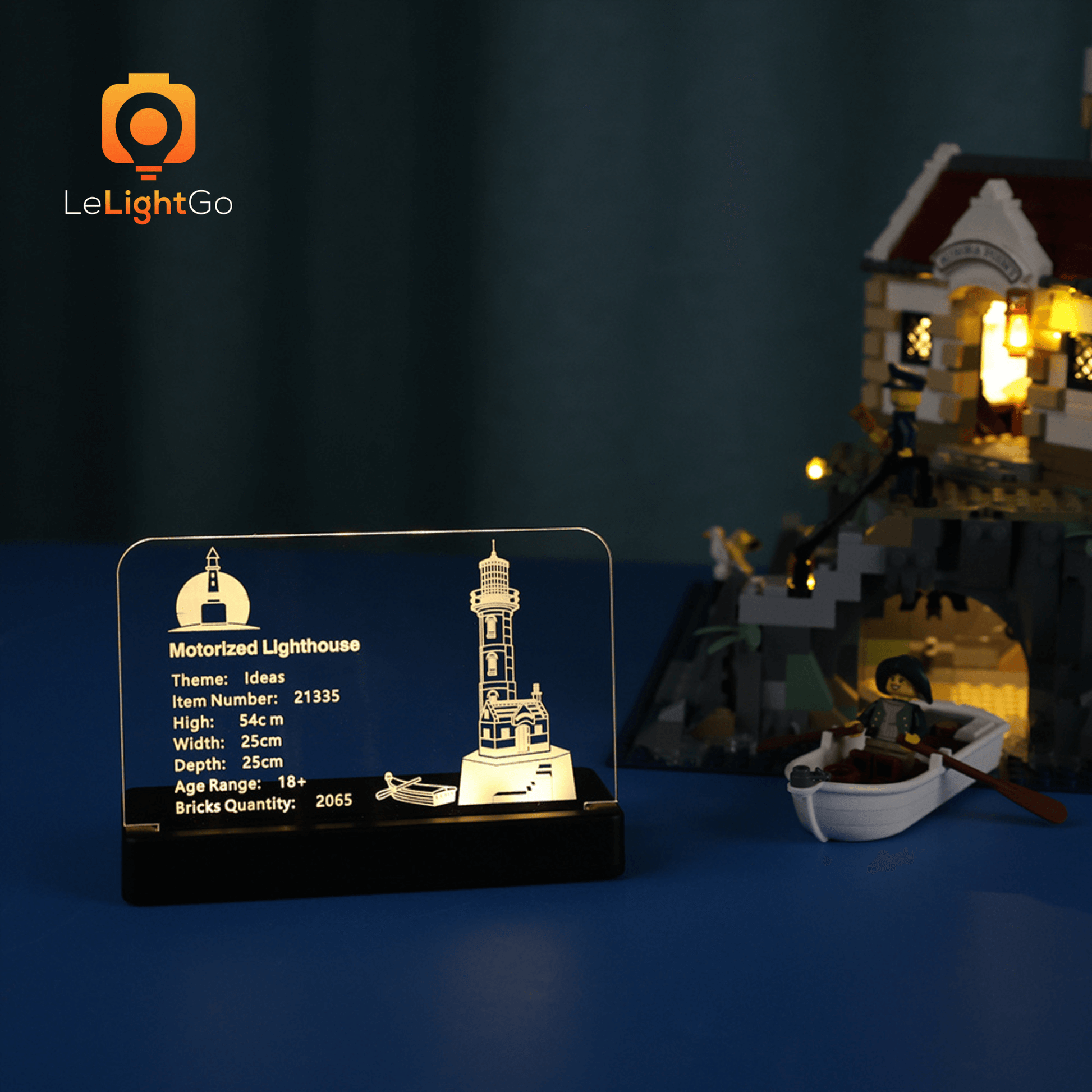 - Clear acrylic nameplate is designed specifically for Motorized Lighthouse Lego set, the personalized nameplates with graphics and basic information about the LEGO set.
