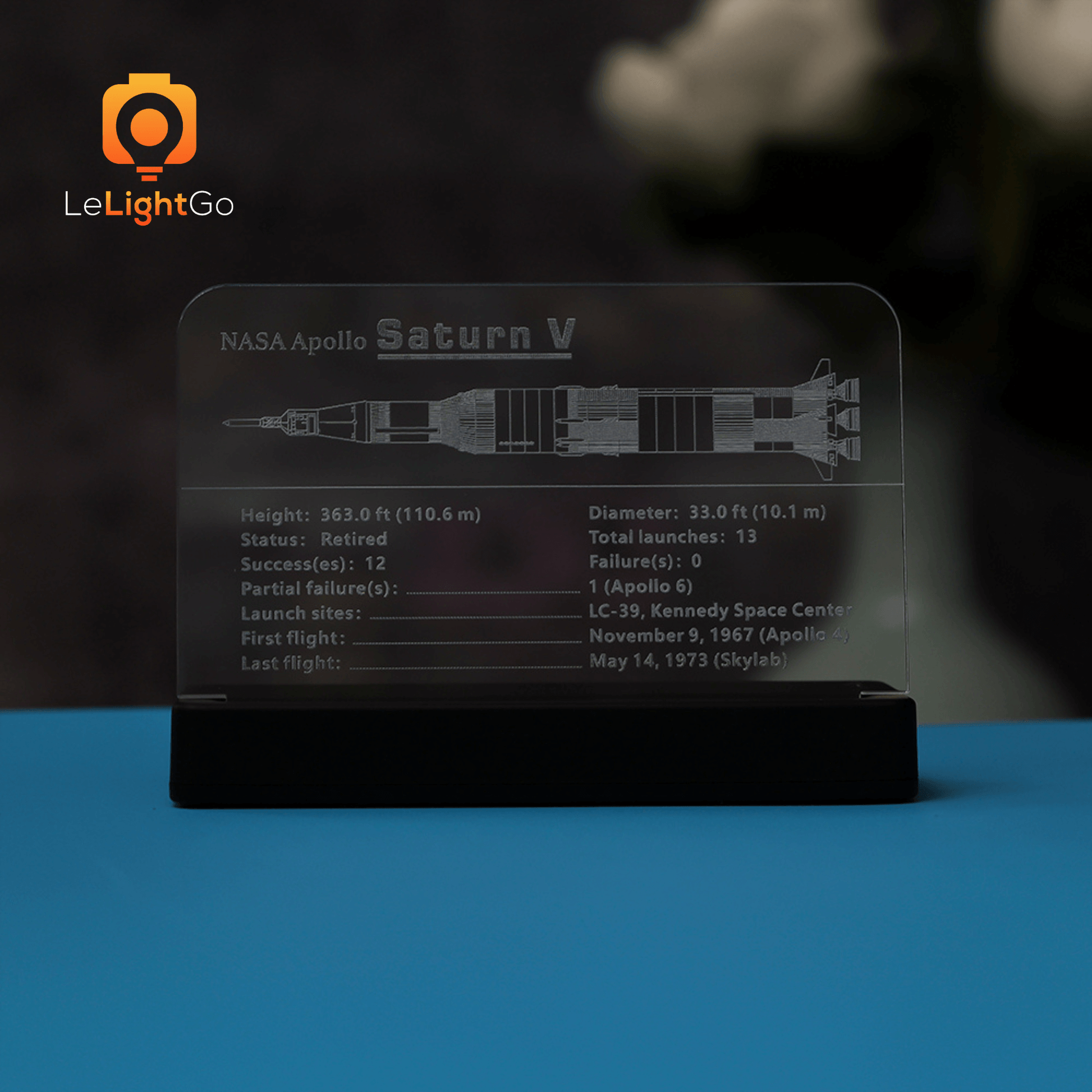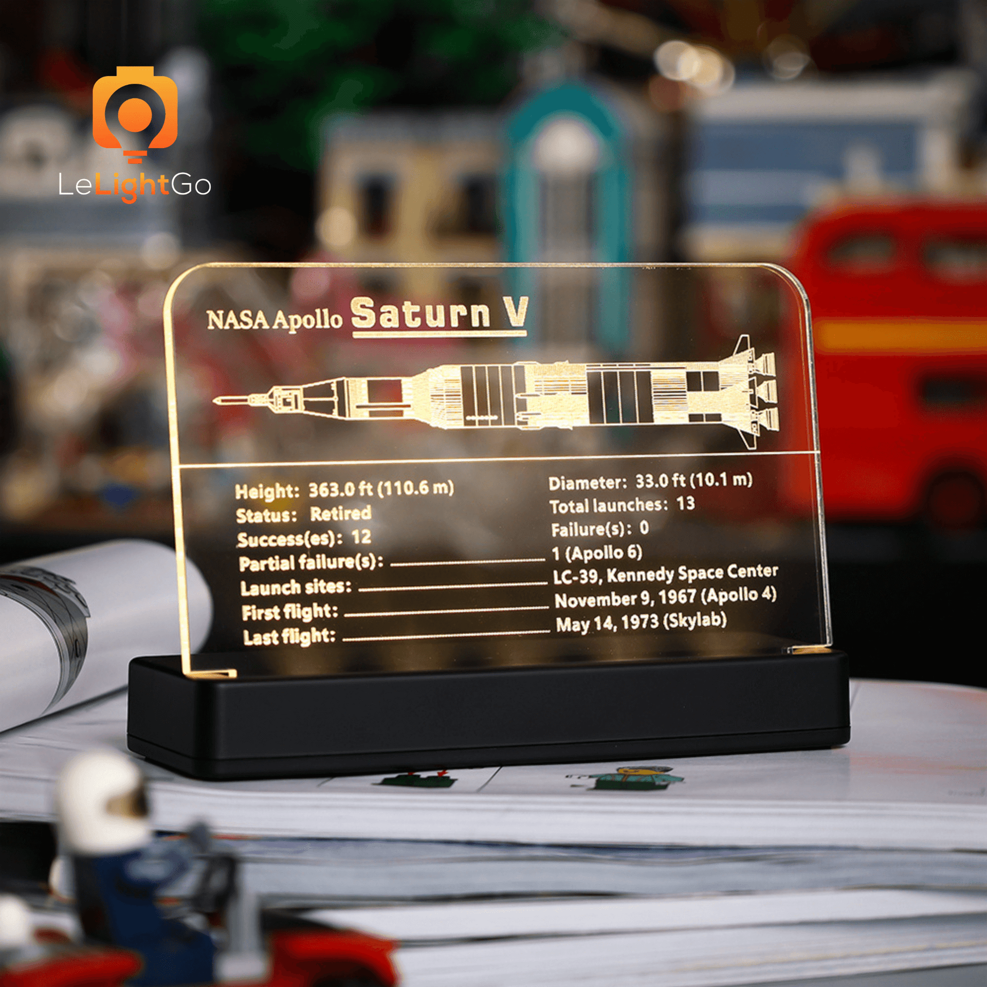 - Clear acrylic nameplate is designed specifically for NASA Apollo Saturn V Lego set, the personalized nameplates with graphics and basic information about the LEGO set.