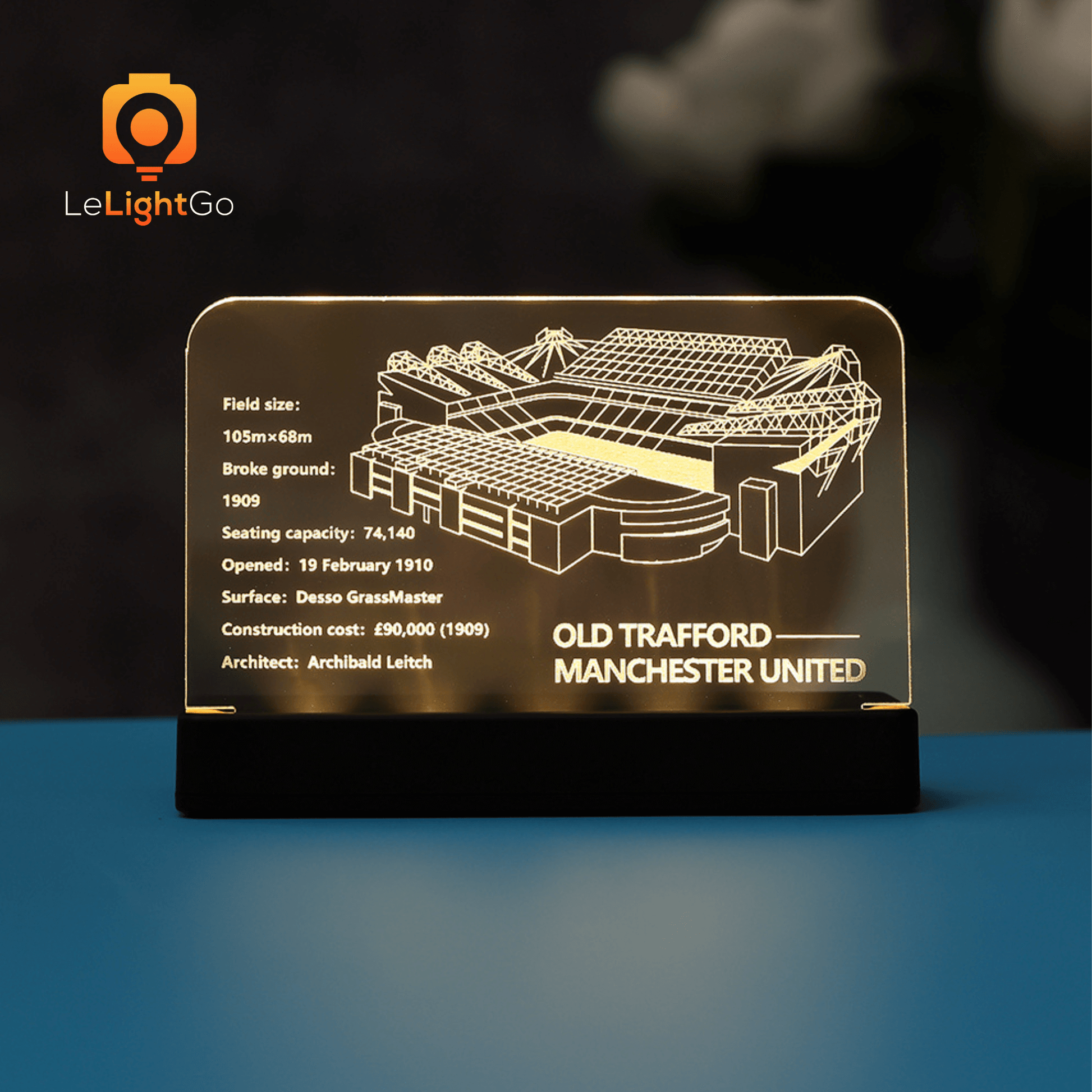 Making Old Trafford - Manchester United LEGO set more entertaining to see is different from actually building it. Use our fantastic LED Nameplates for LEGO Old Trafford - Manchester United to exhibit your favorite Old Trafford - Manchester United set. The nameplates artfully display the set's name along with fascinating facts about the model, the function, the type of the set, and other exciting details.