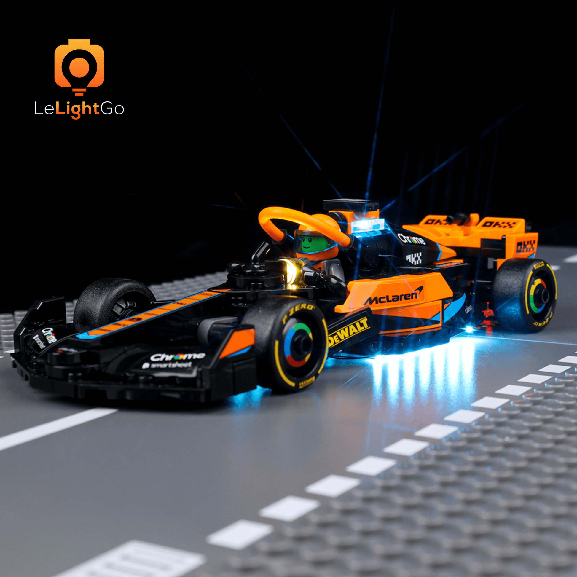 Follow LeLightGo step-by-step instructions to light up your 2023 McLaren Formula 1 Race Car 76919, something amazing will happen at night. All our kits are plug-and-play - no electronics knowledge is needed!