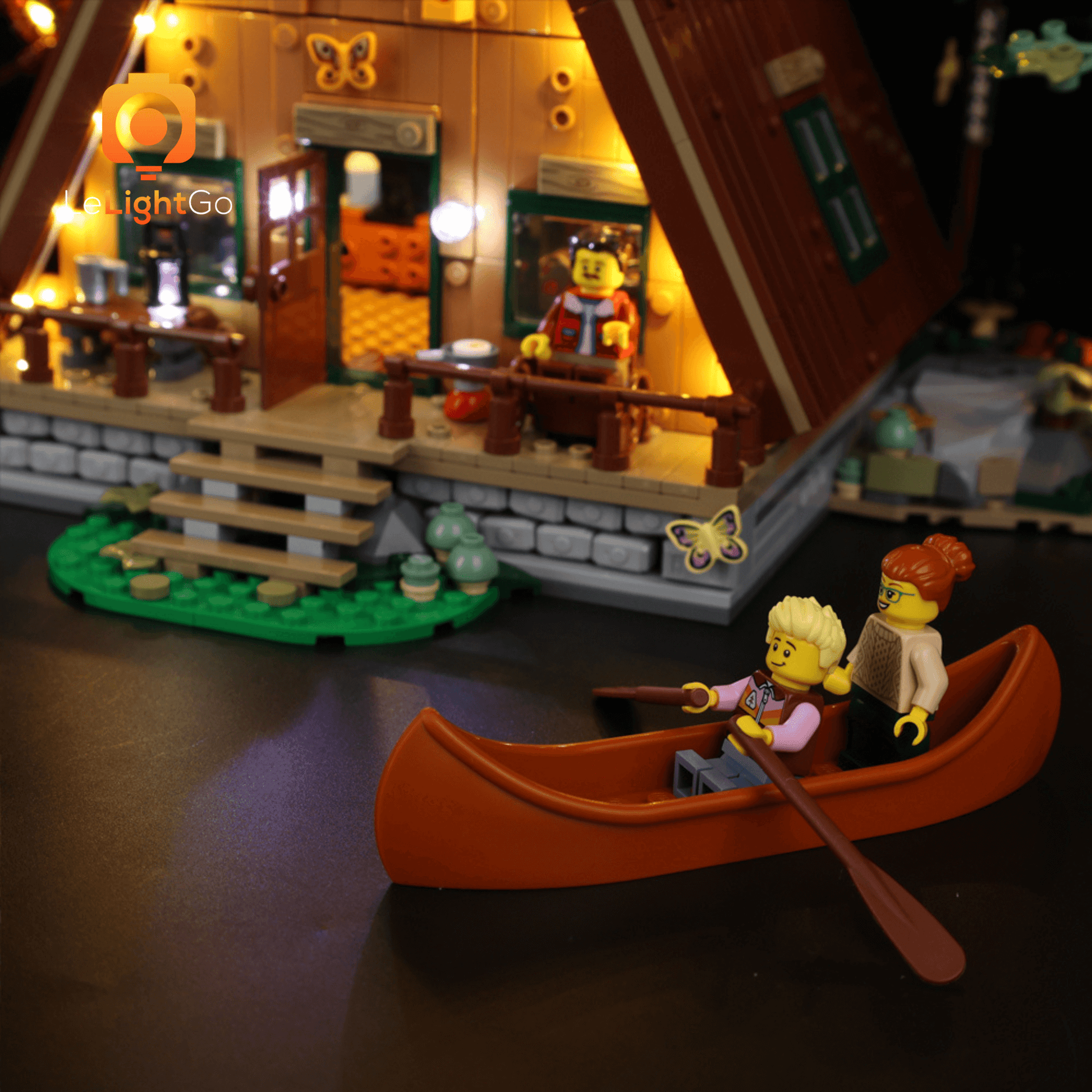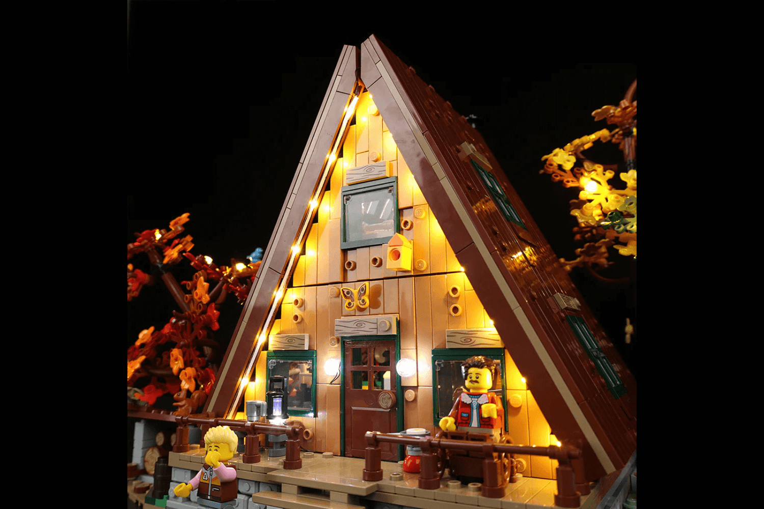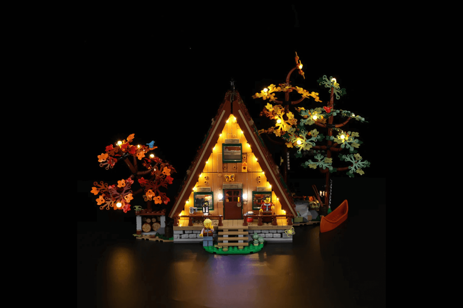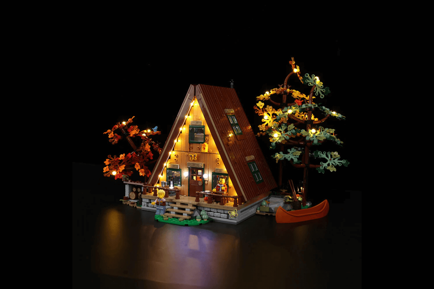 Turn your A-Frame Cabin LEGO® Set into a glowing masterpiece that feels alive.
