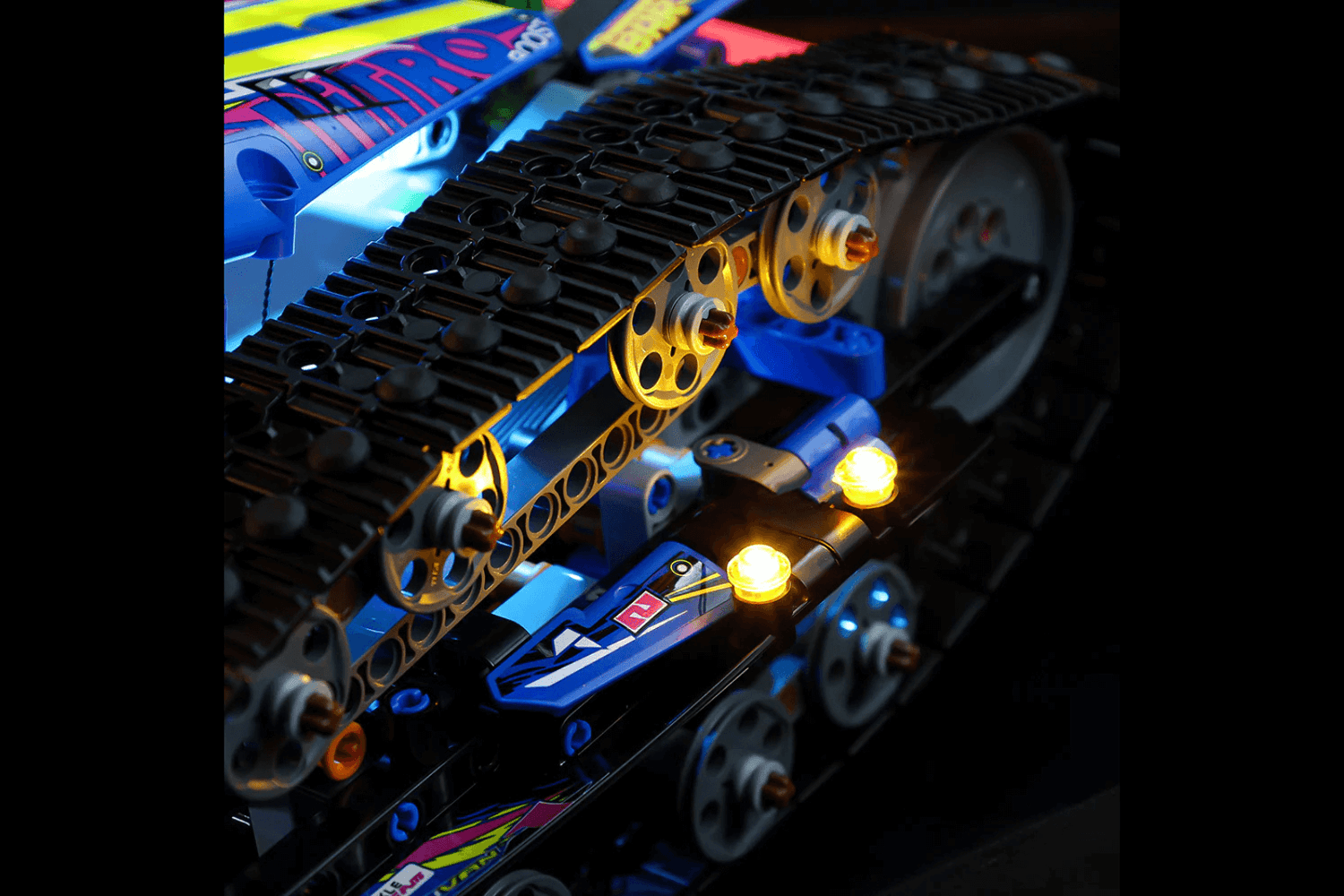 Bring magical shine to your App-Controlled Transformation Vehicle 42140. This lighting kit is designed especially for the Lego TECHNIC App-Controlled Transformation Vehicle 42140. This highly detailed Lego model is a spectacle in itself, but when paired with the LeLightGo lighting kit, the charming model comes alive, not only during the day but also at night.
