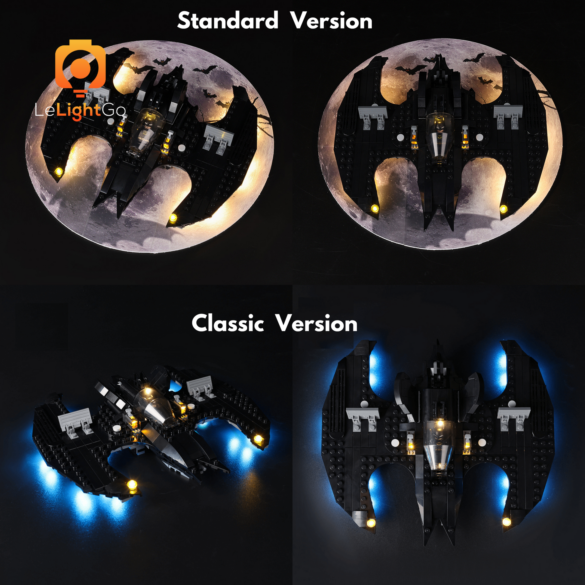Follow LeLightGo step-by-step instructions to light up your Batwing: Batman vs. The Joker 76265, something amazing will happen at night. All our kits are plug-and-play - no electronics knowledge is needed!