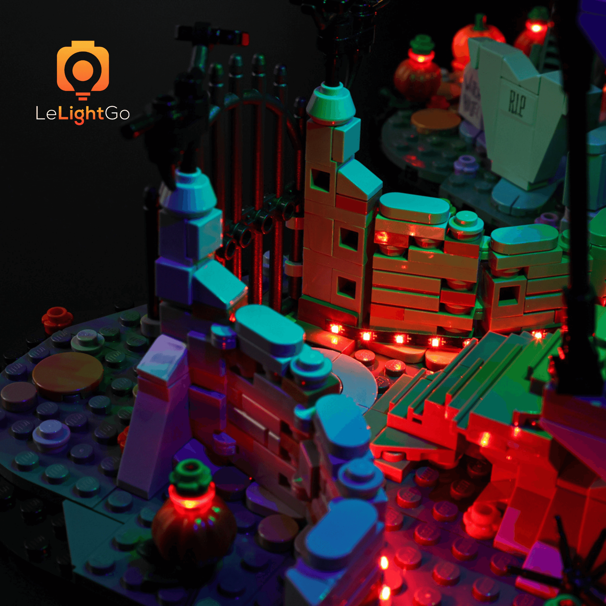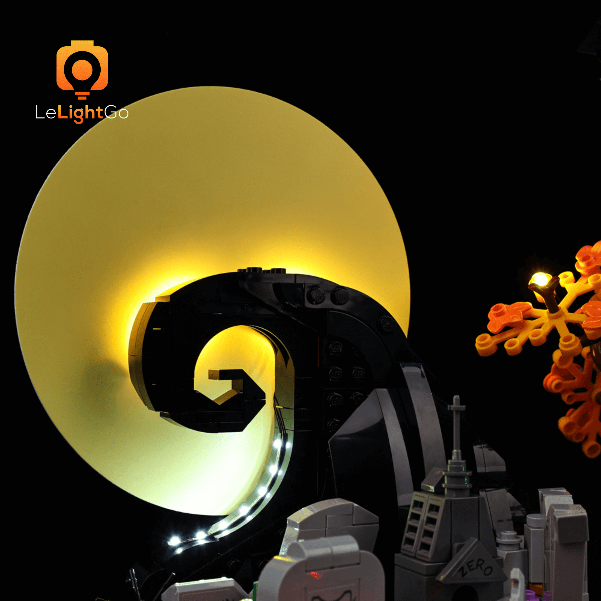 Bring magical shine to your Disney Tim Burton's The Nightmare Before Christmas 21351. This lighting kit is designed especially for the Lego Ideas Disney Tim Burton's The Nightmare Before Christmas 21351. This highly detailed Lego model is a spectacle in itself, but when paired with the LeLightGo lighting kit, the charming model comes alive, not only during the day but also at night.