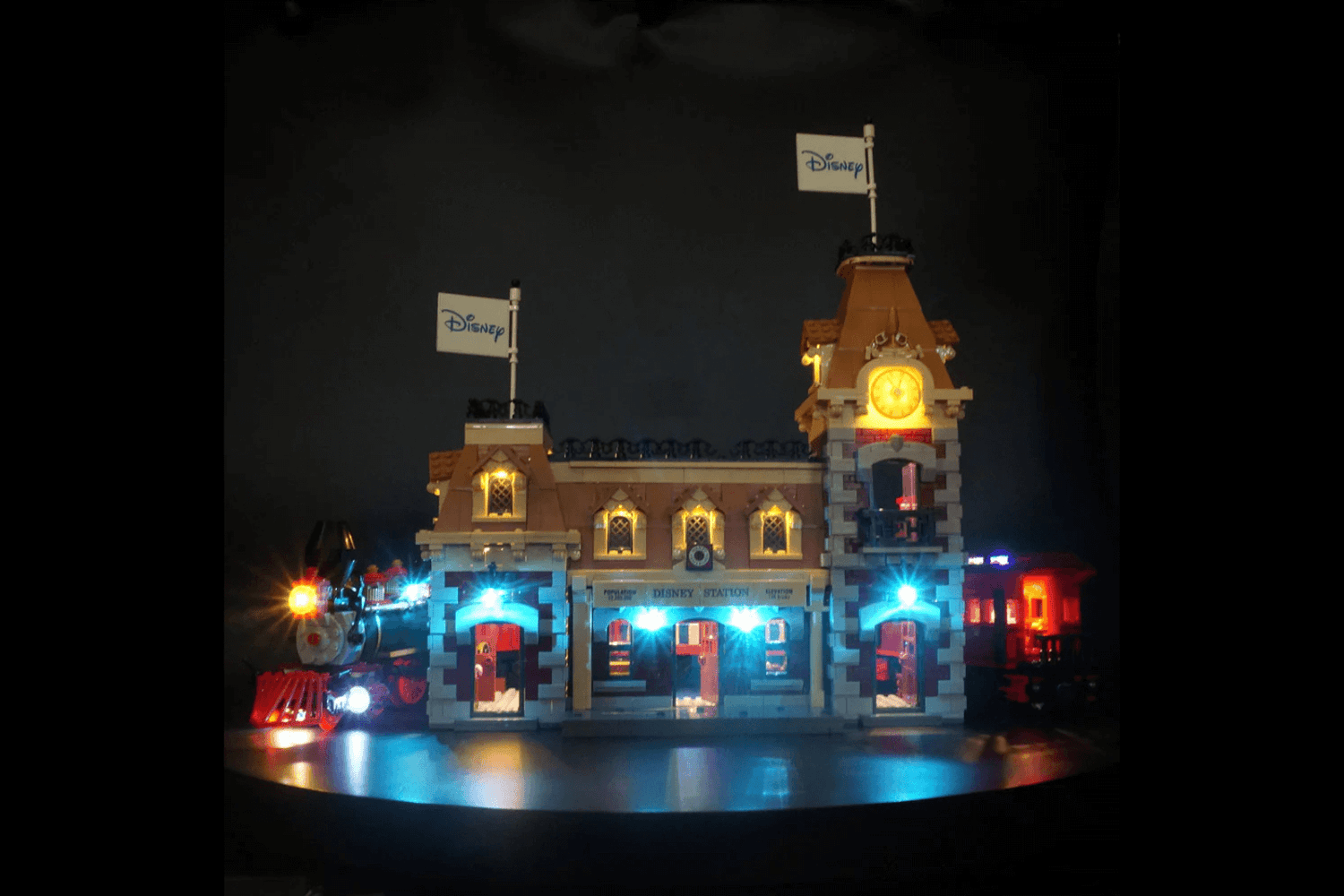 Turn your Disney Train and Station LEGO® Set into a glowing masterpiece that feels alive.