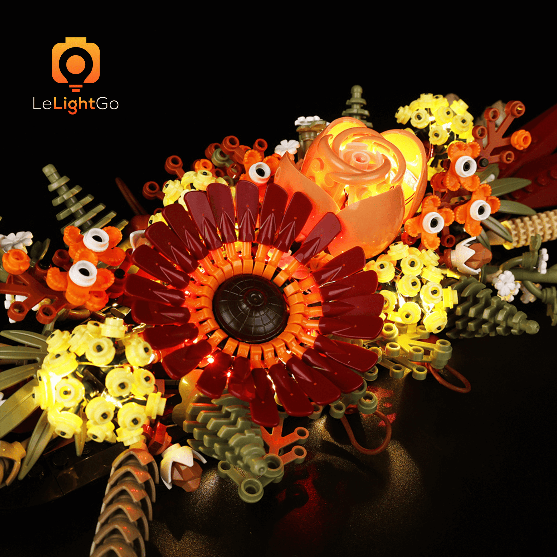 Bring magical shine to your Dried Flower Centerpiece 10314. This lighting kit is designed especially for the Lego ICONS Dried Flower Centerpiece 10314. This highly detailed Lego model is a spectacle in itself, but when paired with the LeLightGo lighting kit, the charming model comes alive, not only during the day but also at night.