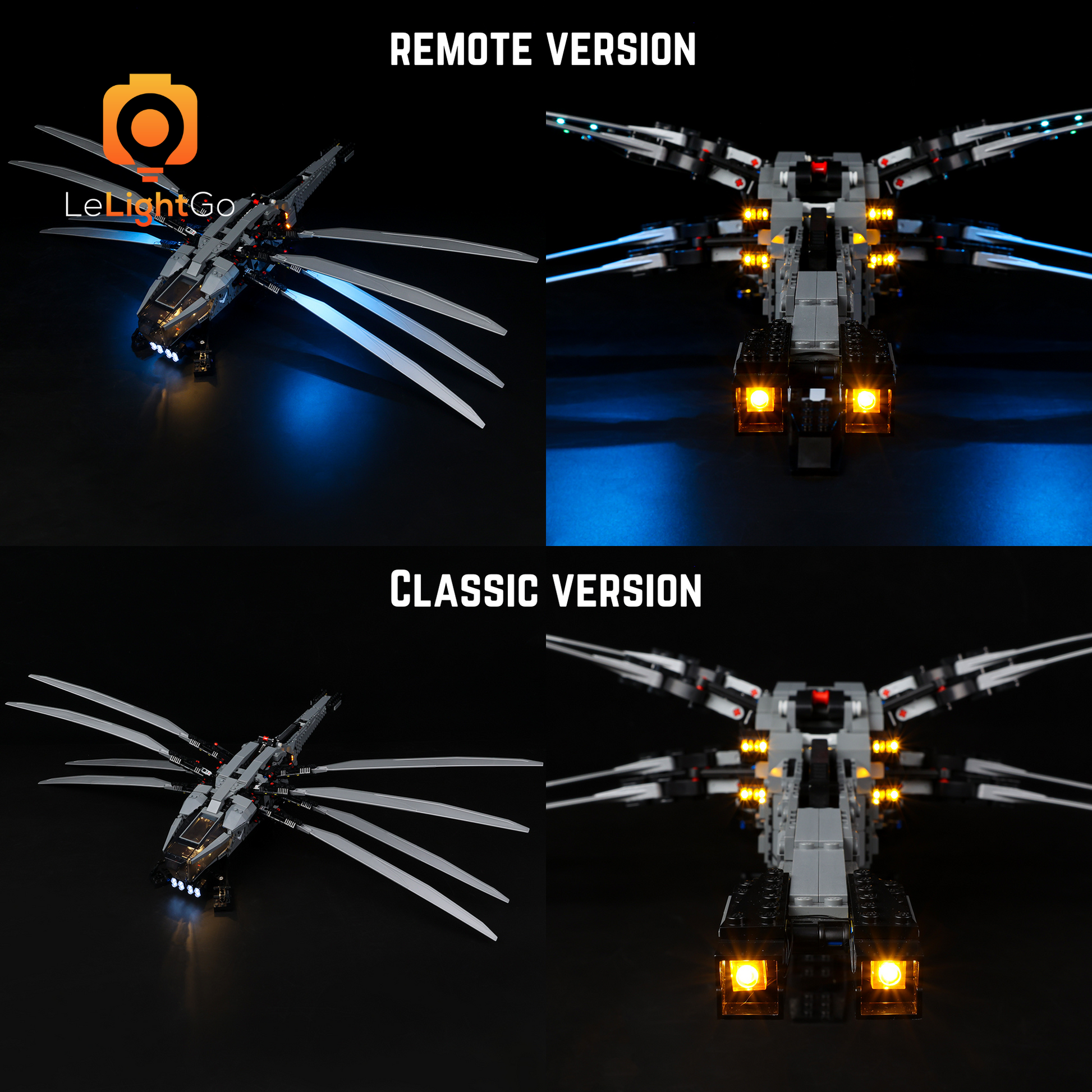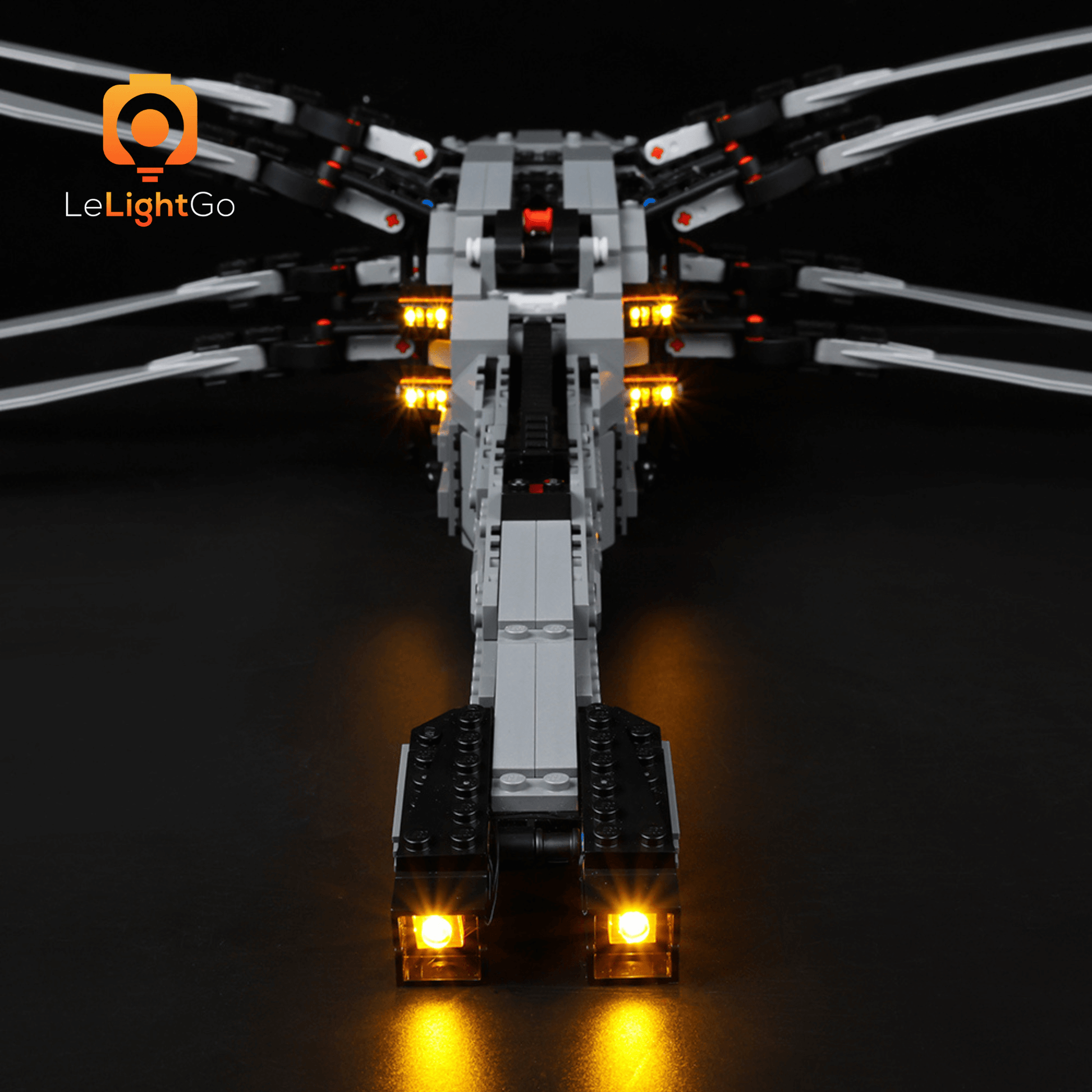 Follow LeLightGo step-by-step instructions to light up your Dune Atreides Royal Ornithopter 10327, something amazing will happen at night. All our kits are plug-and-play - no electronics knowledge is needed!