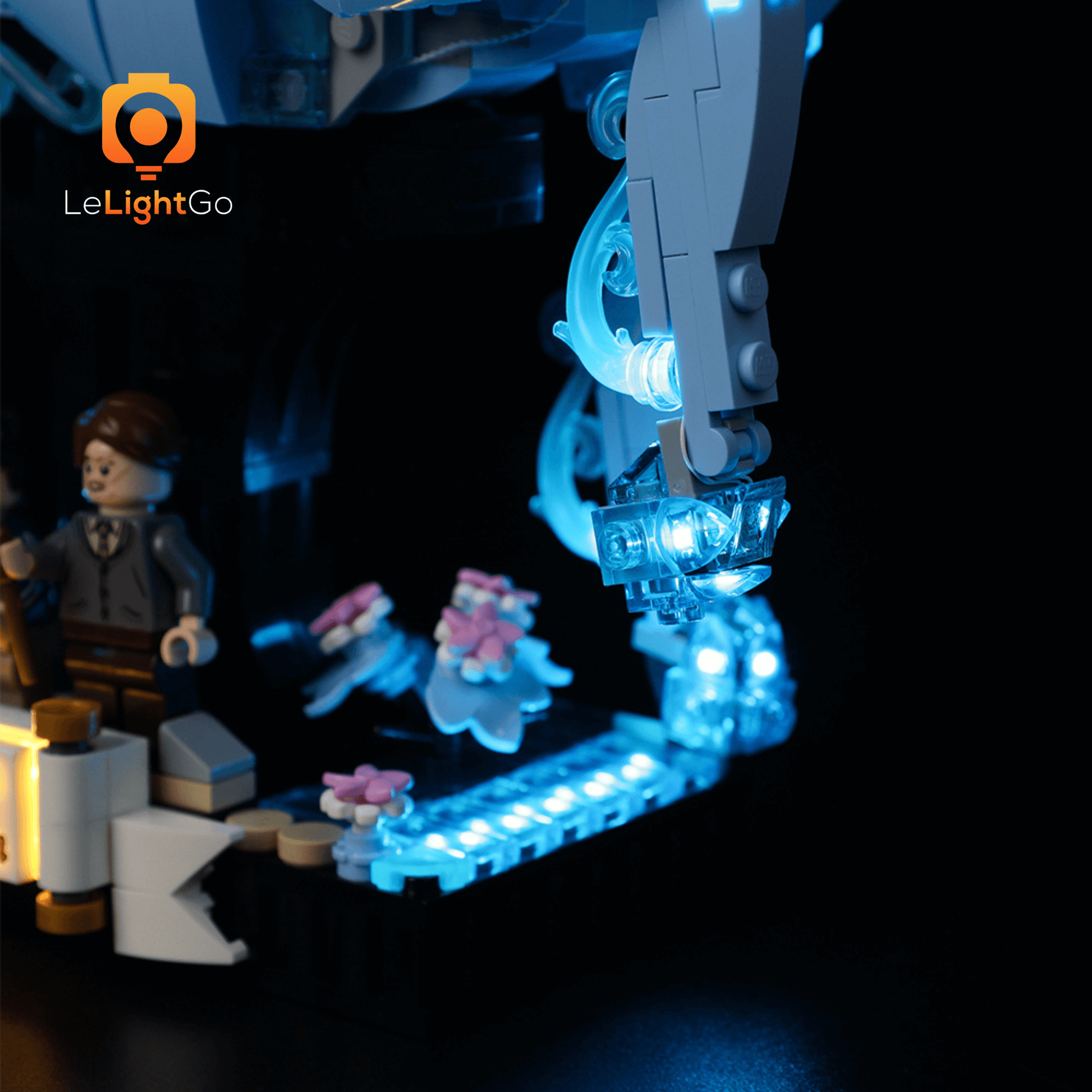 Bring magical shine to your Expecto Patronum 76414 This lighting kit is designed especially for the Lego Harry Potter Expecto Patronum 76414. This highly detailed Lego model is a spectacle in itself, but when paired with the LeLightGo lighting kit, the charming model comes alive, not only during the day but also at night.