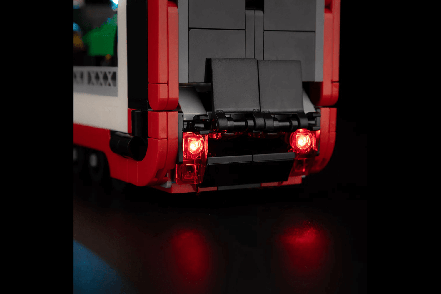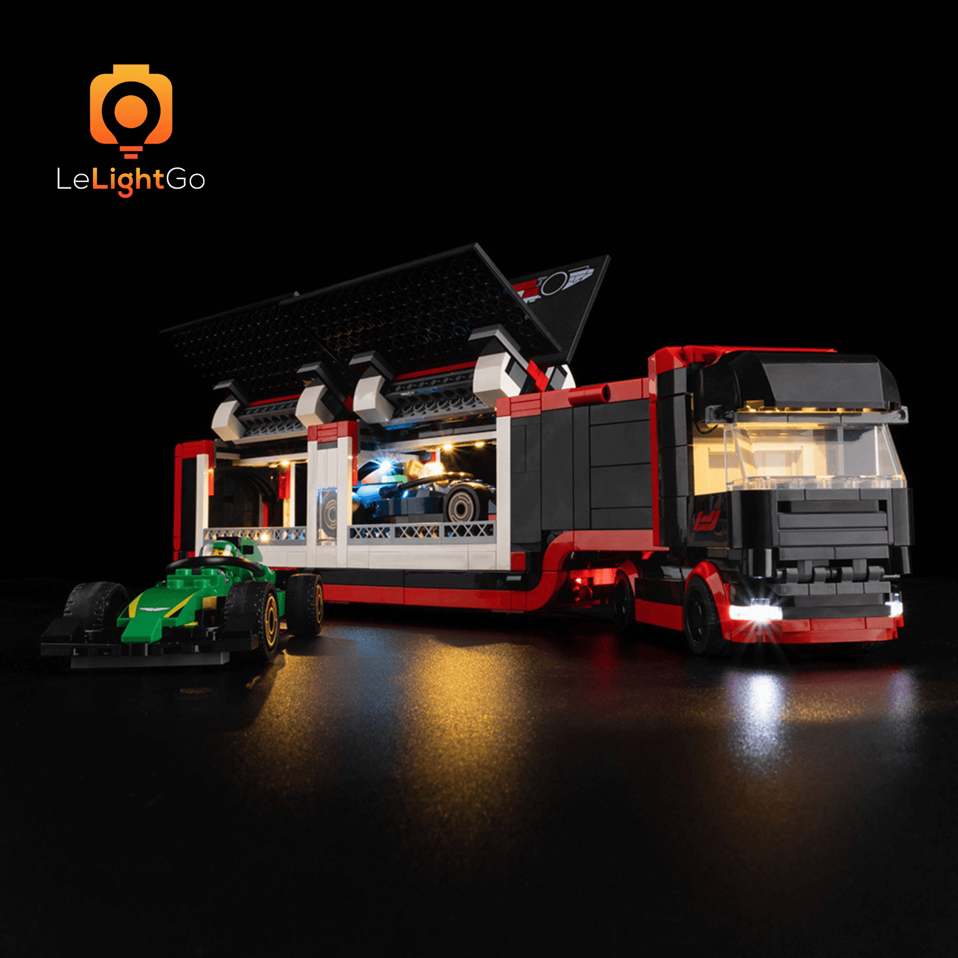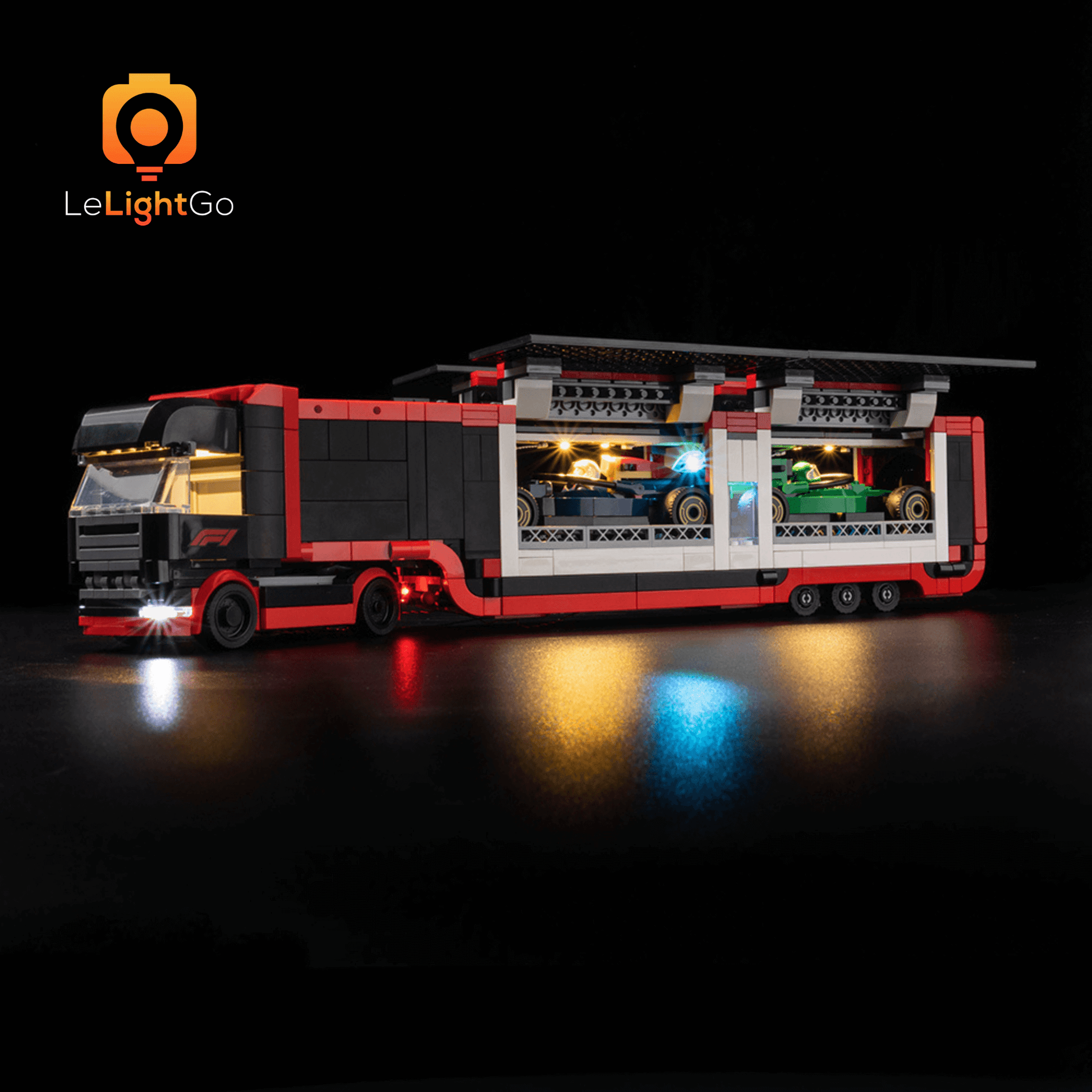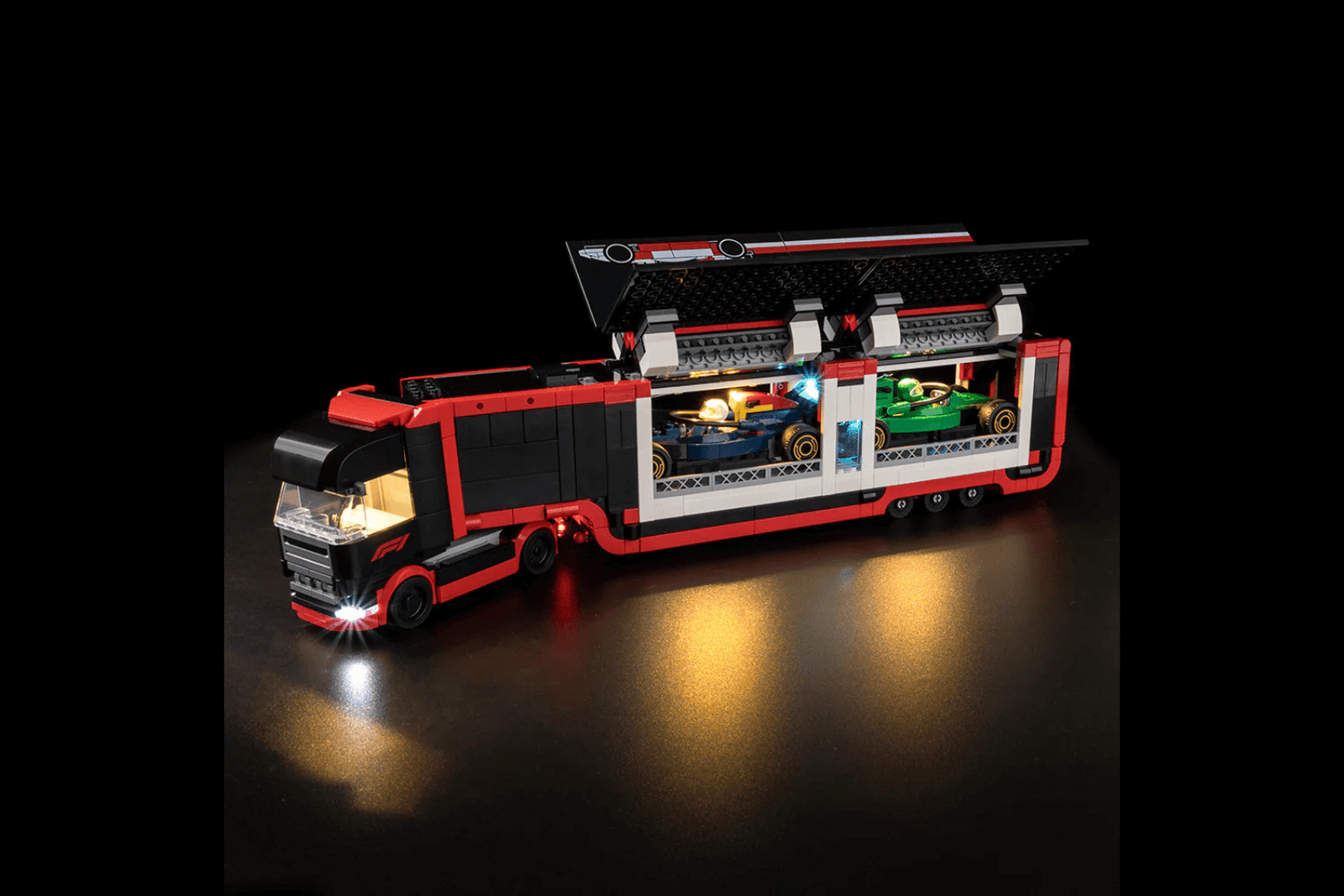 Follow LeLightGo step-by-step instructions to light up your F1 Truck with RB20 & AMR24 F1 Cars 60445, something amazing will happen at night. All our kits are plug-and-play - no electronics knowledge is needed!
