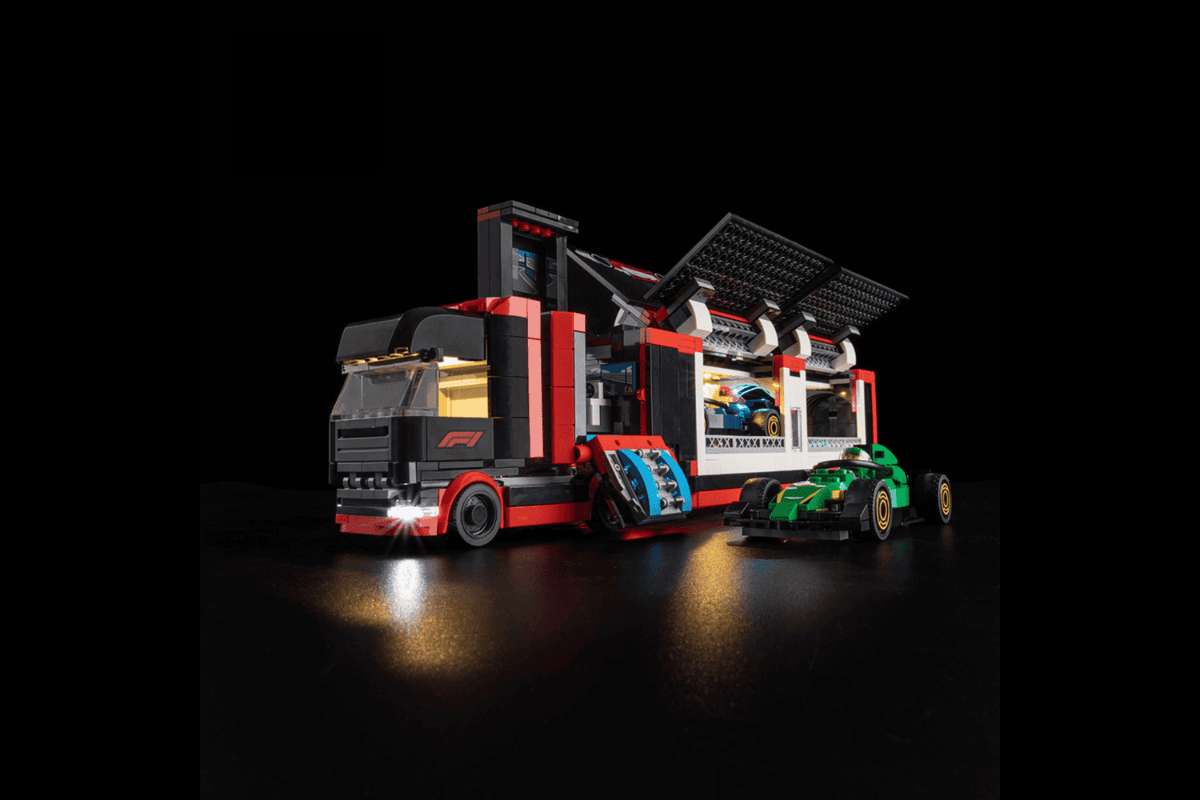 Bring magical shine to your F1 Truck with RB20 & AMR24 F1 Cars 60445. This lighting kit is designed especially for the Lego City F1 Truck with RB20 & AMR24 F1 Cars 60445. This highly detailed Lego model is a spectacle in itself, but when paired with the LeLightGo lighting kit, the charming model comes alive, not only during the day but also at night.