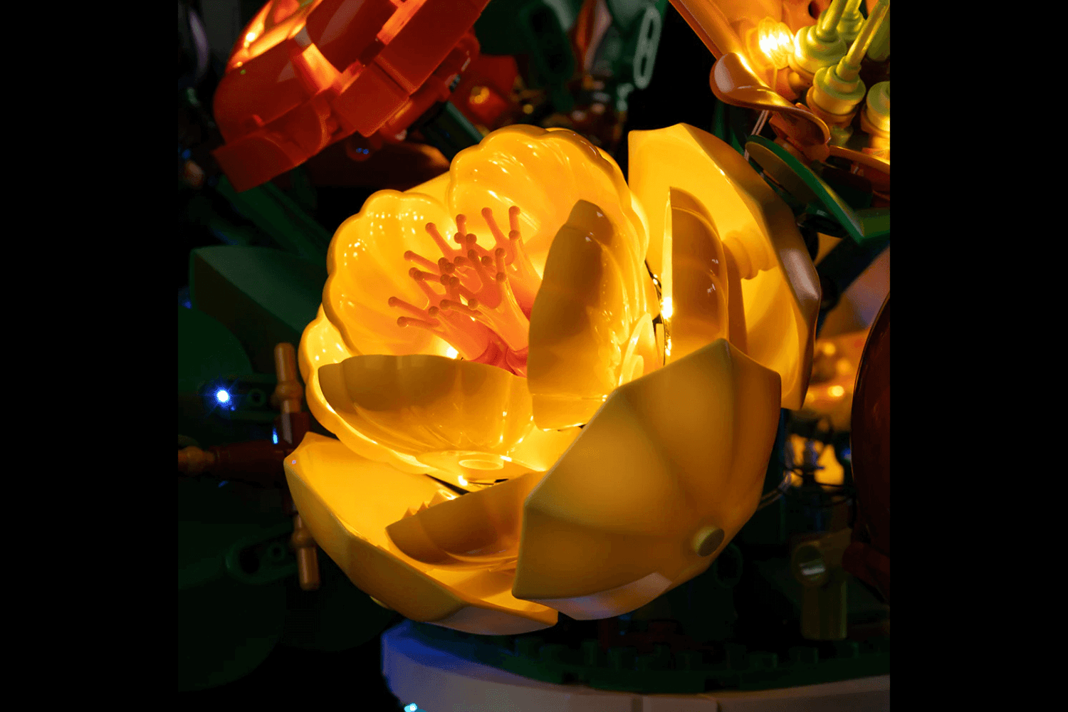 Soft lights turn your LEGO flowers into stunning home décor.