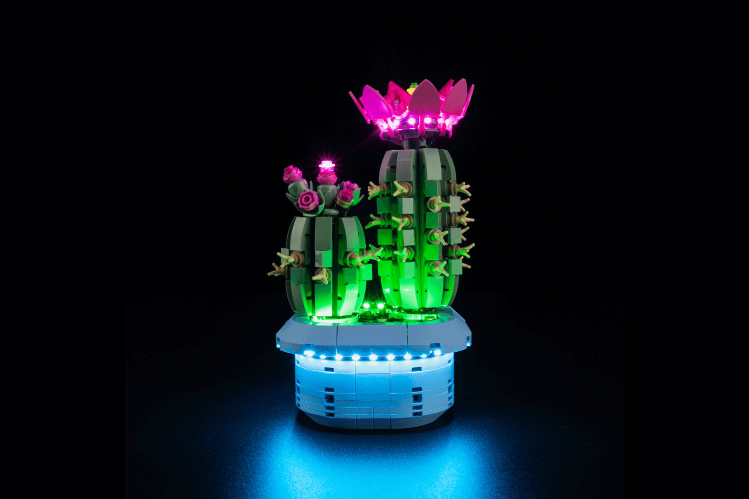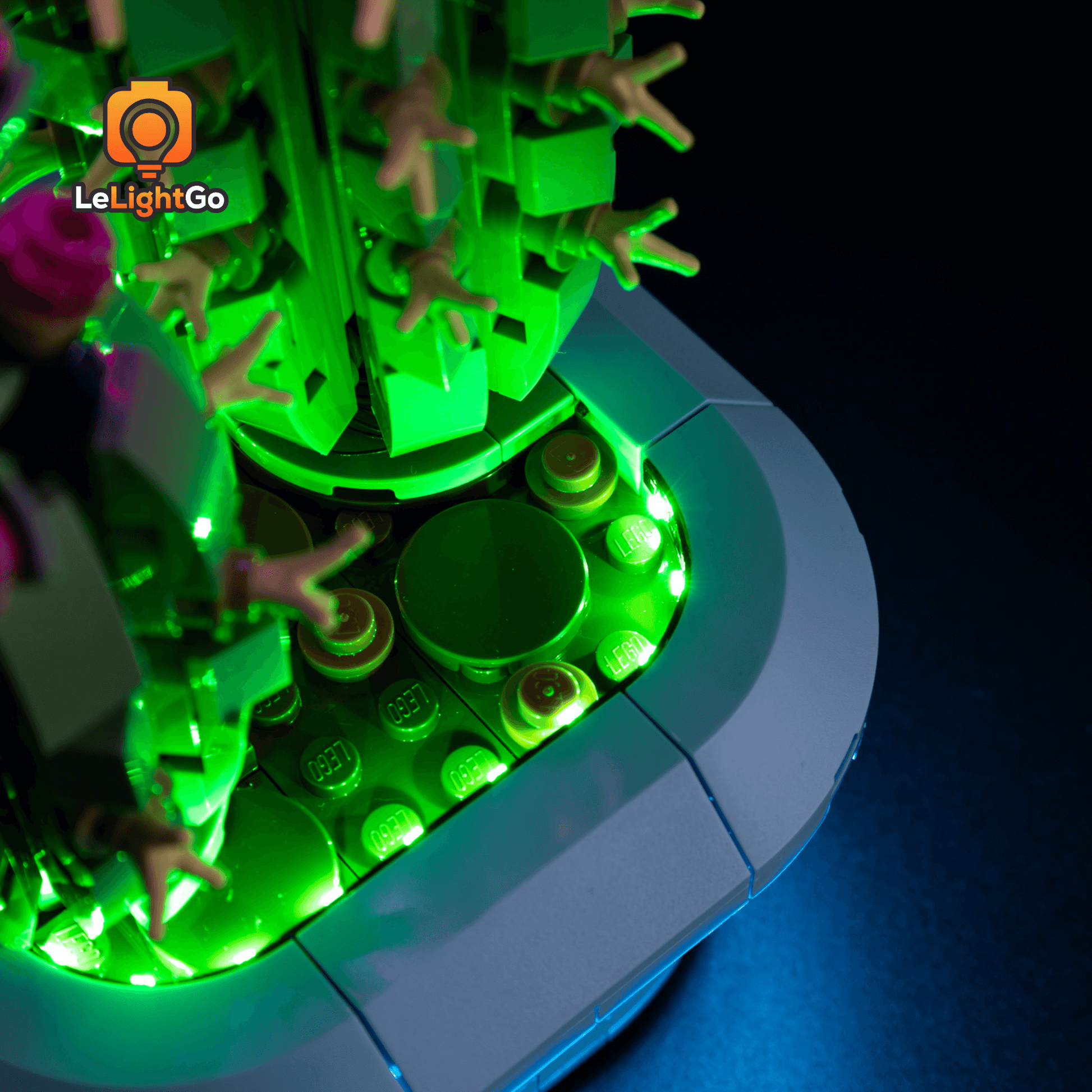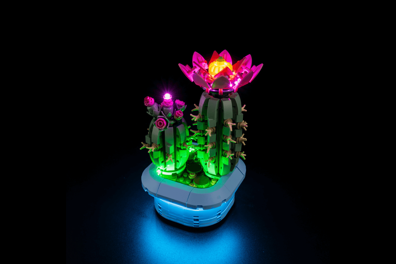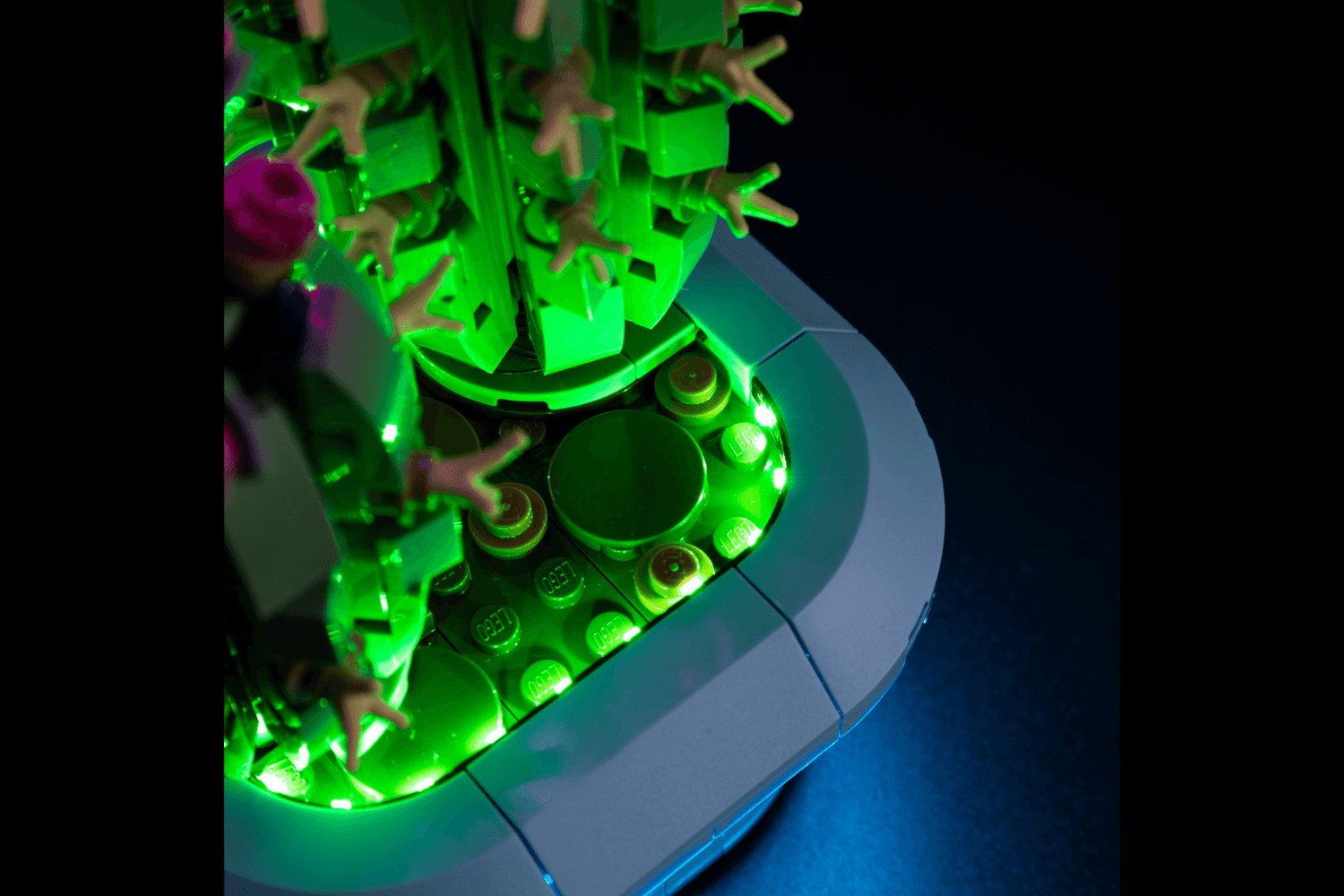 Bring magical shine to your Flowering Cactus 11509. This lighting kit is designed especially for the Lego Botanical Collection Flowering Cactus 11509. This highly detailed Lego model is a spectacle in itself, but when paired with the LeLightGo lighting kit, the charming model comes alive, not only during the day but also at night.