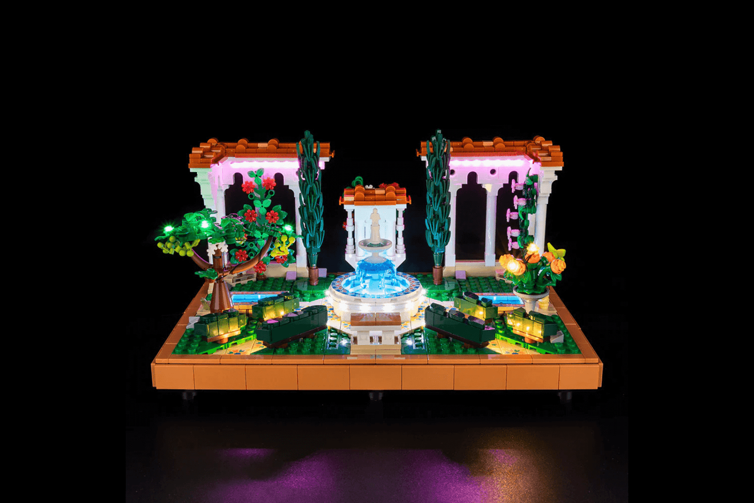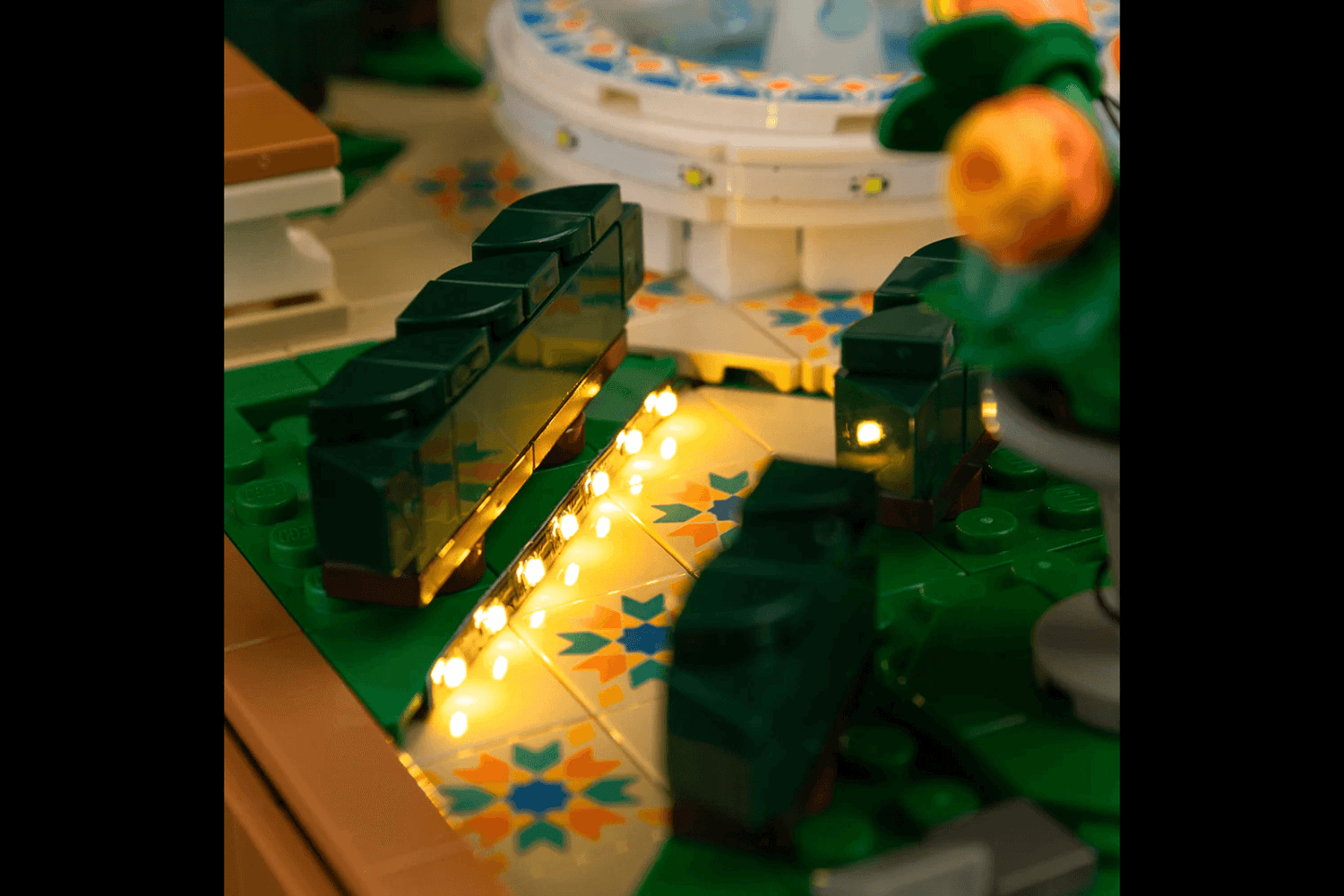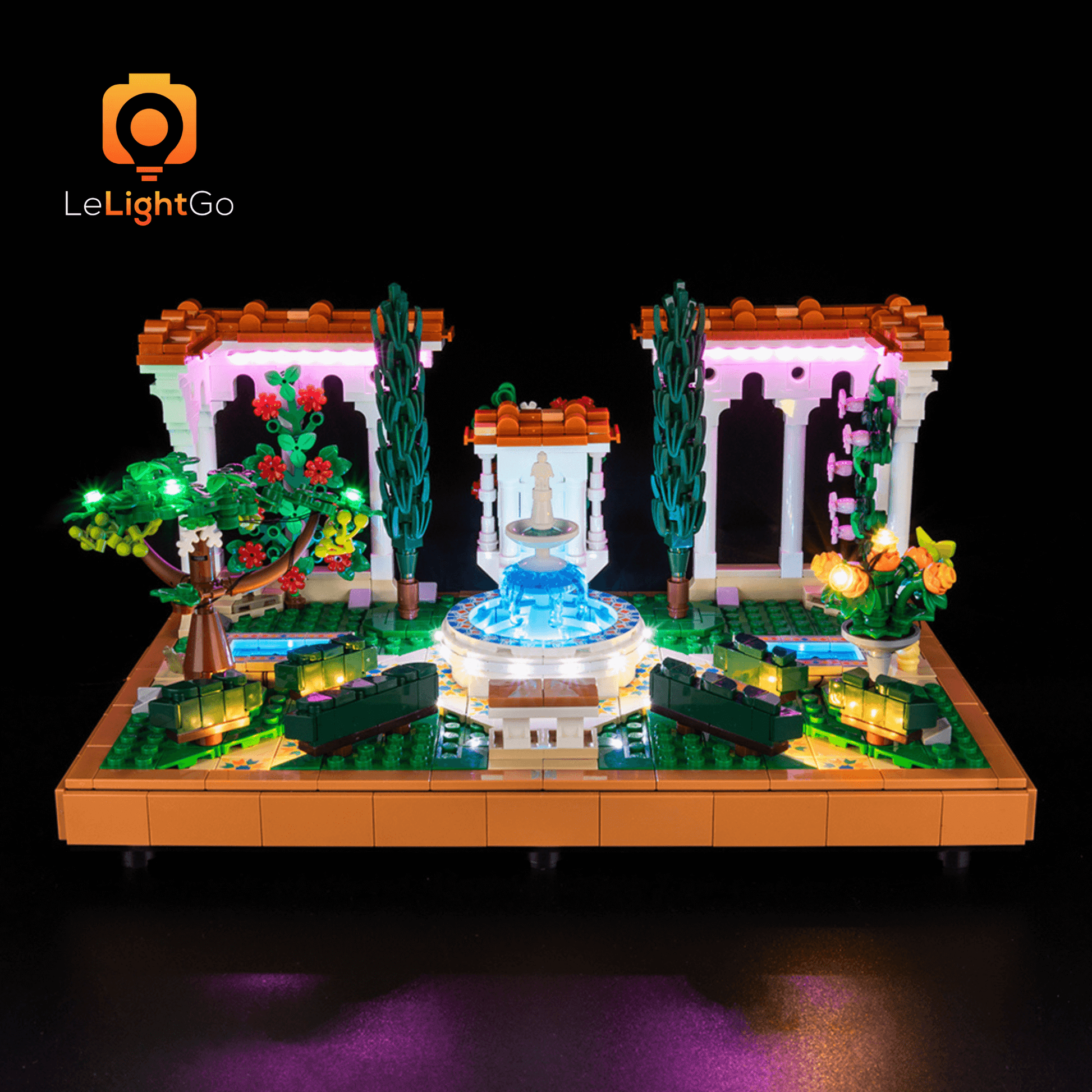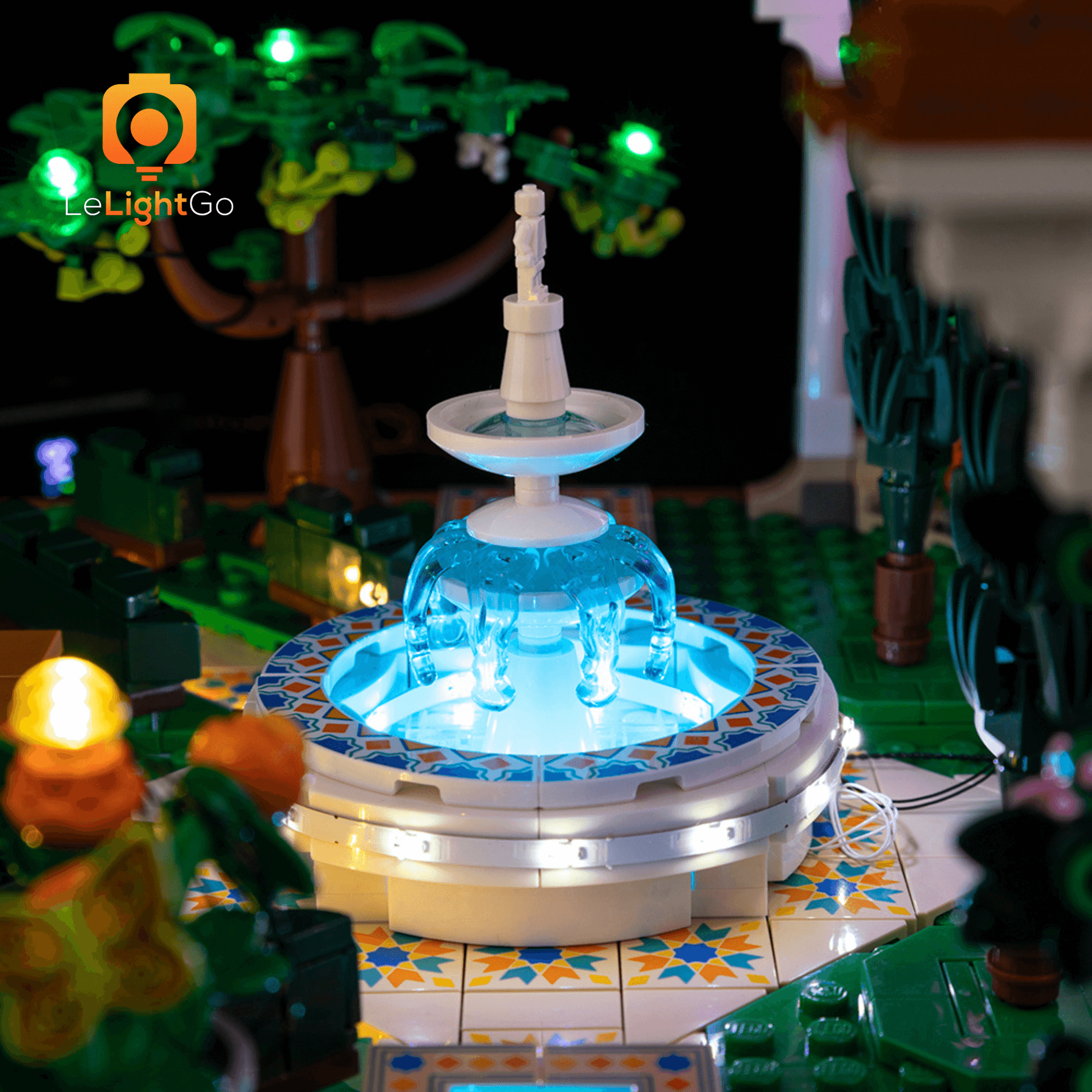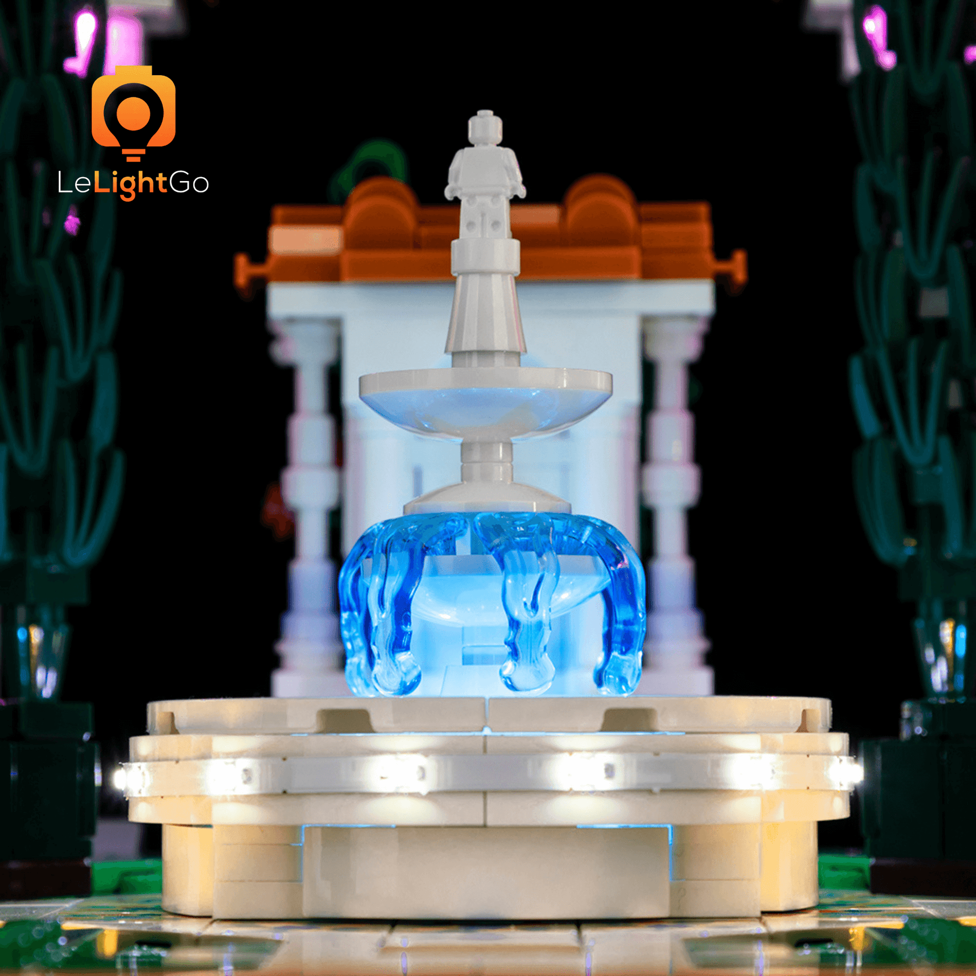 Bring magical shine to your Fountain Garden 10359. This lighting kit is designed especially for the Lego Icons Fountain Garden 10359. This highly detailed Lego model is a spectacle in itself, but when paired with the LeLightGo lighting kit, the charming model comes alive, not only during the day but also at night.