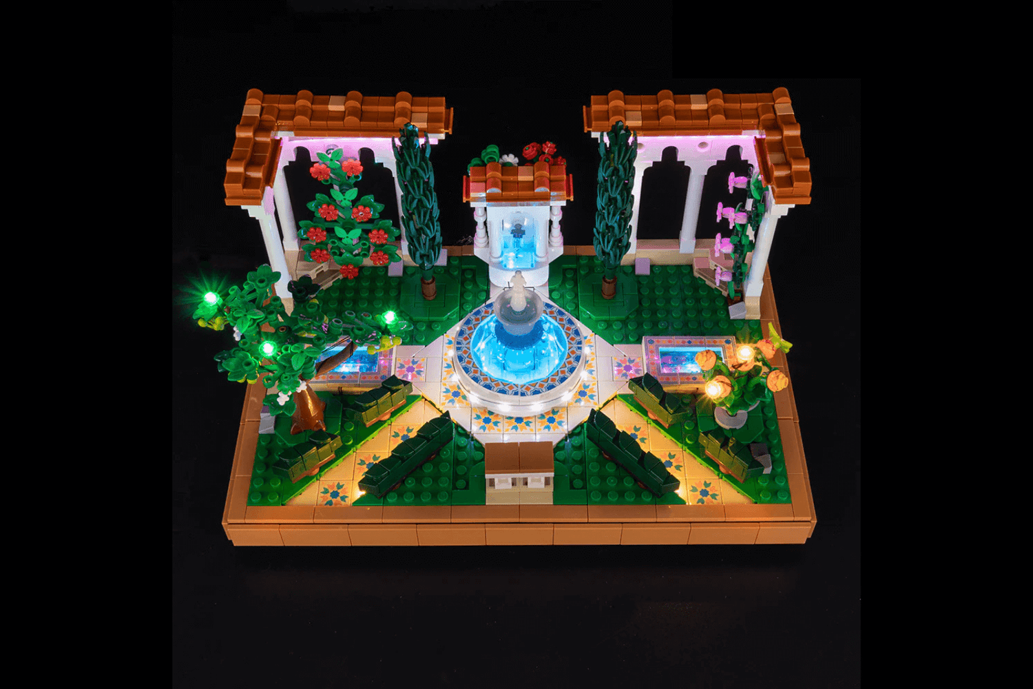 Turn your Fountain Garden LEGO® Set into a glowing masterpiece that feels alive.