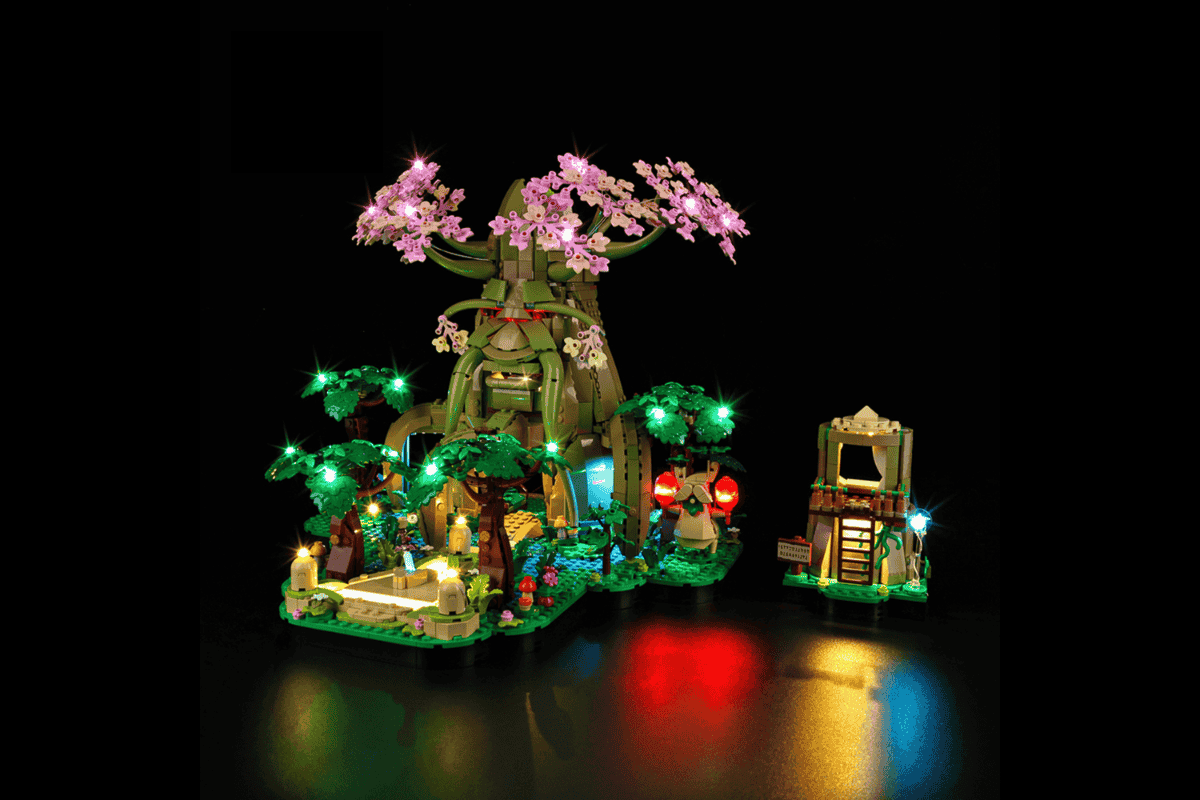 Bring magical shine to your Great Deku Tree 2-in-1 77092. This lighting kit is designed especially for the Lego Great Deku Tree 2-in-1 77092. This highly detailed Lego model is a spectacle in itself, but when paired with the LeLightGo lighting kit, the charming model comes alive, not only during the day but also at night.
