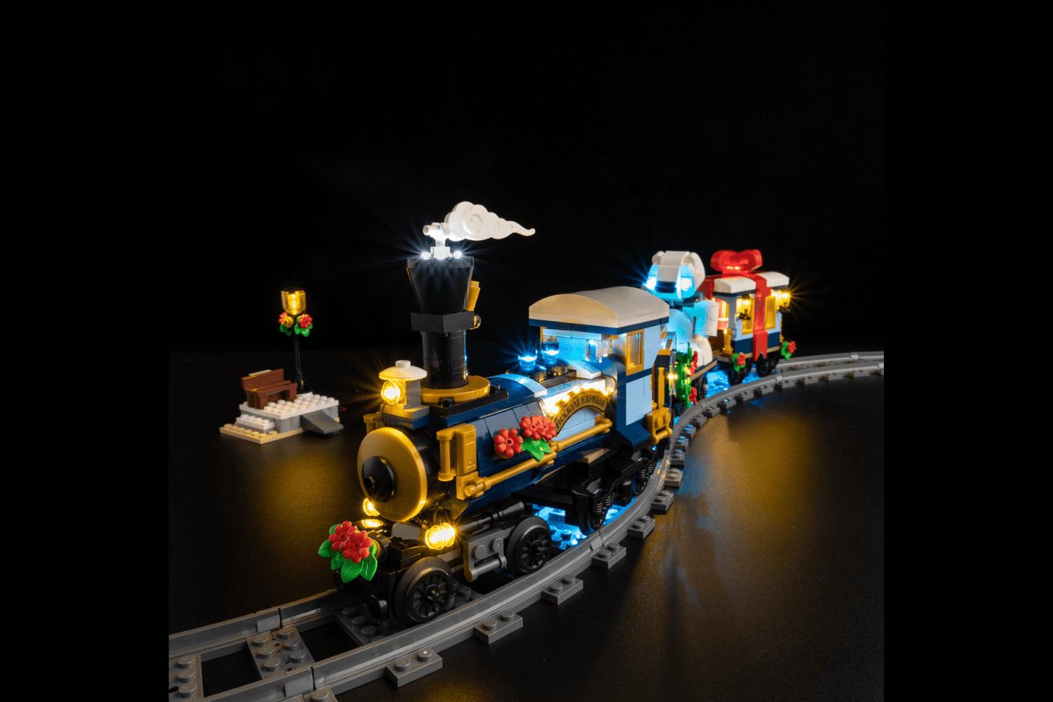 Bring magical shine to your Holiday Express Train 10361G. This lighting kit is designed especially for the Lego ICONS Holiday Express Train 10361. This highly detailed Lego model is a spectacle in itself, but when paired with the LeLightGo lighting kit, the charming model comes alive, not only during the day but also at night.
