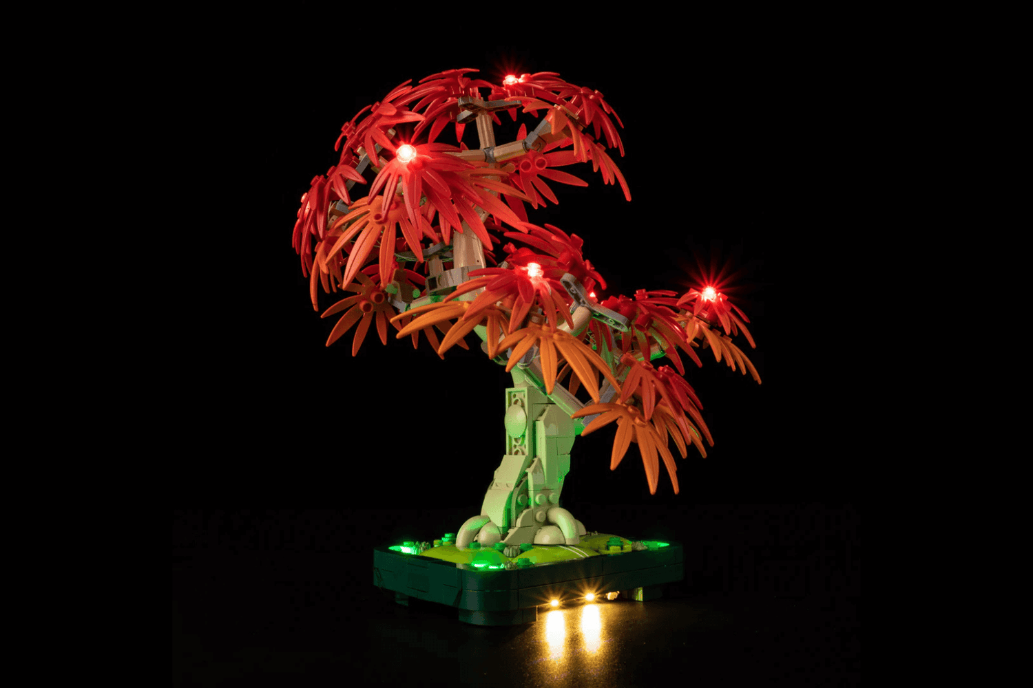 Bring magical shine to your Japanese Red Maple Bonsai Tree 10348. This lighting kit is designed especially for the Lego Botanical Japanese Red Maple Bonsai Tree 10348. This highly detailed Lego model is a spectacle in itself, but when paired with the LeLightGo lighting kit, the charming model comes alive, not only during the day but also at night.
