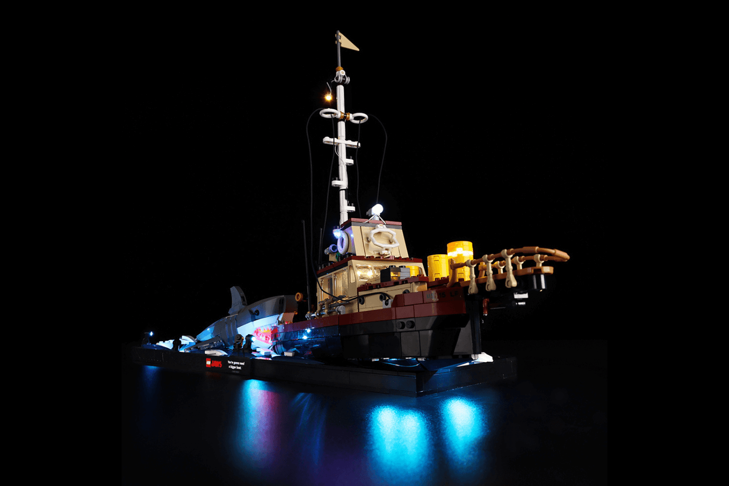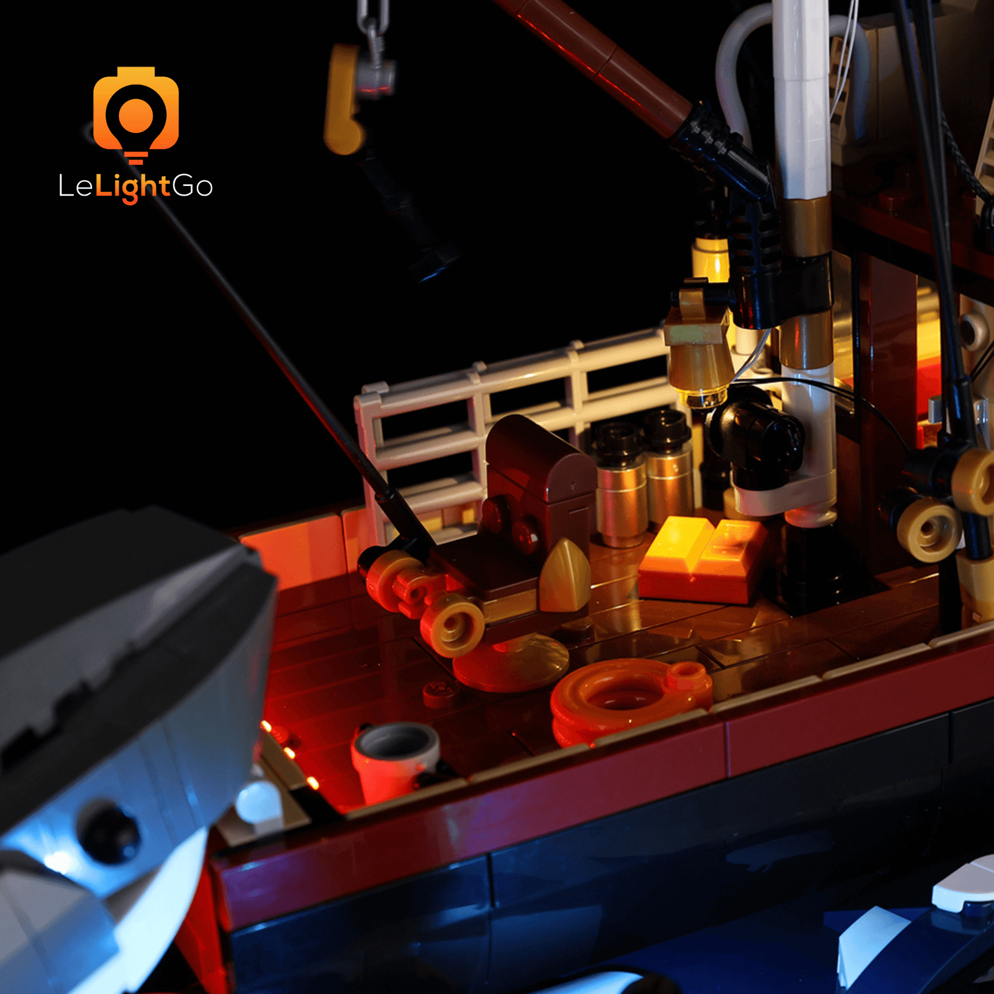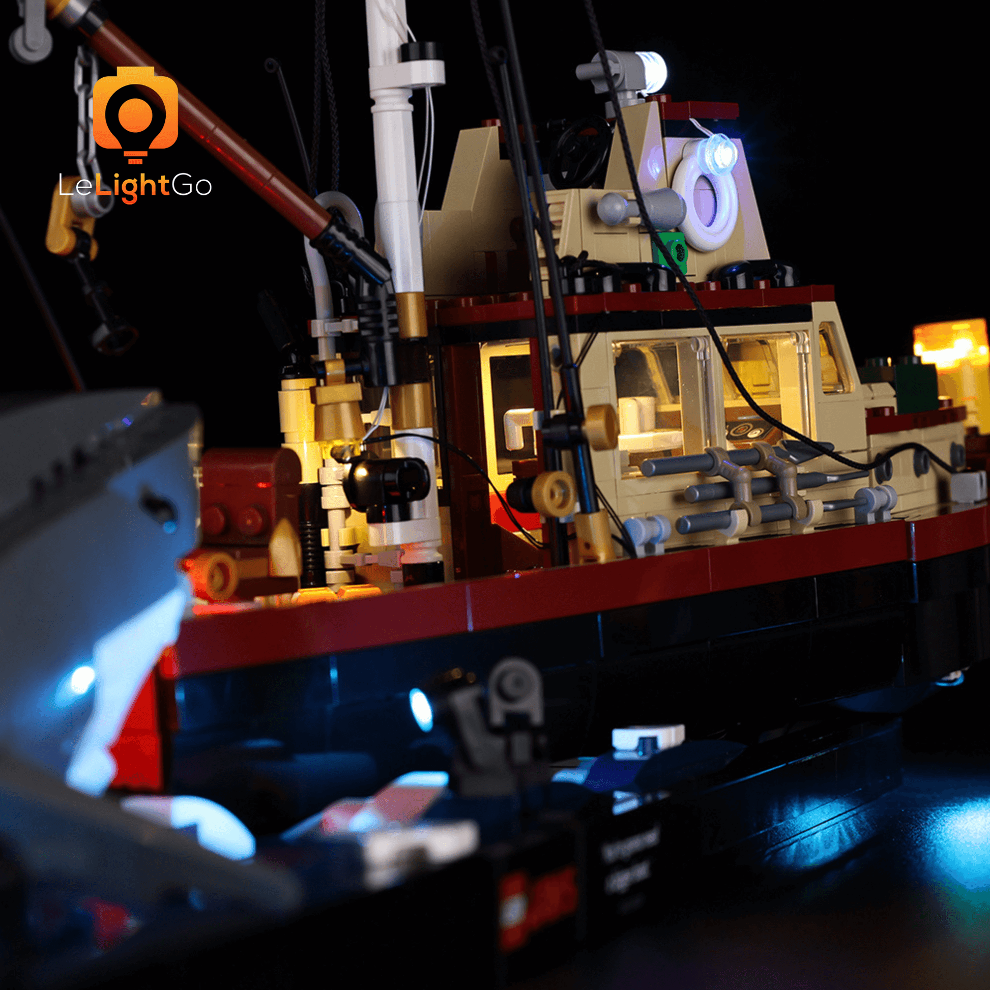Bring magical shine to your Jaws 21350. This lighting kit is designed especially for the Lego Ideas Jaws 21350. This highly detailed Lego model is a spectacle in itself, but when paired with the LeLightGo lighting kit, the charming model comes alive, not only during the day but also at night.