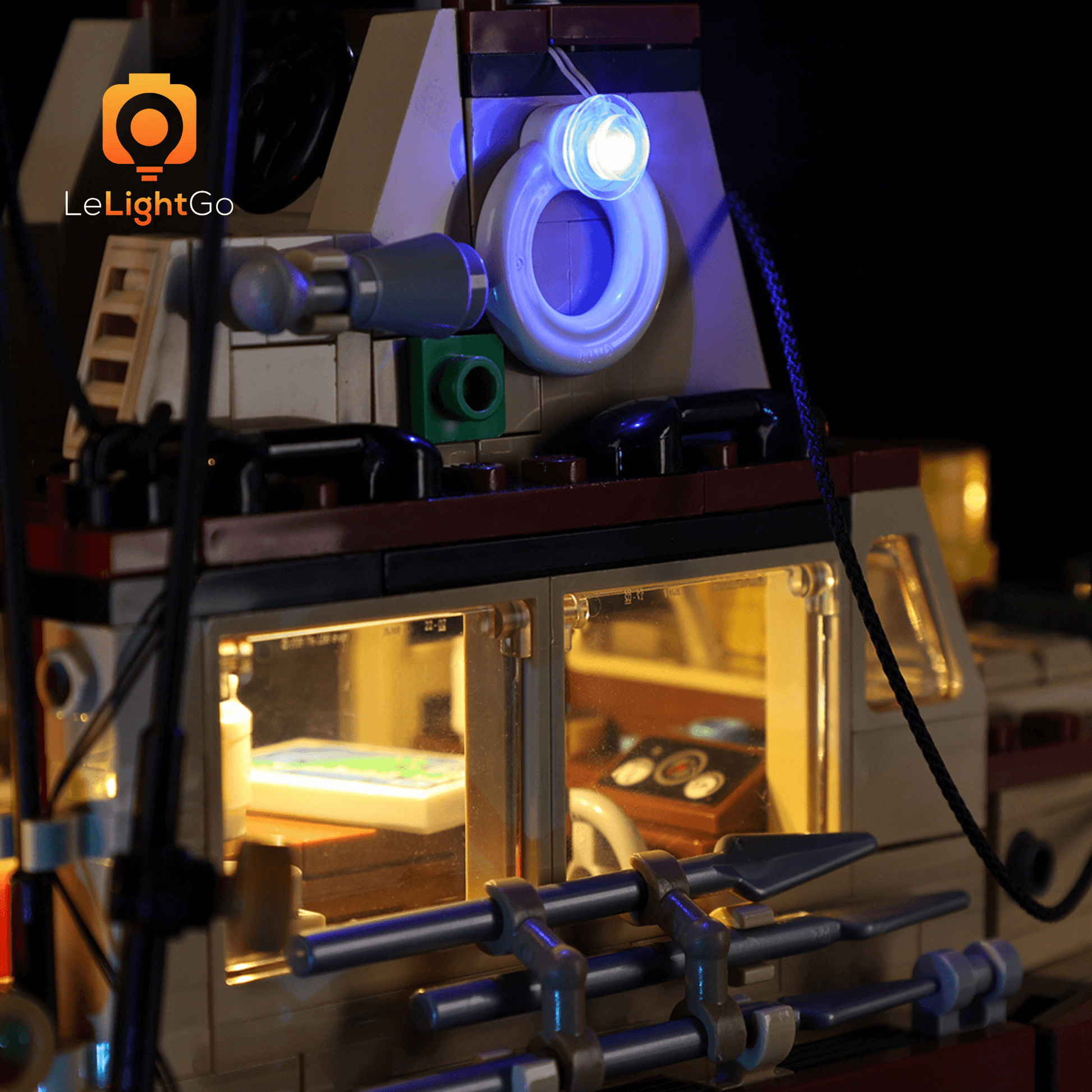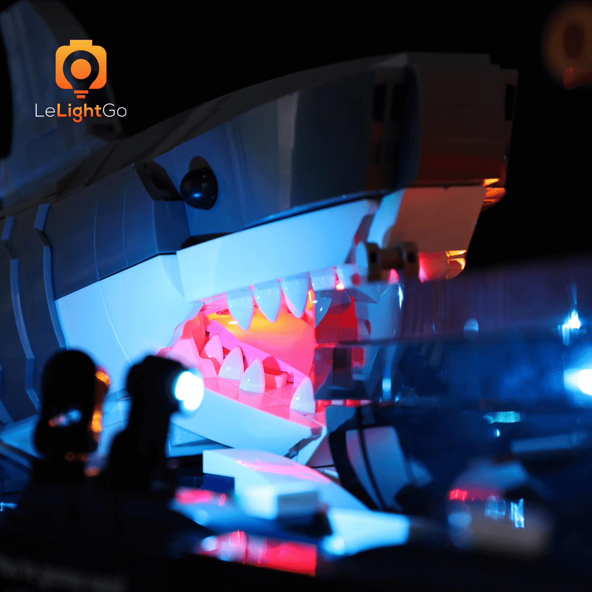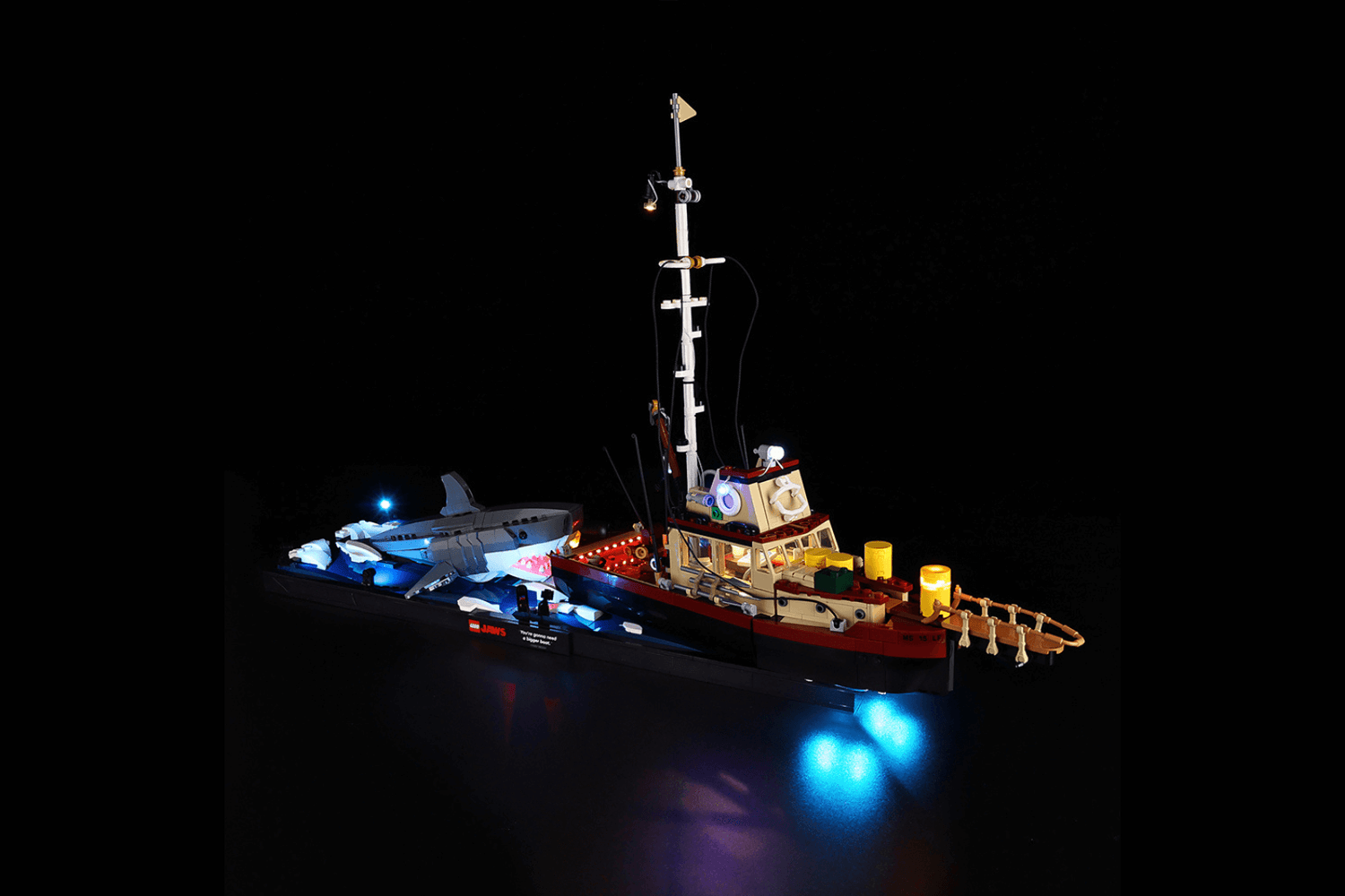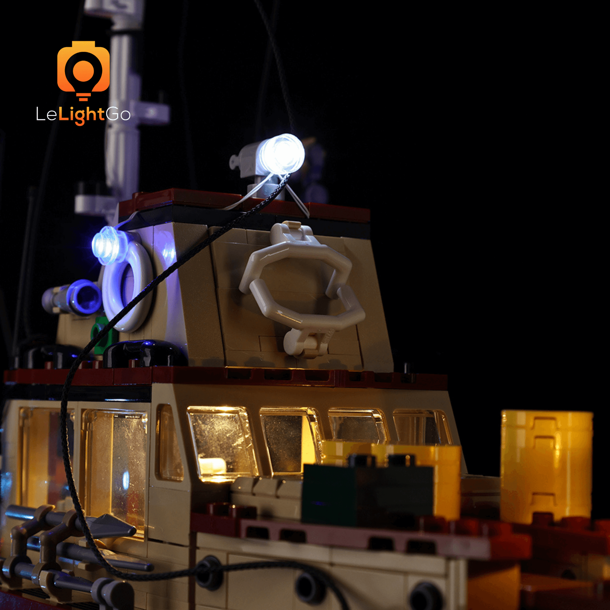 Bring magical shine to your Jaws 21350. This lighting kit is designed especially for the Lego Ideas Jaws 21350. This highly detailed Lego model is a spectacle in itself, but when paired with the LeLightGo lighting kit, the charming model comes alive, not only during the day but also at night.