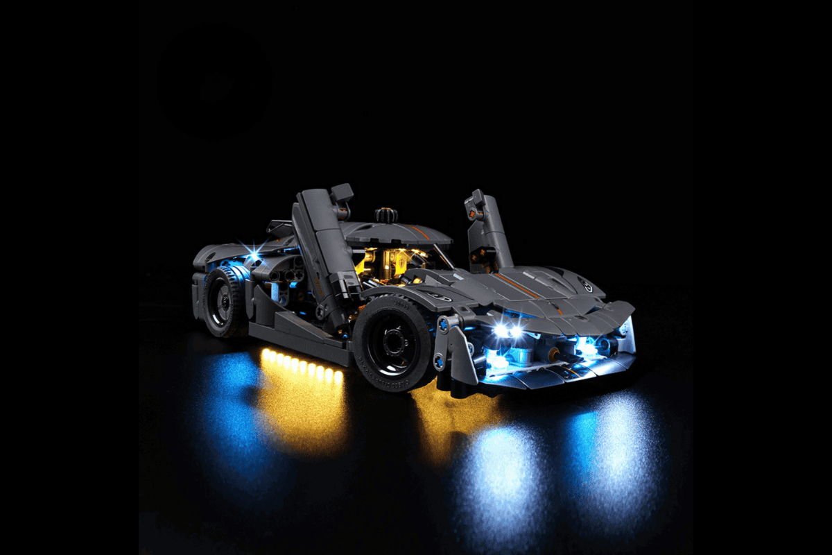 Bring magical shine to your Koenigsegg Jesko Absolut Grey Hypercar 42173 . This lighting kit is designed especially for the Lego Technic Koenigsegg Jesko Absolut Grey Hypercar 42173. This highly detailed Lego model is a spectacle in itself, but when paired with the LeLightGo lighting kit, the charming model comes alive, not only during the day but also at night.