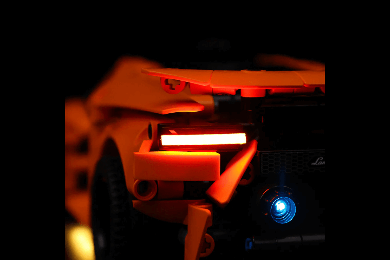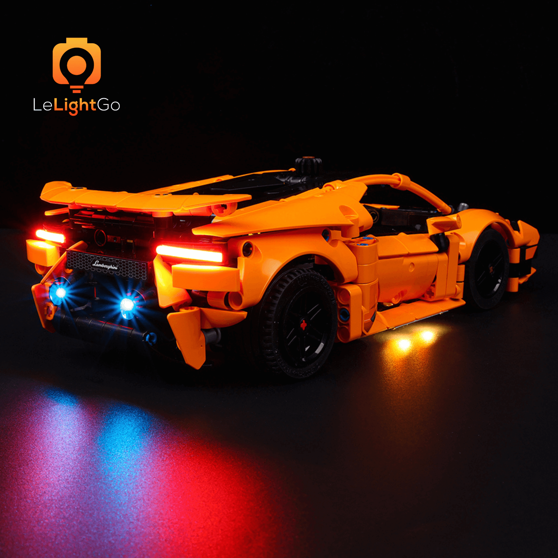Bring magical shine to your Lamborghini Huracán Tecnica Orange 42196. This lighting kit is designed especially for the Lego Technic Lamborghini Huracán Tecnica Orange 42196. This highly detailed Lego model is a spectacle in itself, but when paired with the LeLightGo lighting kit, the charming model comes alive, not only during the day but also at night.