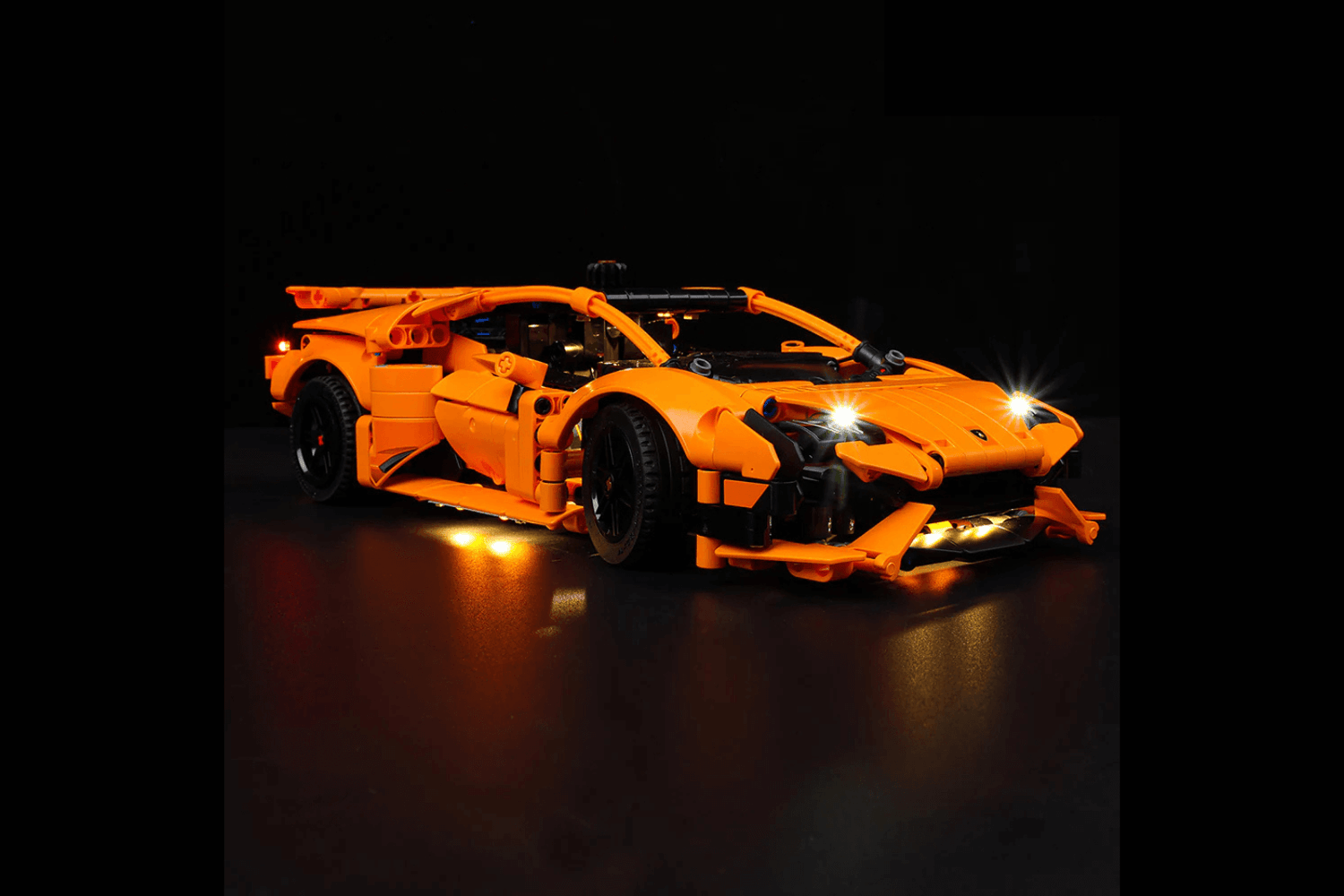 Turn your Lamborghini Huracán Tecnica Orange LEGO® Set into a glowing masterpiece that feels alive.