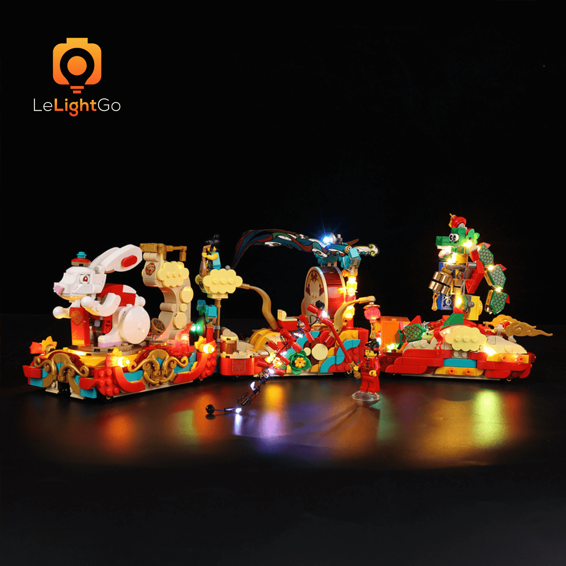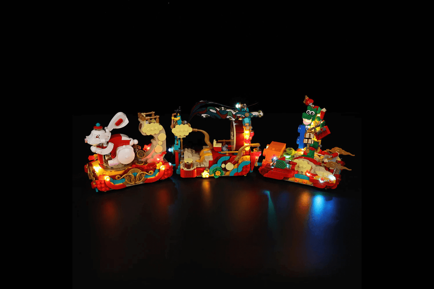 Bring magical shine to your New Year Parade 80111. This lighting kit is designed especially for the Lego New Year Parade 80111. This highly detailed Lego model is a spectacle in itself, but when paired with the LeLightGo lighting kit, the charming model comes alive, not only during the day but also at night.