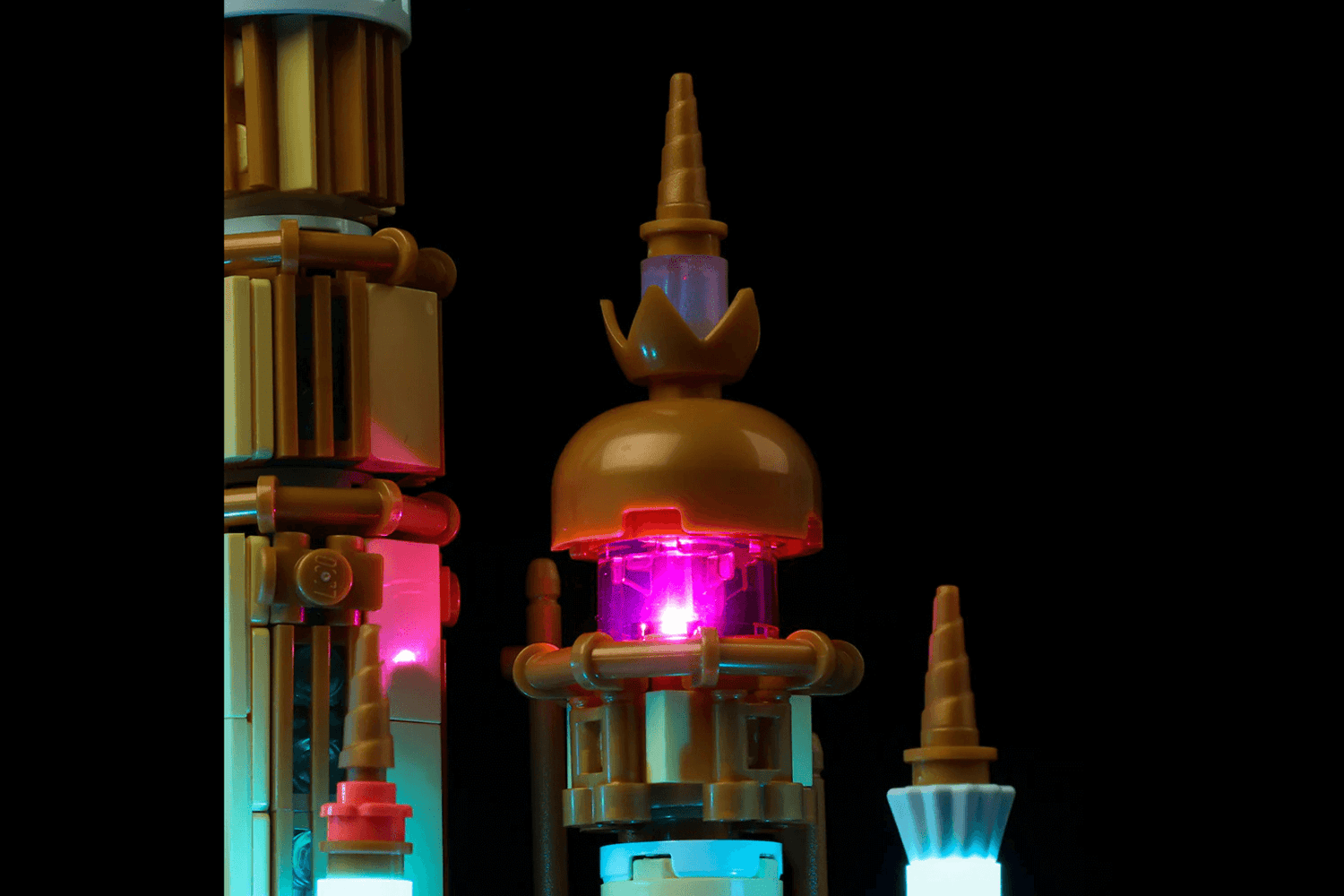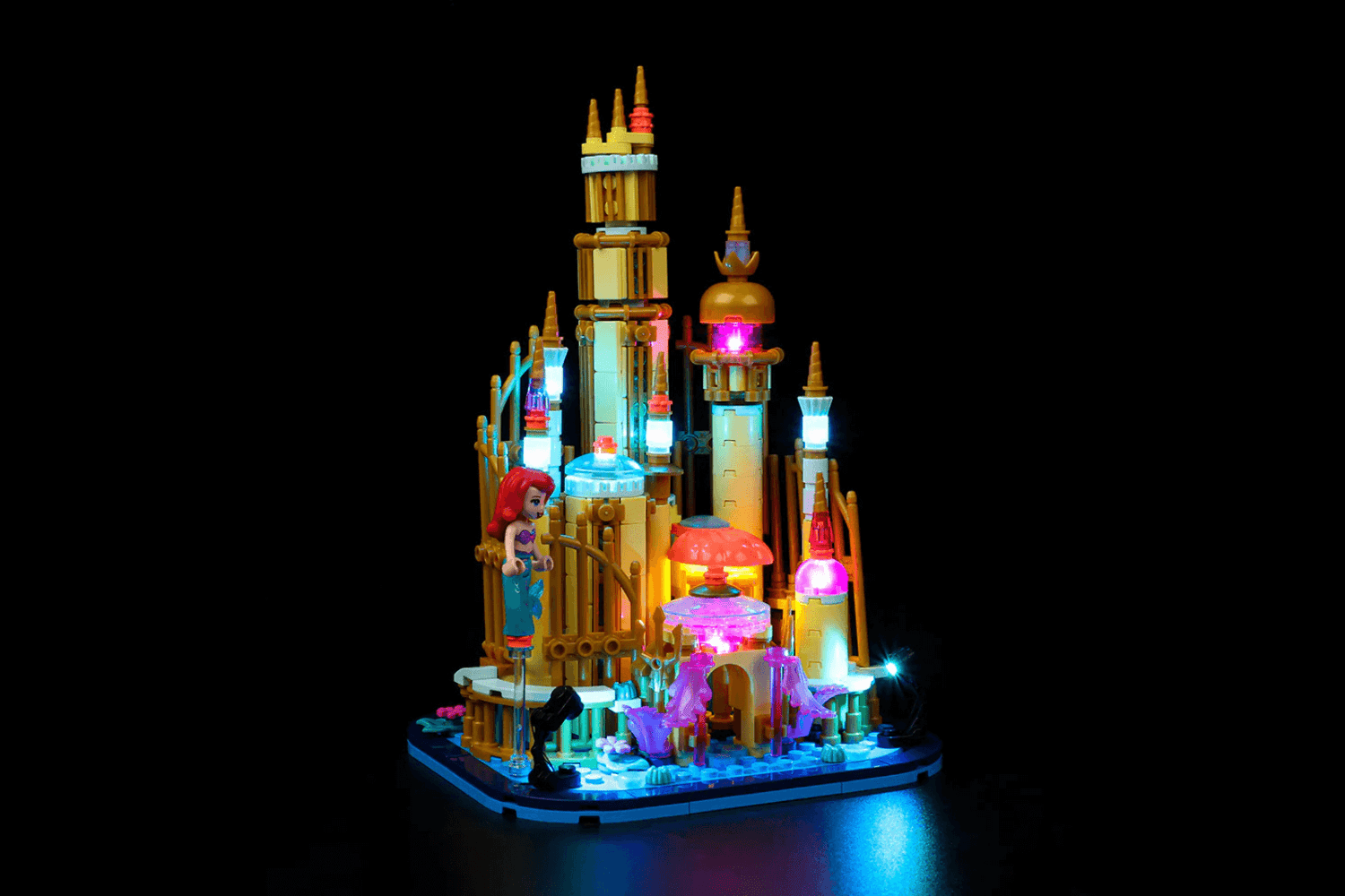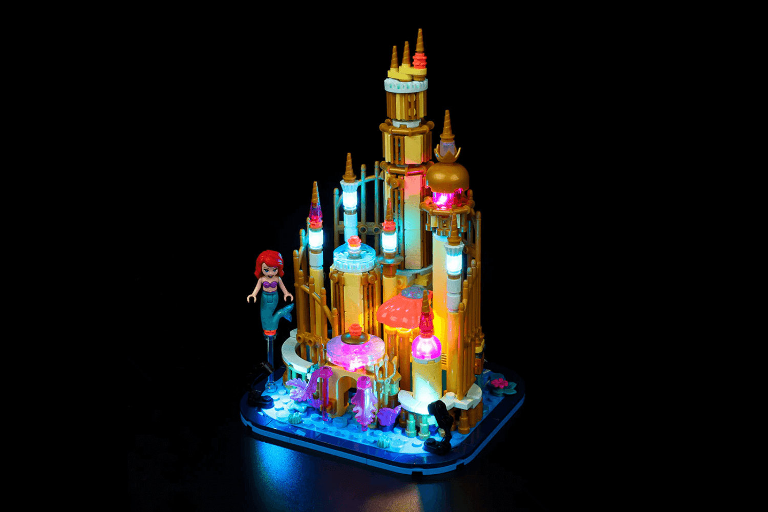 Follow LeLightGo step-by-step instructions to light up your Mini Disney Ariel's Castle 40708, something amazing will happen at night. All our kits are plug-and-play - no electronics knowledge is needed!