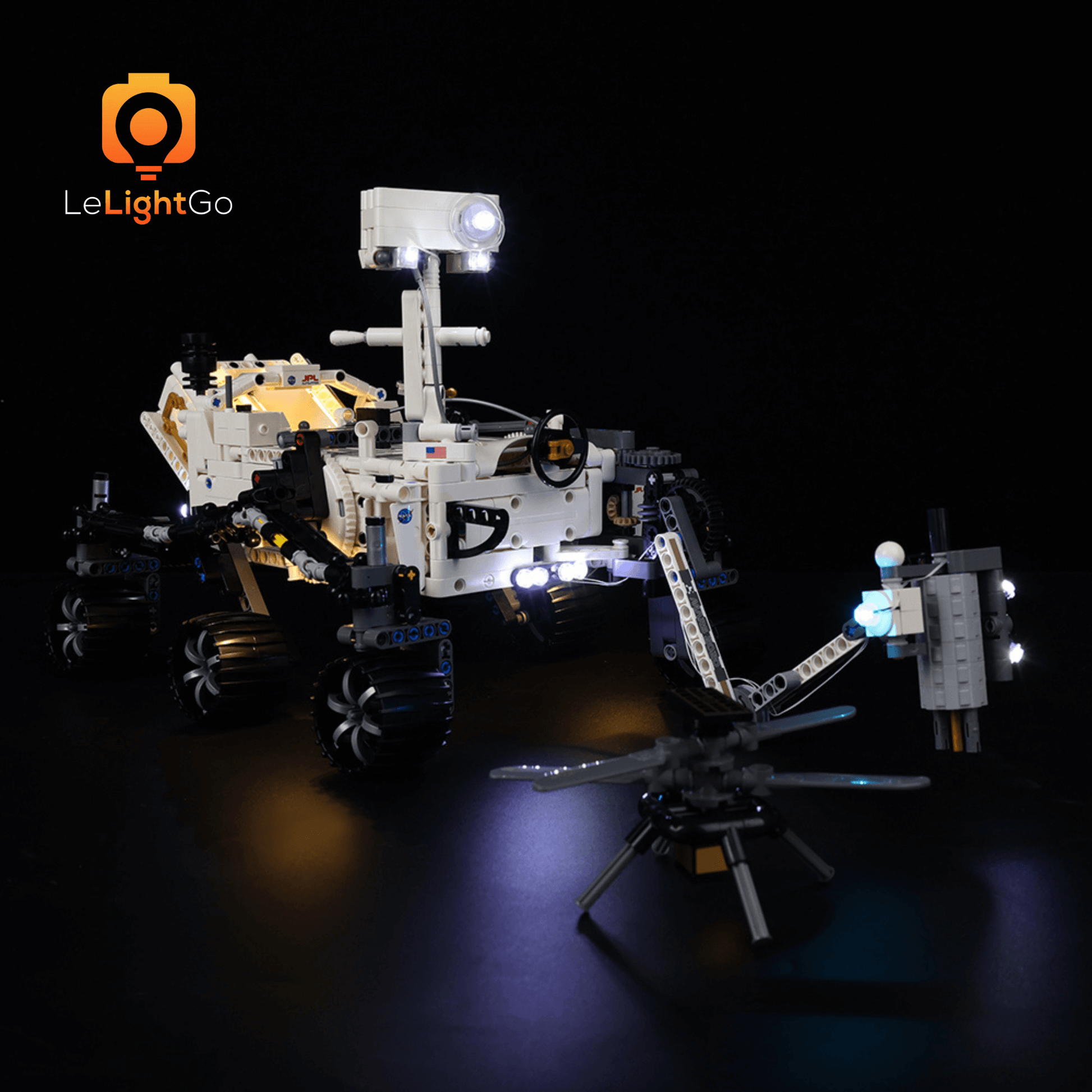 Follow LeLightGo step-by-step instructions to light up your NASA Mars Rover Perseverance 42158, something amazing will happen at night. All our kits are plug-and-play - no electronics knowledge is needed!