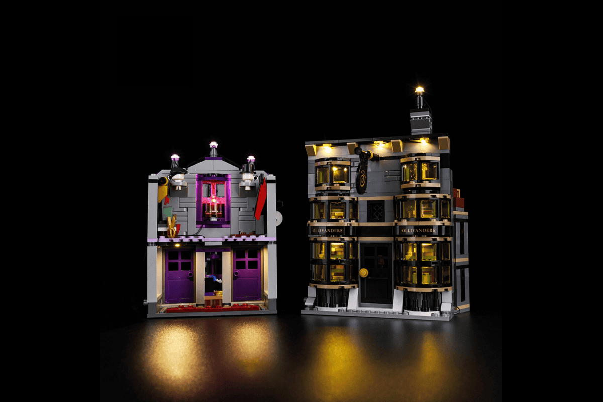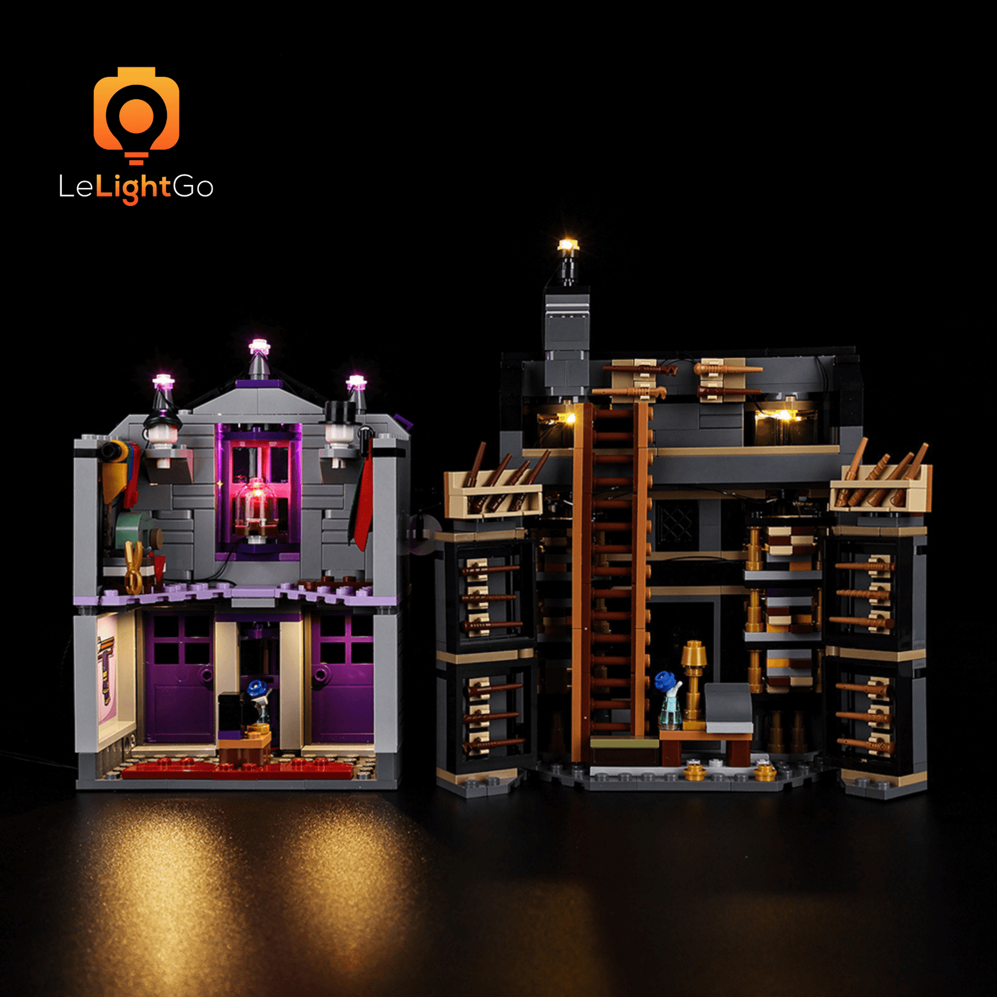 Bring magical shine to your Ollivanders & Madam Malkin's Robes 76439. This lighting kit is designed especially for the Lego Harry Potter Ollivanders & Madam Malkin's Robes 76439. This highly detailed Lego model is a spectacle in itself, but when paired with the LeLightGo lighting kit, the charming model comes alive, not only during the day but also at night.