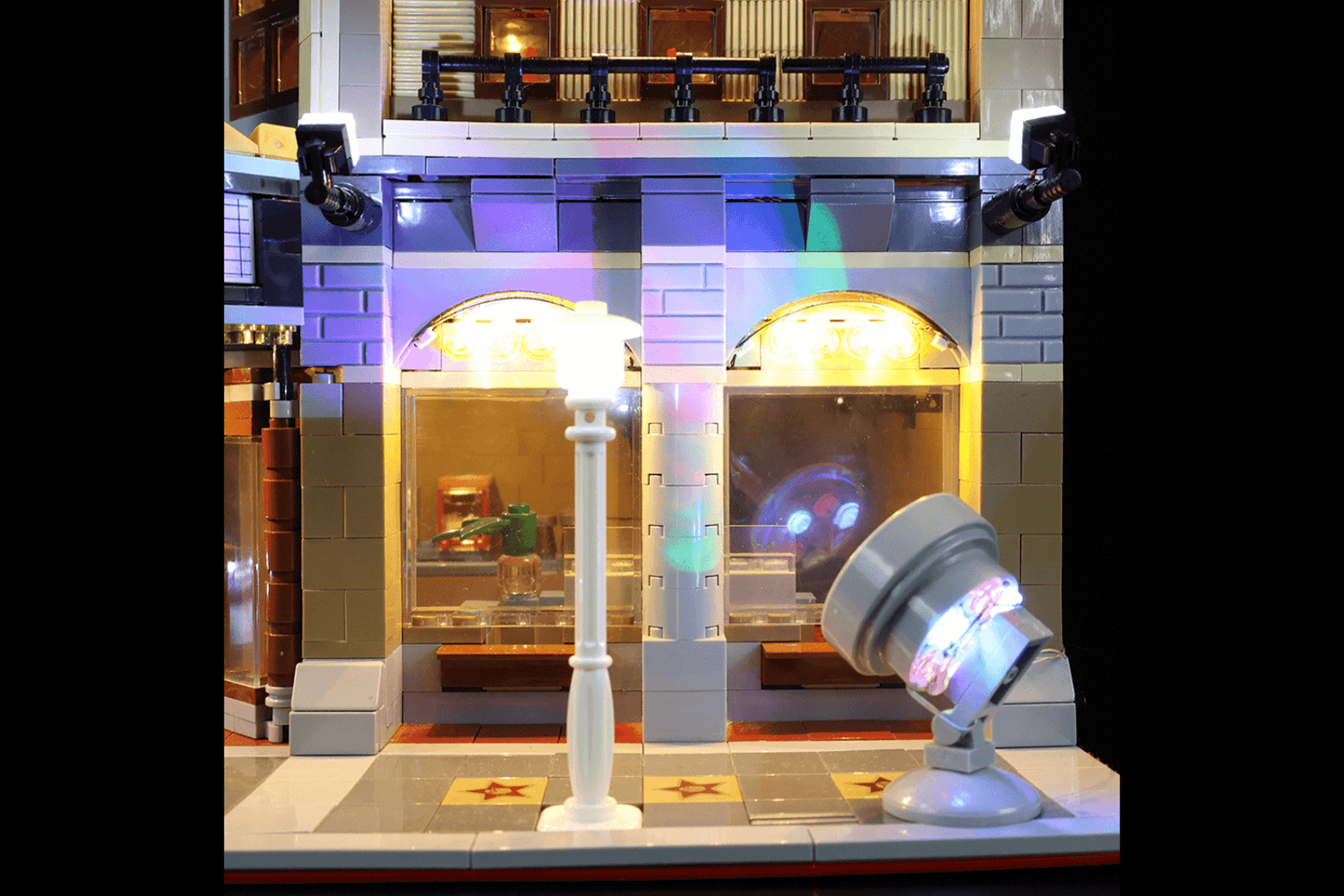This is one of my favourite modulars. I decided to add a floor to mine and have added some custom stickers, as well as of course lights, which I think you'll agree just works do well in bringing this set to life
