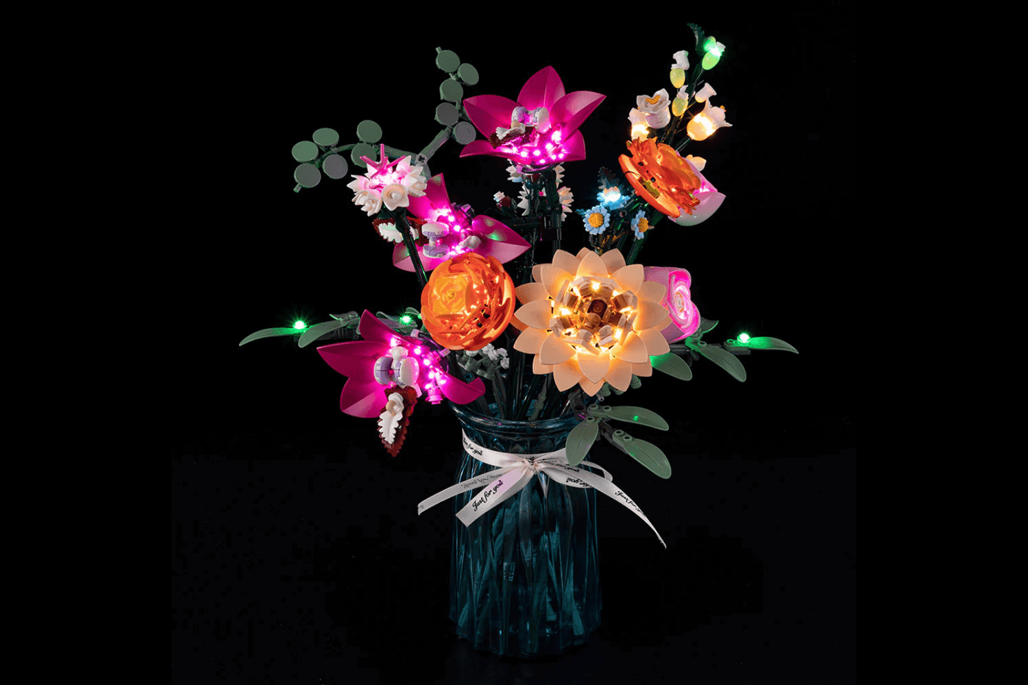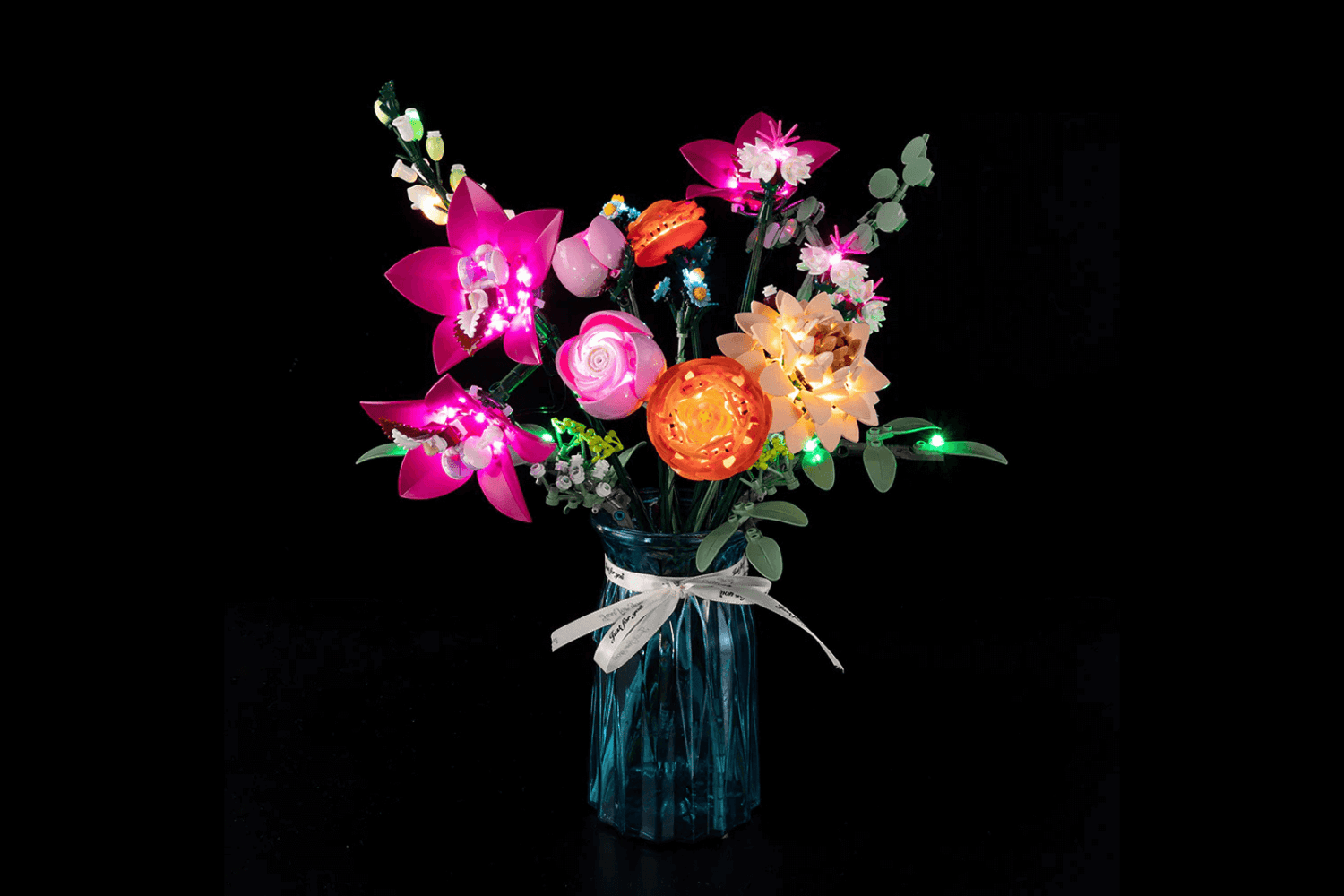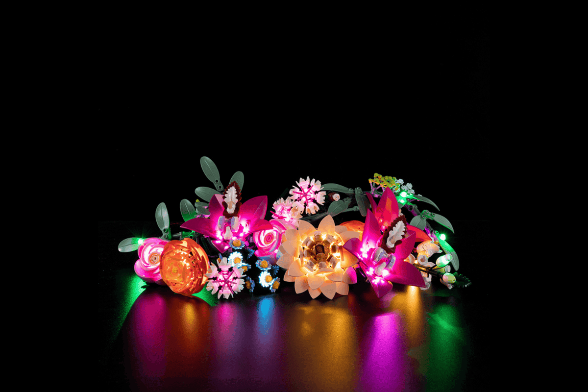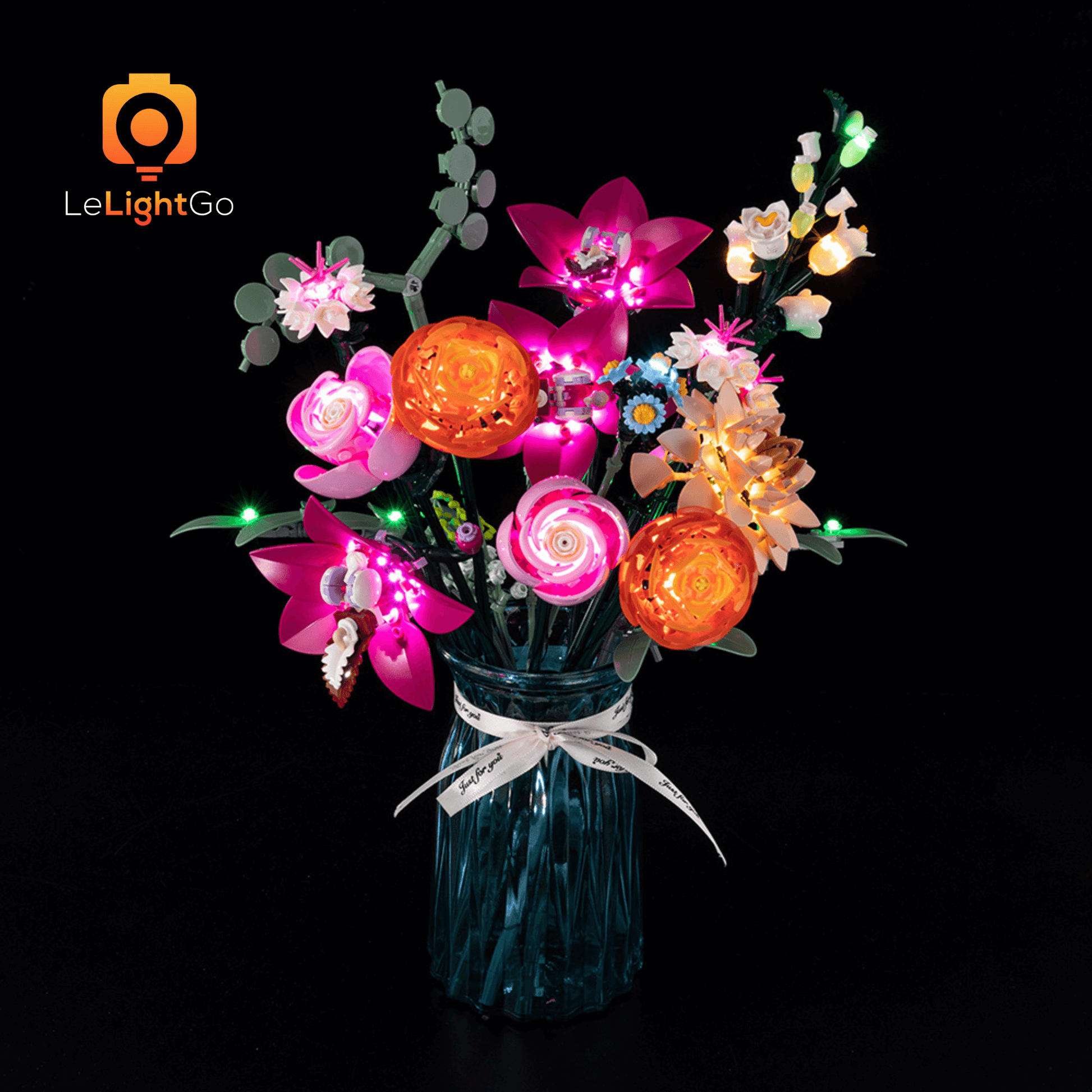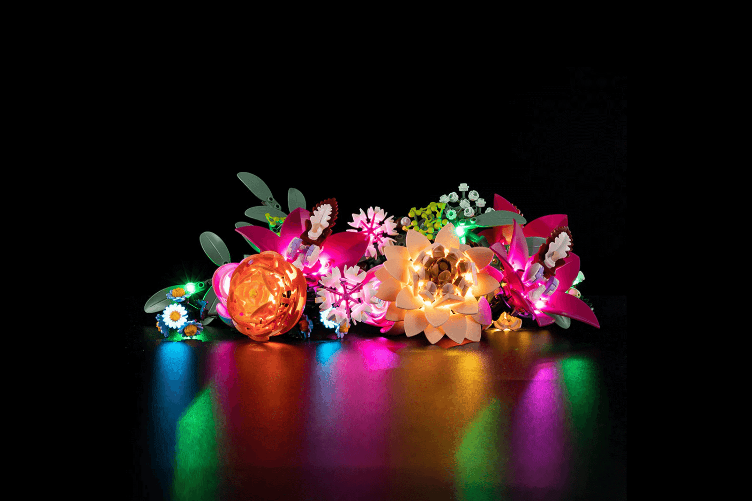 Bring magical shine to your Pretty Pink Flower Bouquet 10342. This lighting kit is designed especially for the Lego Botanical Collection Pretty Pink Flower Bouquet 10342. This highly detailed Lego model is a spectacle in itself, but when paired with the LeLightGo lighting kit, the charming model comes alive, not only during the day but also at night.