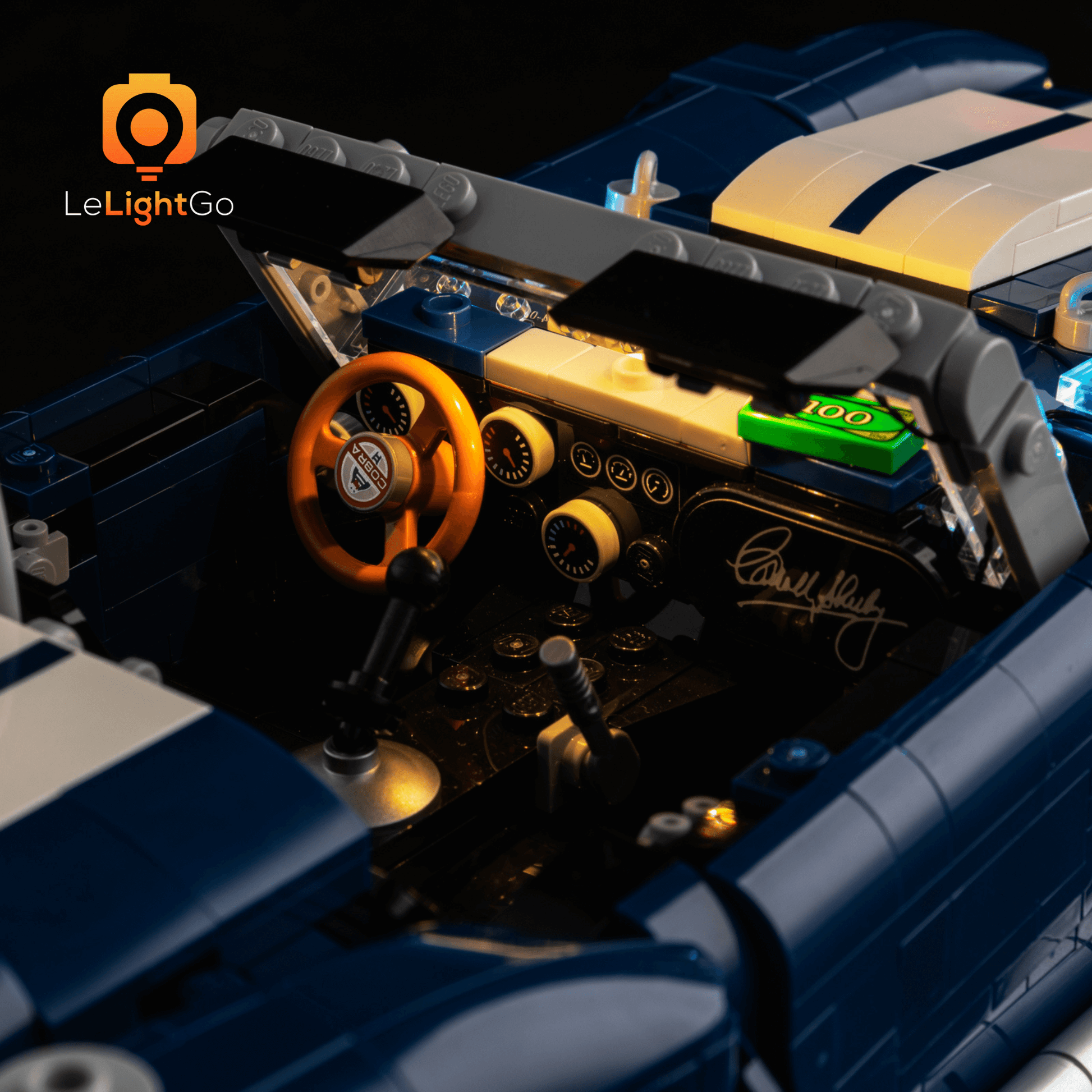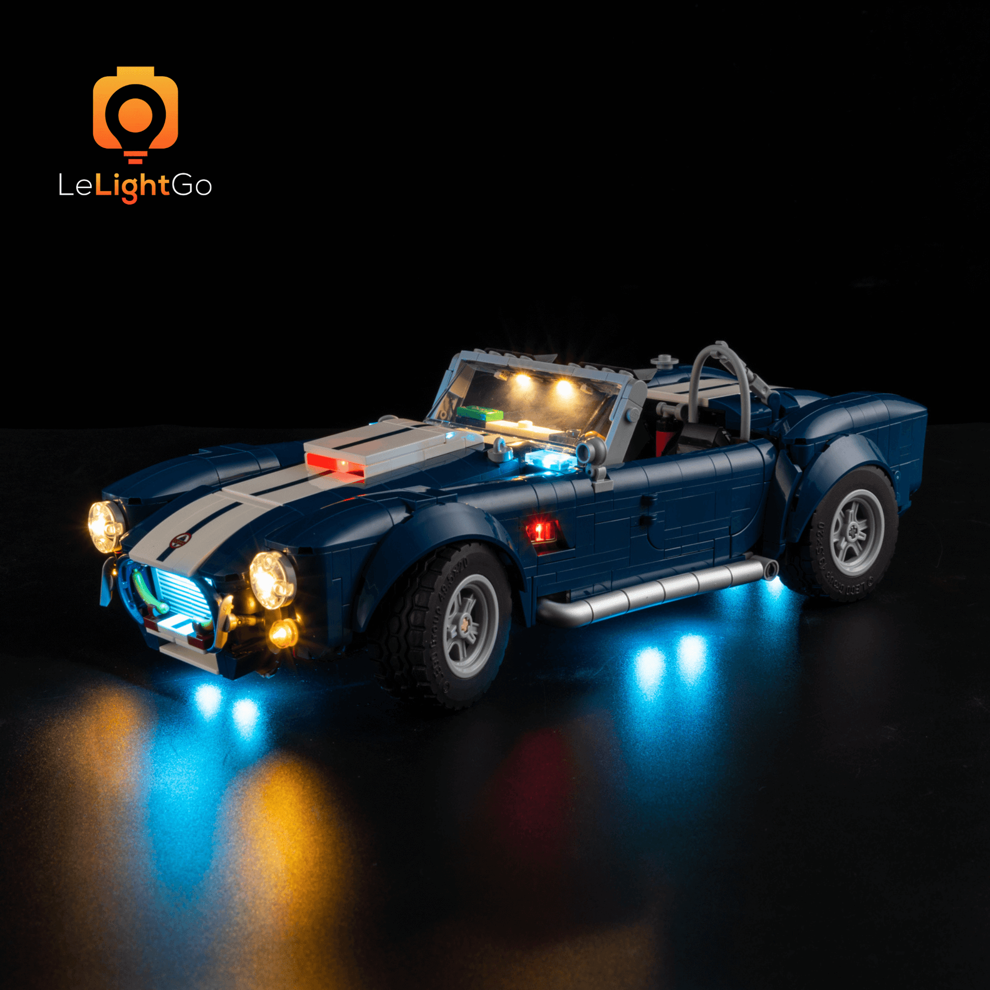 Bring magical shine to your Shelby Cobra 427 S/C 10357. This lighting kit is designed especially for the Lego ICONS Shelby Cobra 427 S/C 10357. This highly detailed Lego model is a spectacle in itself, but when paired with the LeLightGo lighting kit, the charming model comes alive, not only during the day but also at night.
