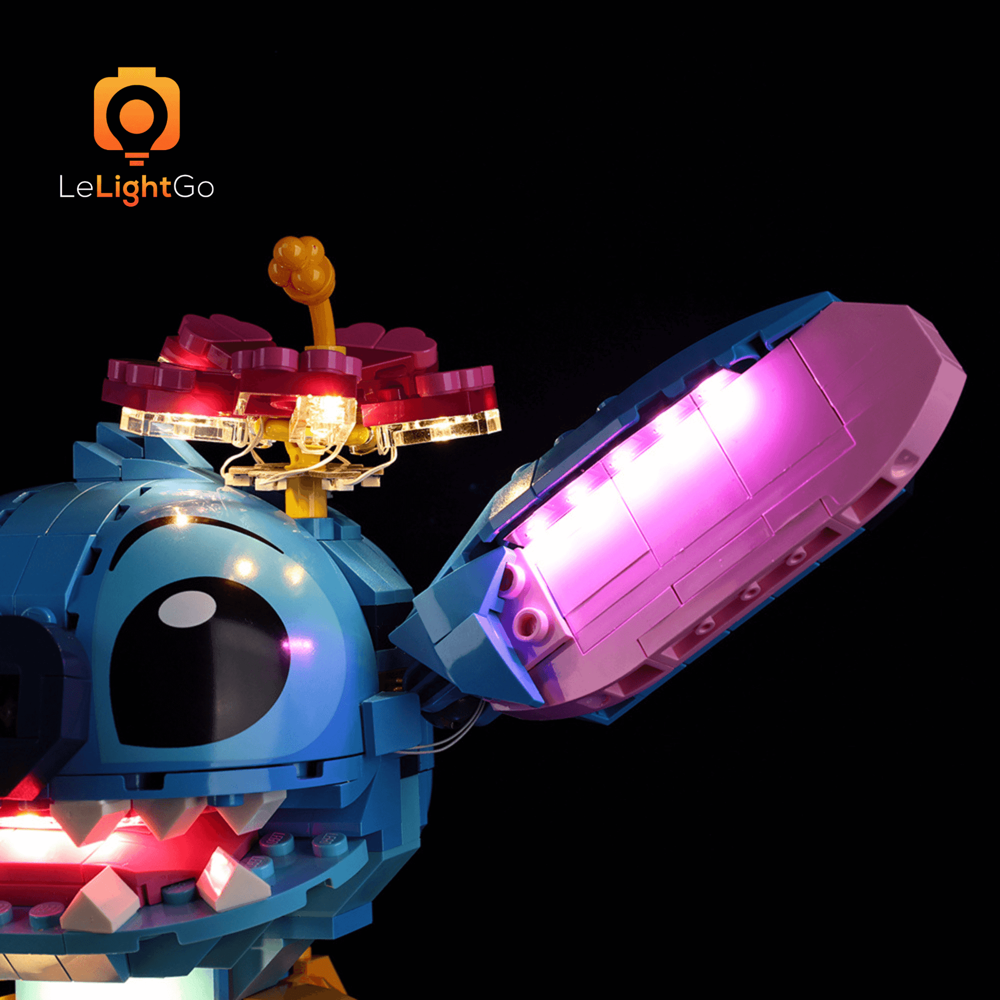 Bring magical shine to your Stitch 43249. This lighting kit is designed especially for the Lego Disney Stitch 43249. This highly detailed Lego model is a spectacle in itself, but when paired with the LeLightGo lighting kit, the charming model comes alive, not only during the day but also at night.