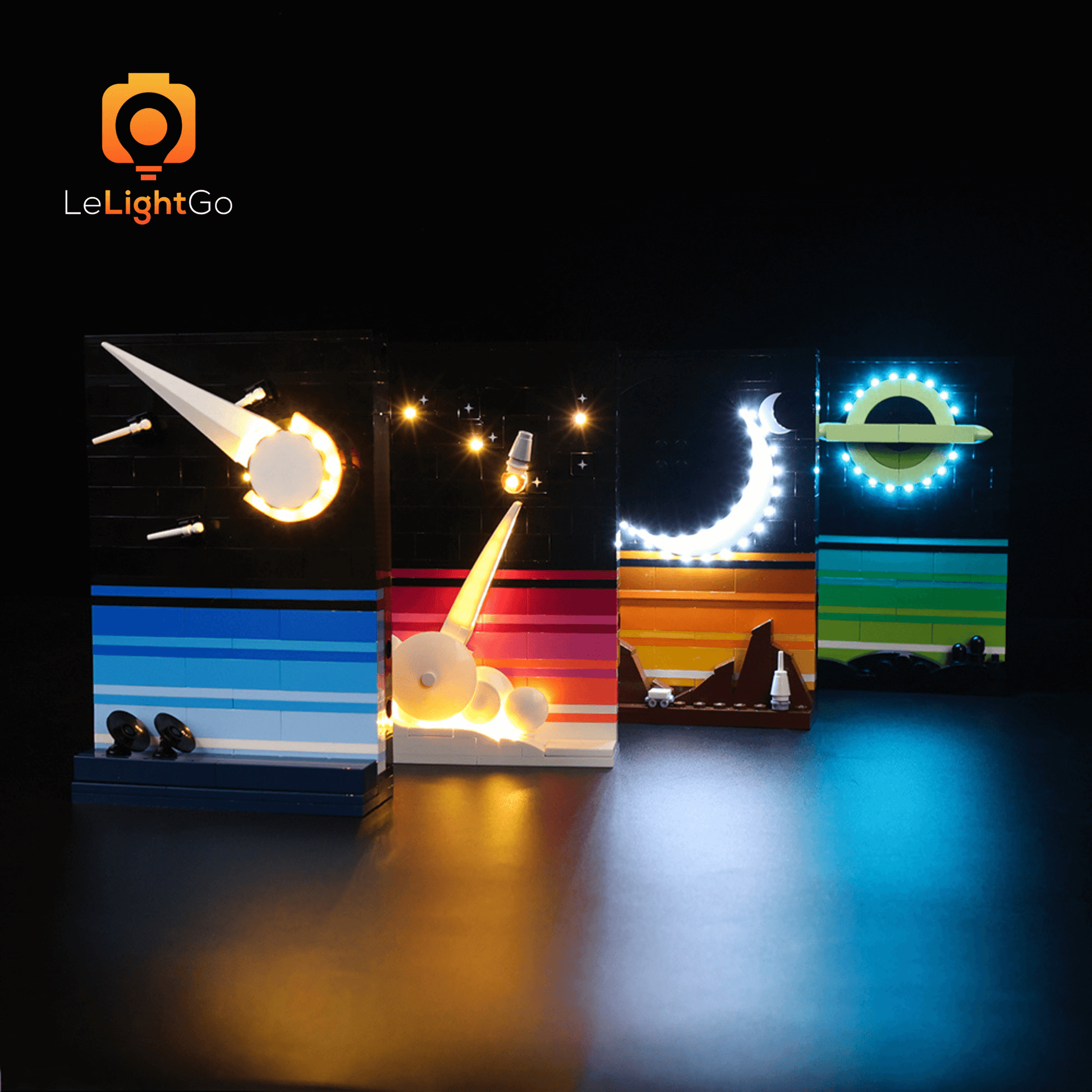 Bring magical shine to your Tales of the Space Age 21340. This lighting kit is designed especially for the Lego Ideas Tales of the Space Age 21340. This highly detailed Lego model is a spectacle in itself, but when paired with the LeLightGo lighting kit, the charming model comes alive, not only during the day but also at night.