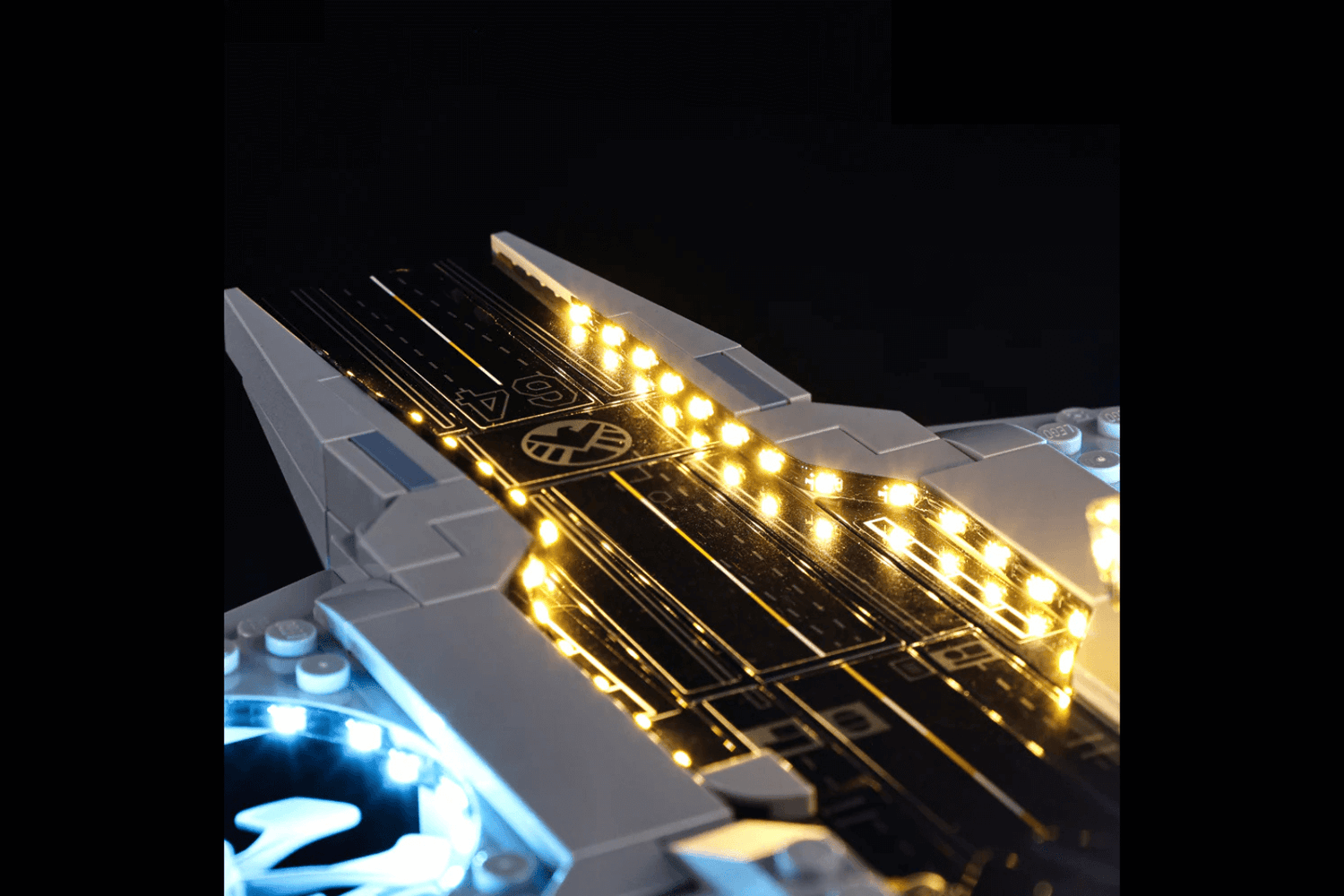 Bring magical shine to your The Avengers Helicarrier 76295. This lighting kit is designed especially for the Lego Marvel The Avengers Helicarrier 76295 This highly detailed Lego model is a spectacle in itself, but when paired with the LeLightGo lighting kit, the charming model comes alive, not only during the day but also at night.