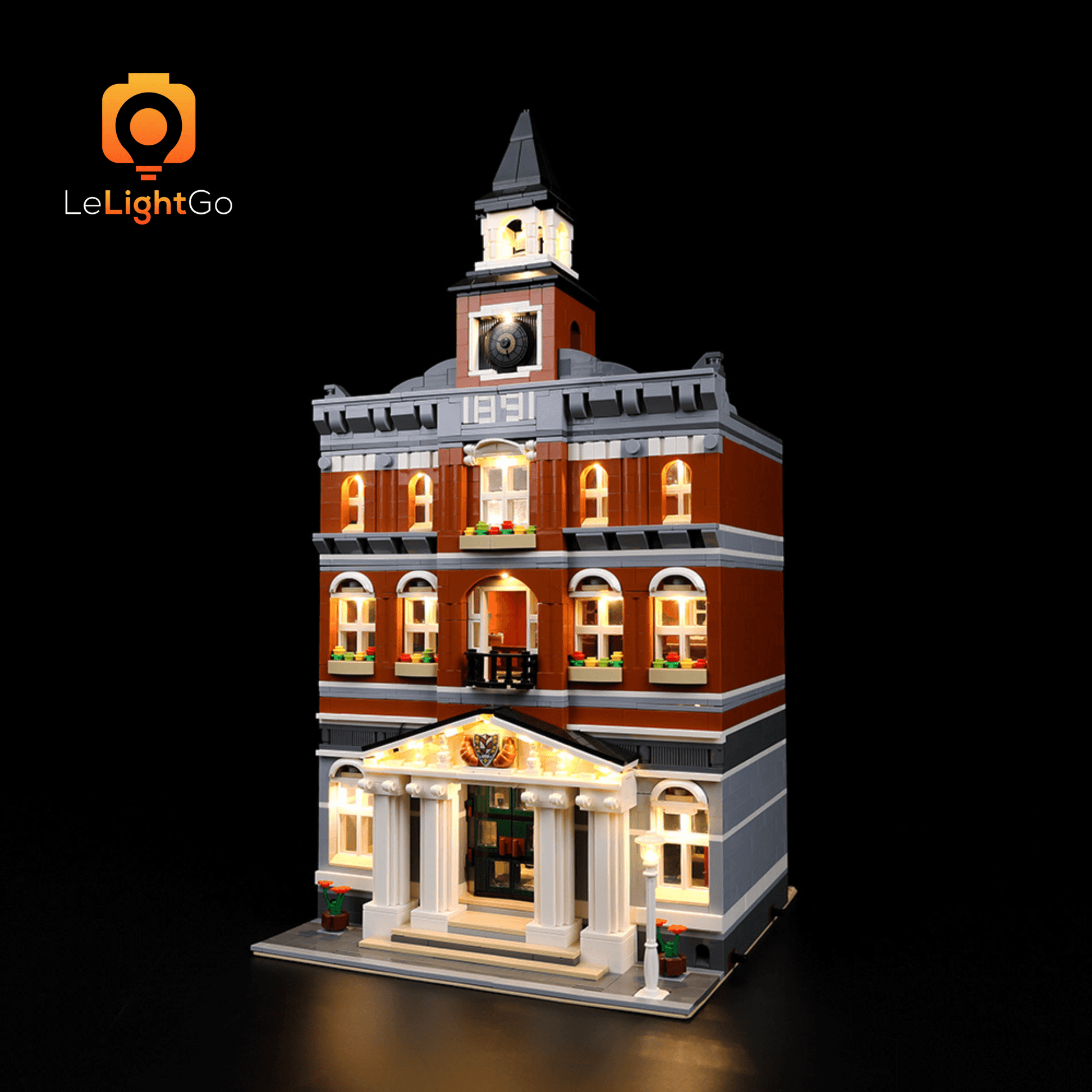 Bring magical shine to your Town Hall 10224. This lighting kit is designed especially for the Lego Town Hall 10224. This highly detailed Lego model is a spectacle in itself, but when paired with the LeLightGo lighting kit, the charming model comes alive, not only during the day but also at night.