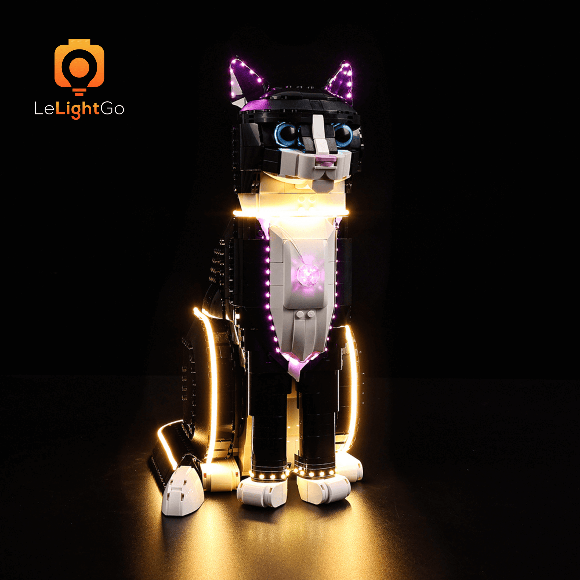 Bring magical shine to your Tuxedo Cat 21349. This lighting kit is designed especially for the Lego Ideas Tuxedo Cat 21349. This highly detailed Lego model is a spectacle in itself, but when paired with the LeLightGo lighting kit, the charming model comes alive, not only during the day but also at night.