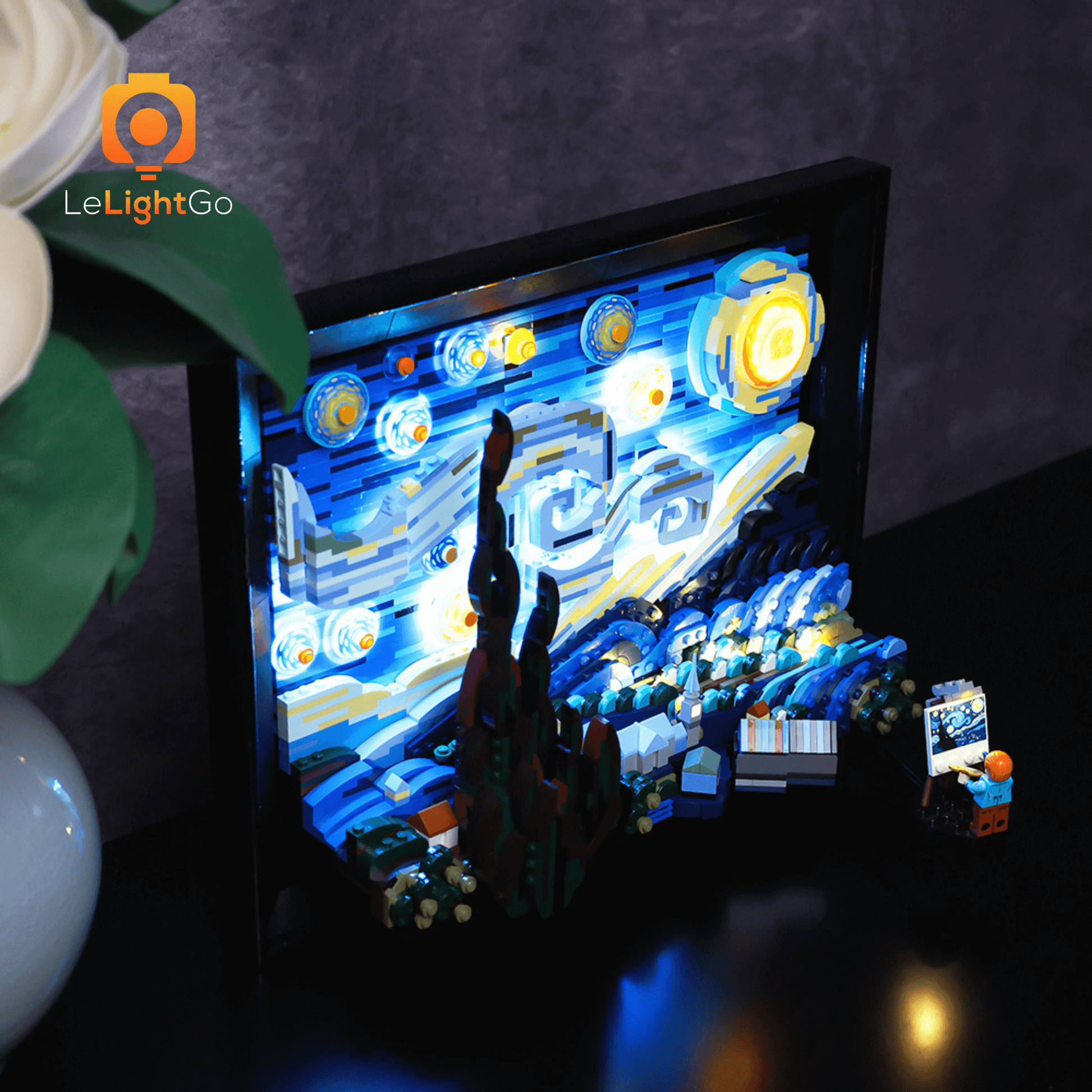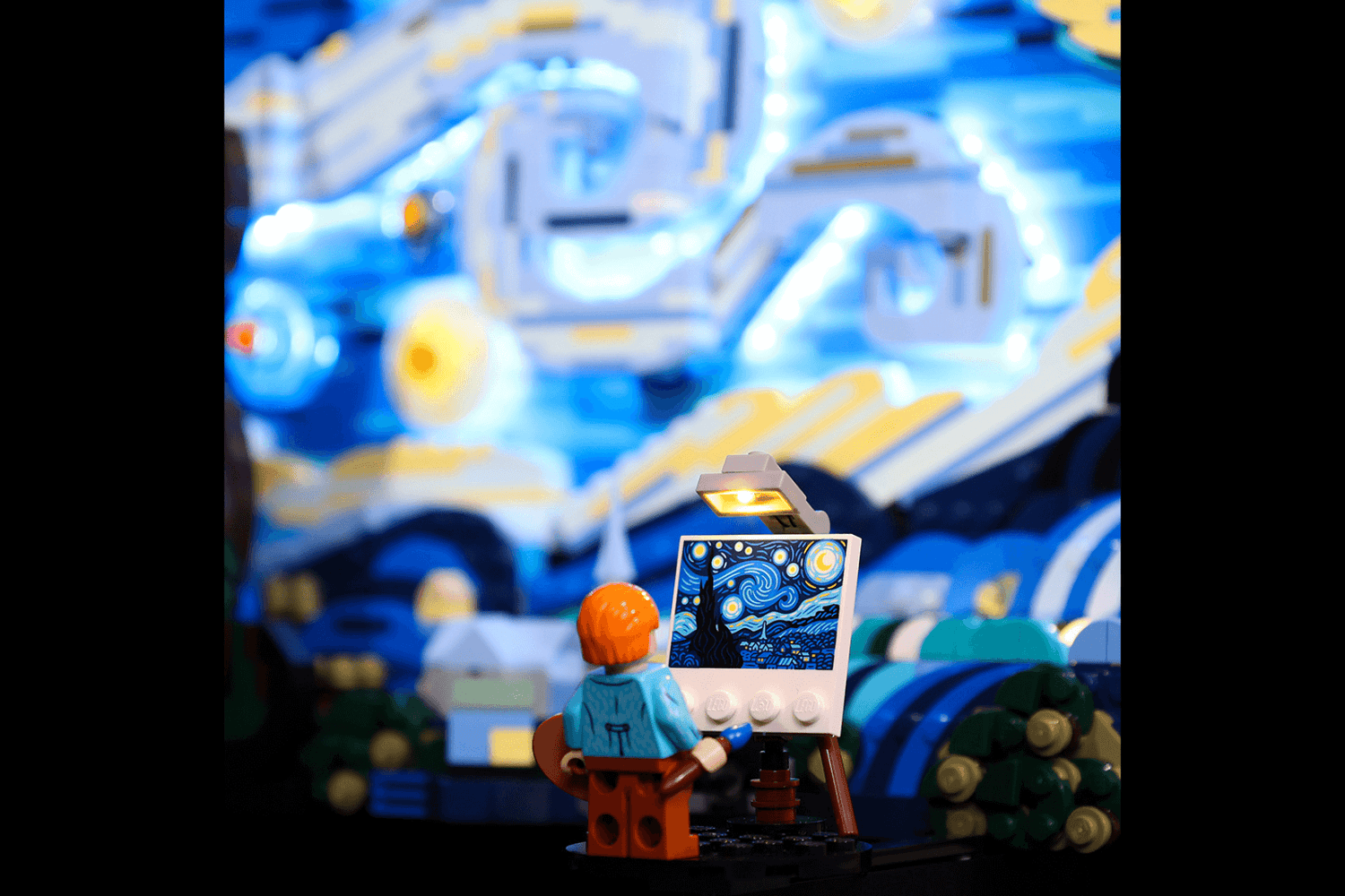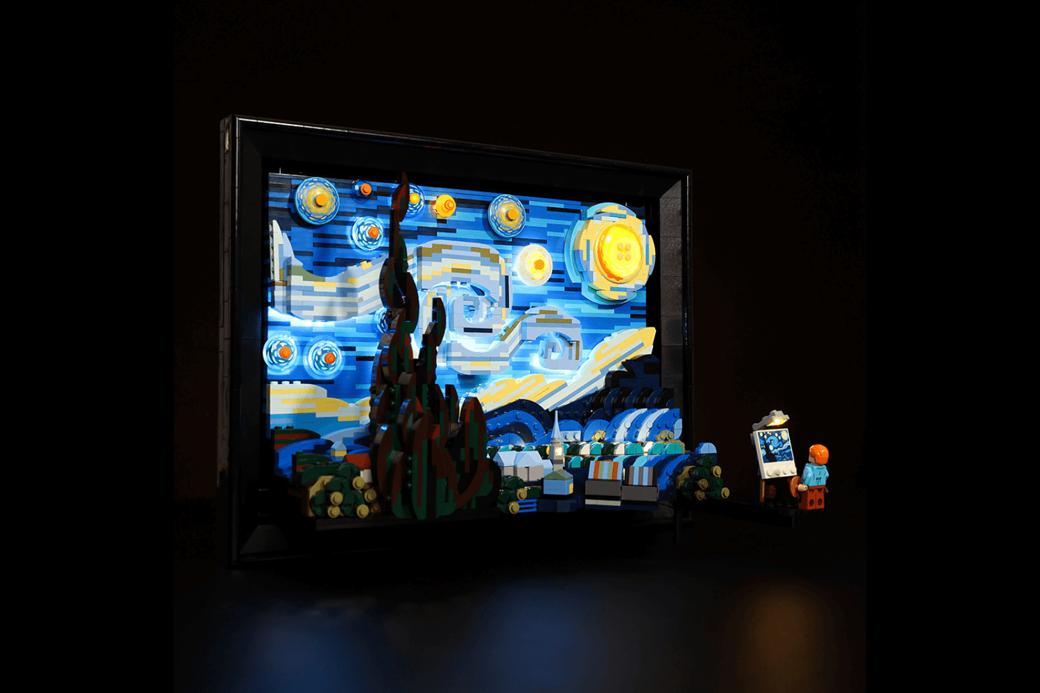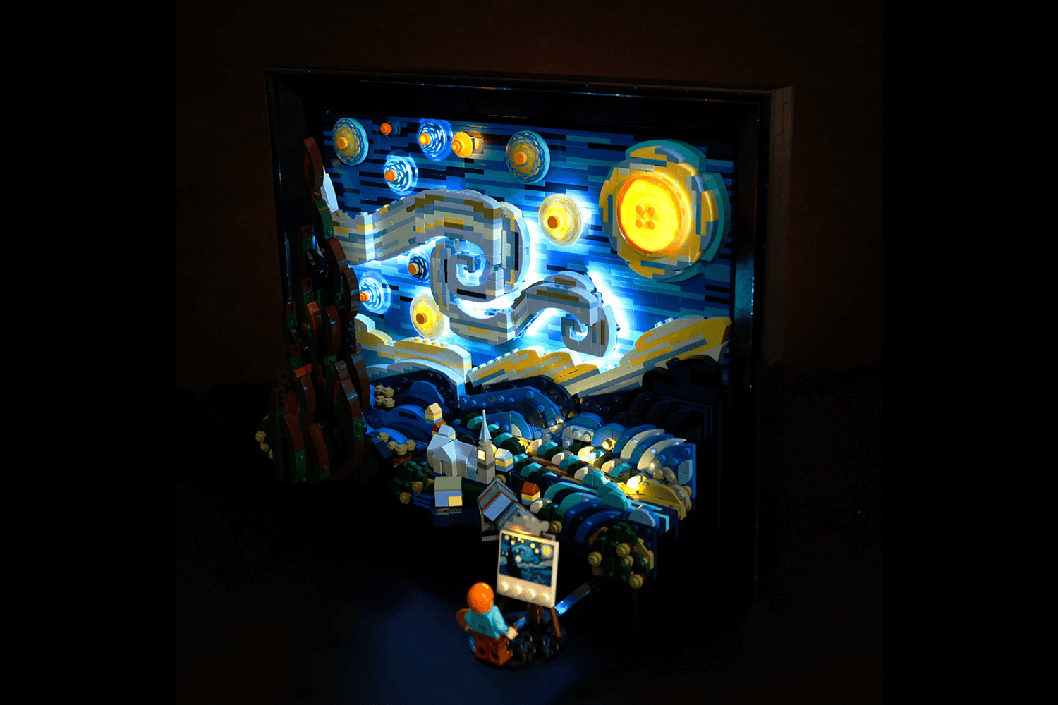 Turn your Vincent van Gogh - The Starry Night LEGO® Set into a glowing masterpiece that feels alive.
