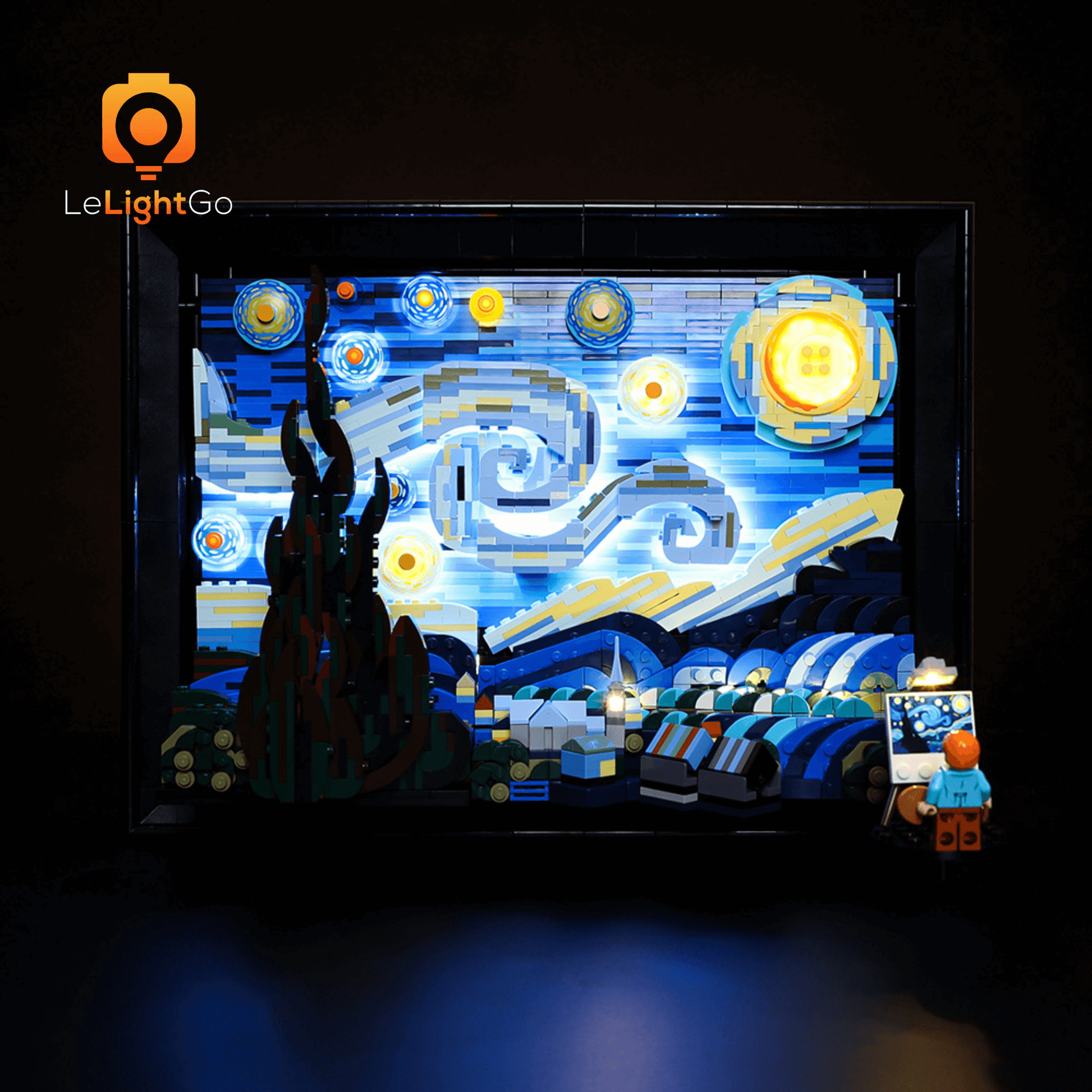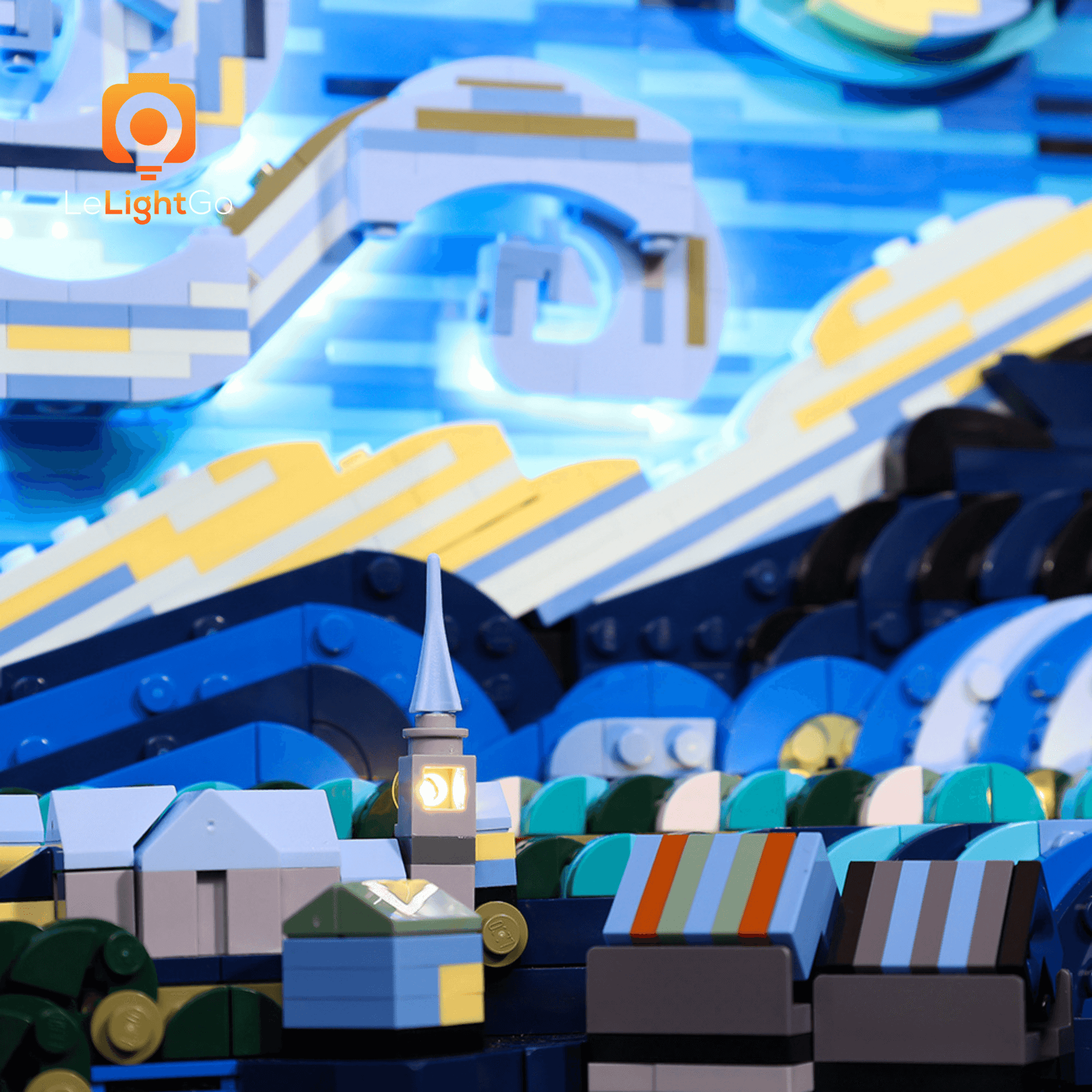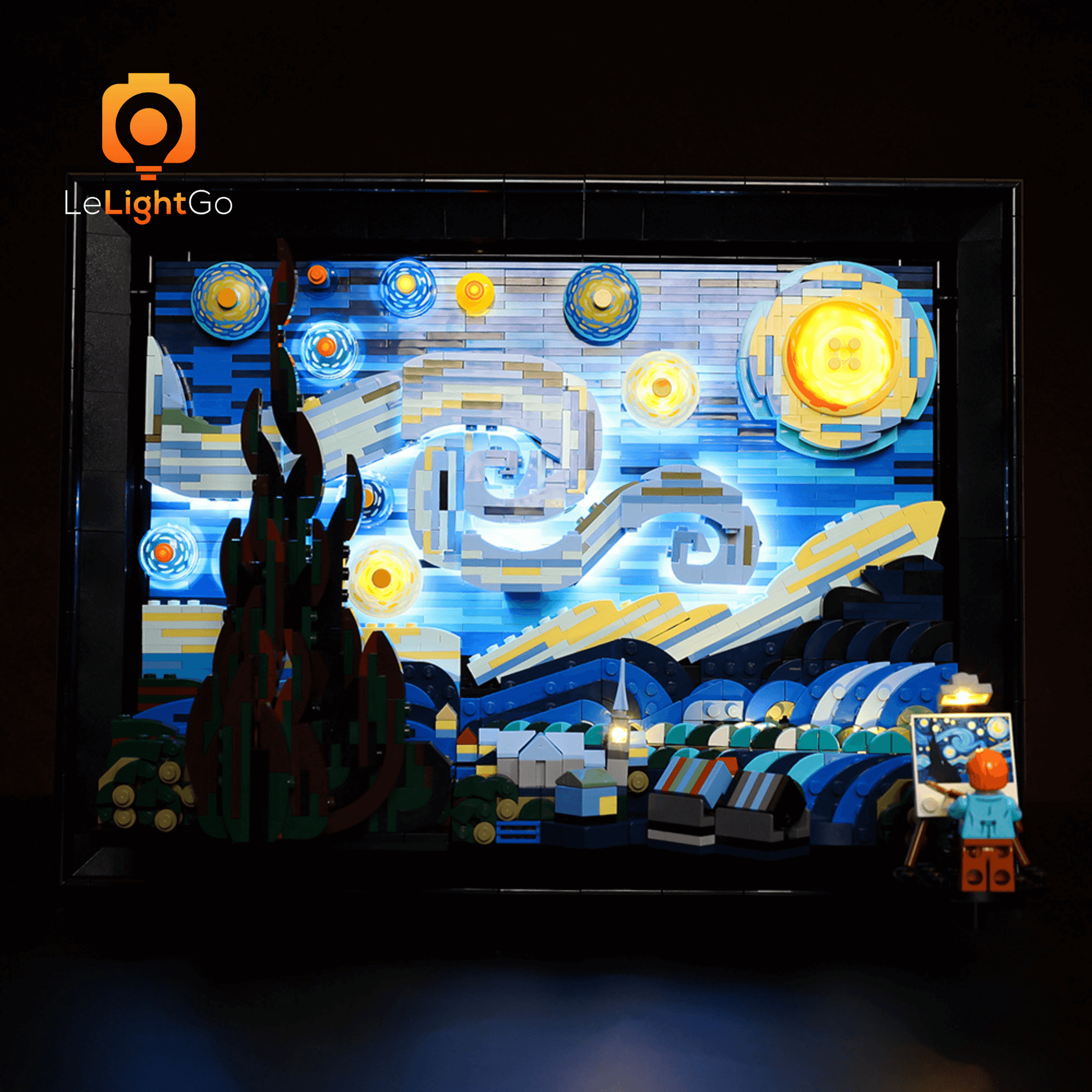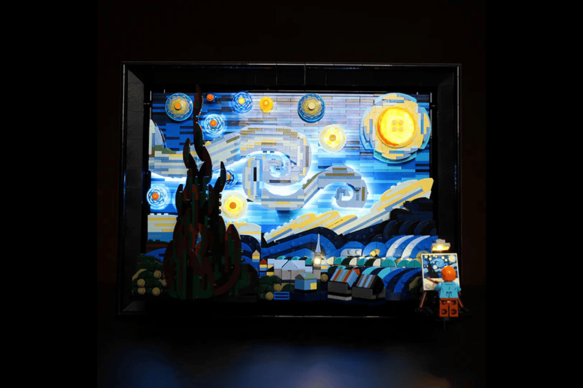 Turn your Vincent van Gogh - The Starry Night LEGO® Set into a glowing masterpiece that feels alive.