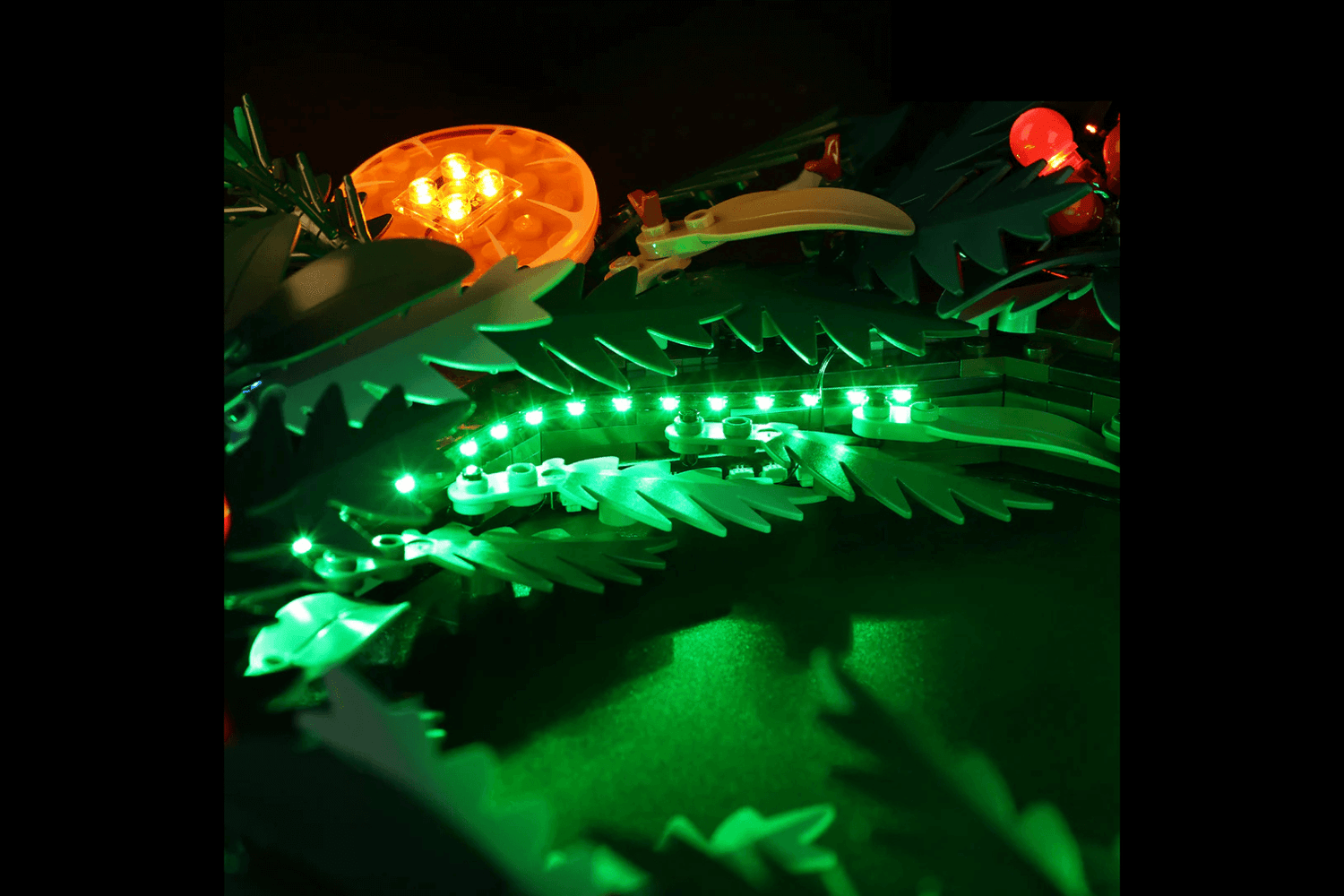 Bring magical shine to your Wreath 10340. This lighting kit is designed especially for the Lego ICONS Wreath 10340. This highly detailed Lego model is a spectacle in itself, but when paired with the LeLightGo lighting kit, the charming model comes alive, not only during the day but also at night.