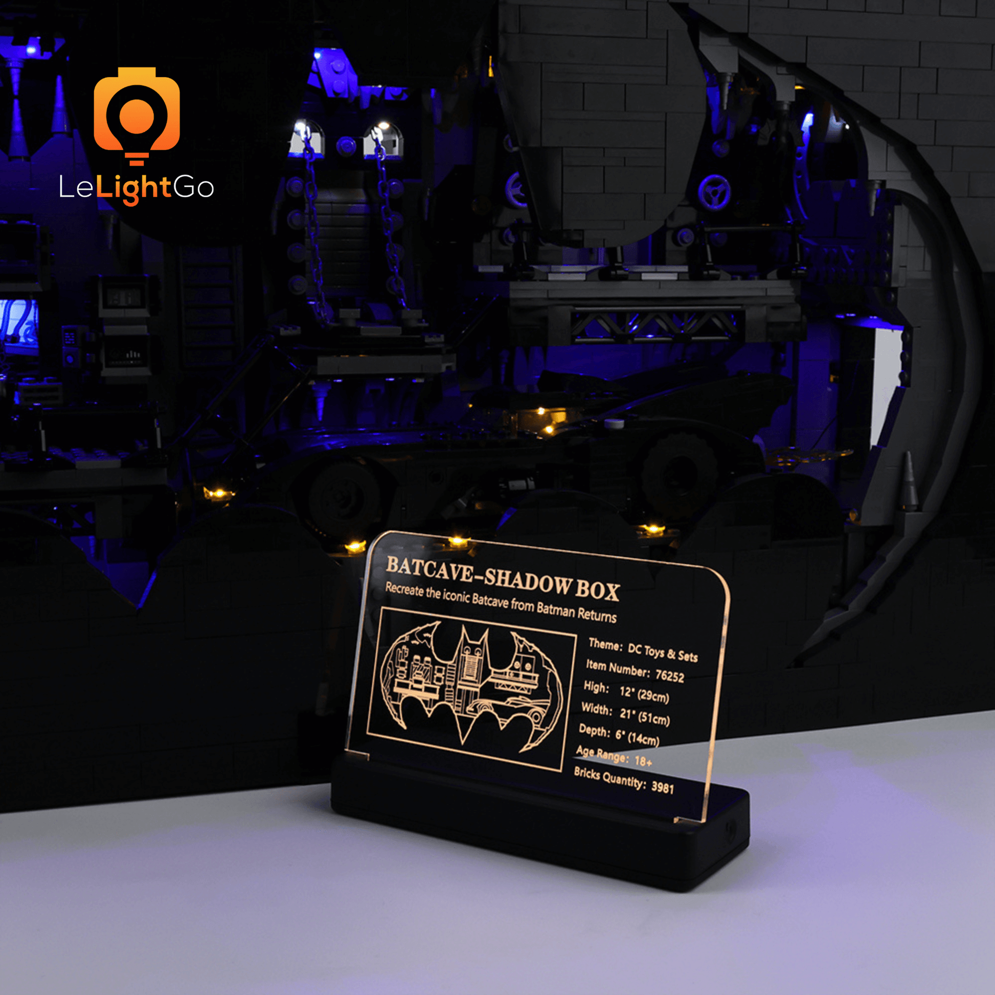 Making Batcave – Shadow Box LEGO set more entertaining to see is different from actually building it. Use our fantastic LED Nameplates for LEGO Batcave – Shadow Box to exhibit your favorite Batcave – Shadow Box set. The nameplates artfully display the set's name along with fascinating facts about the model, the function, the type of the set, and other exciting details.