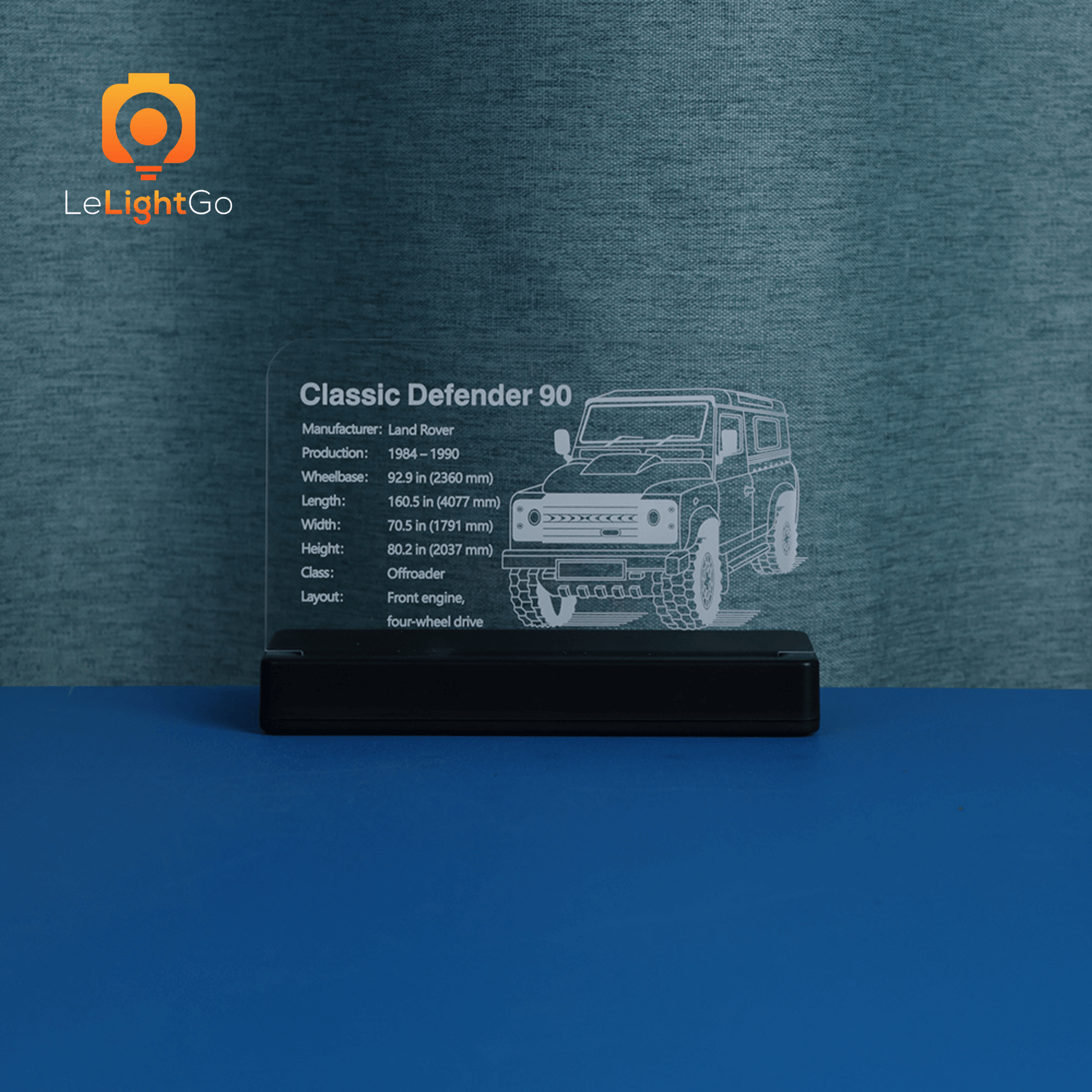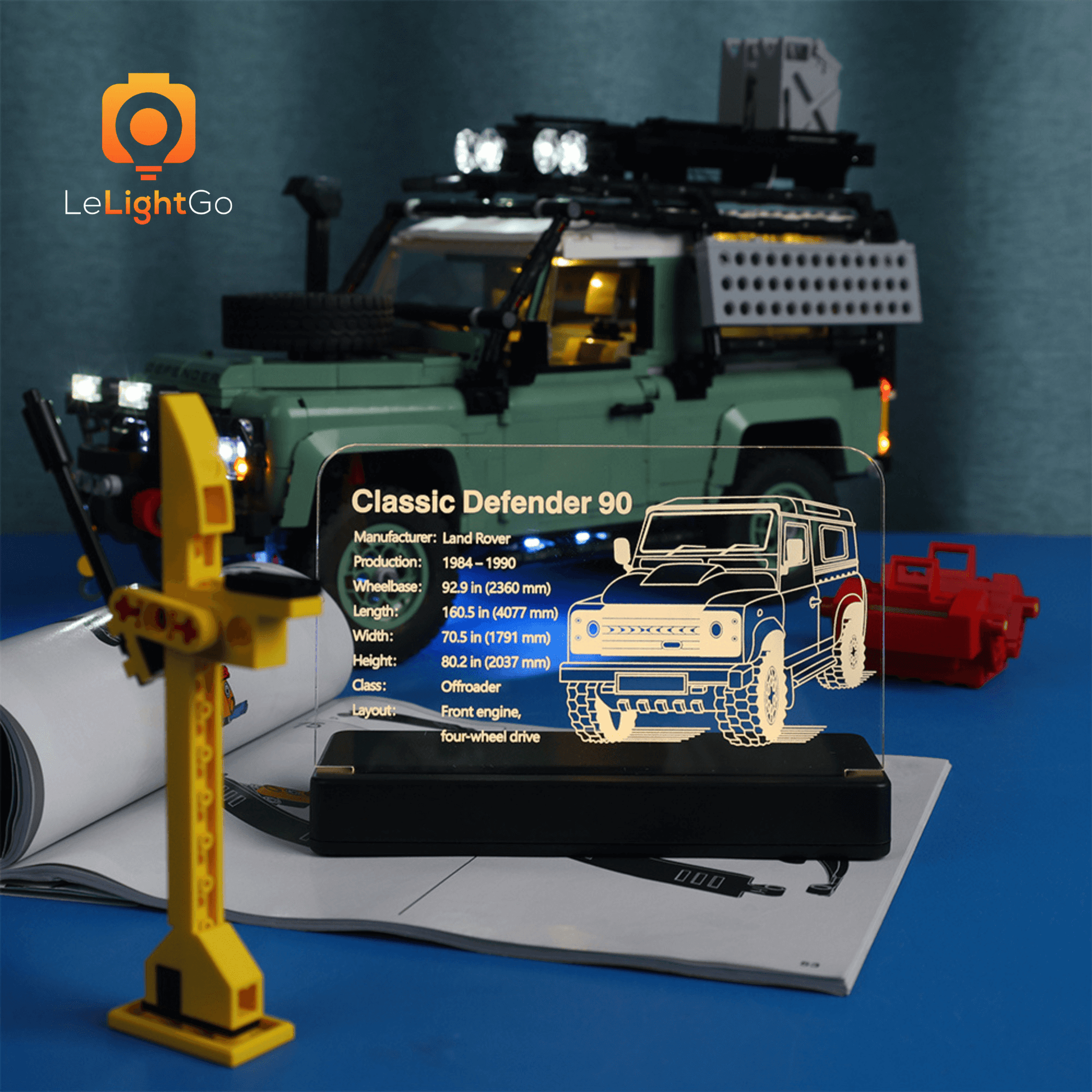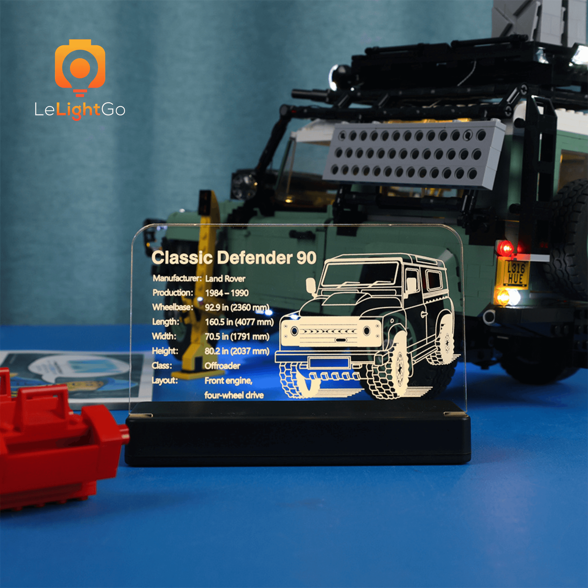 - Clear acrylic nameplate is designed specifically for Land Rover Classic Defender 90 Lego set, the personalized nameplates with graphics and basic information about the LEGO set.