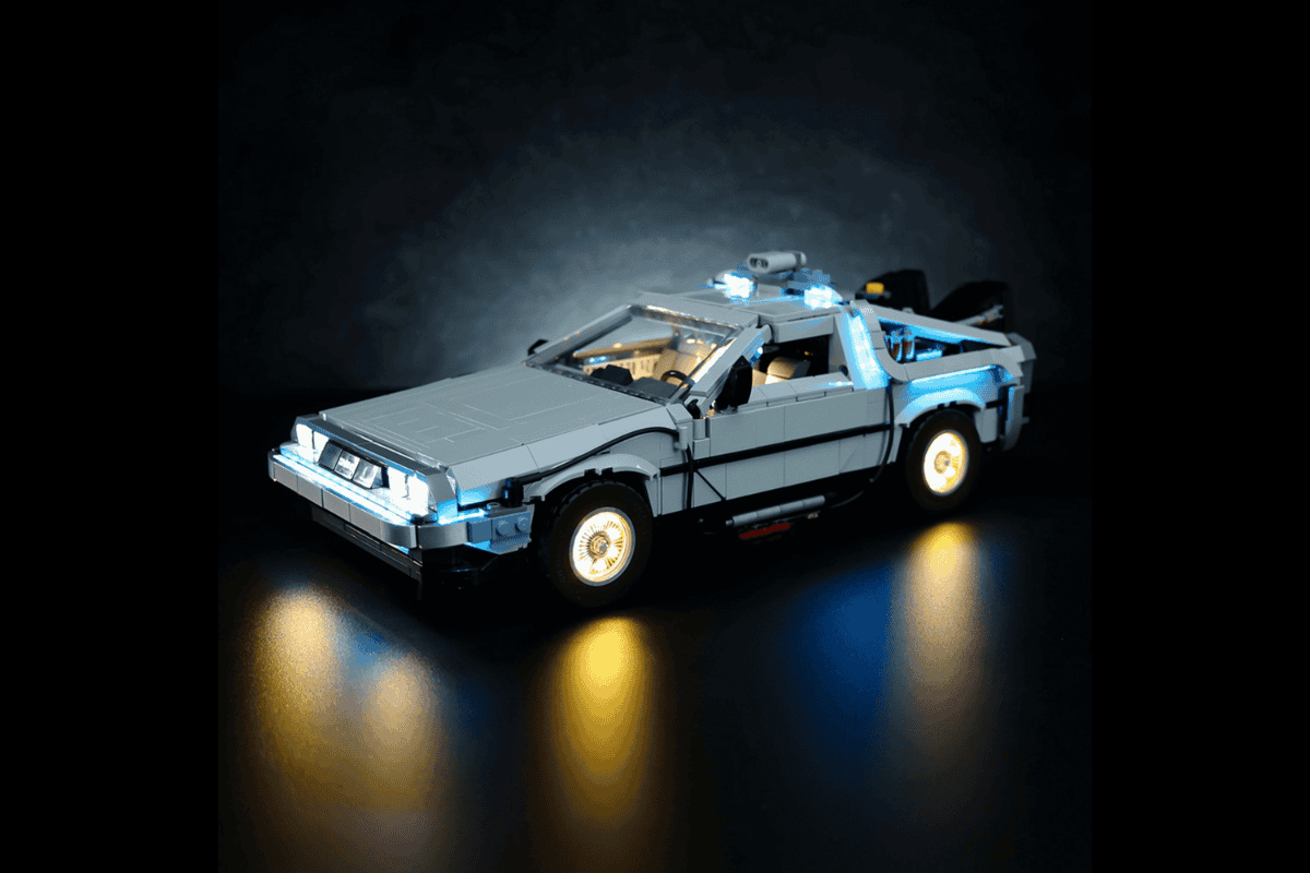 Turn your Back to the Future Time Machine LEGO® Set into a glowing masterpiece that feels alive.