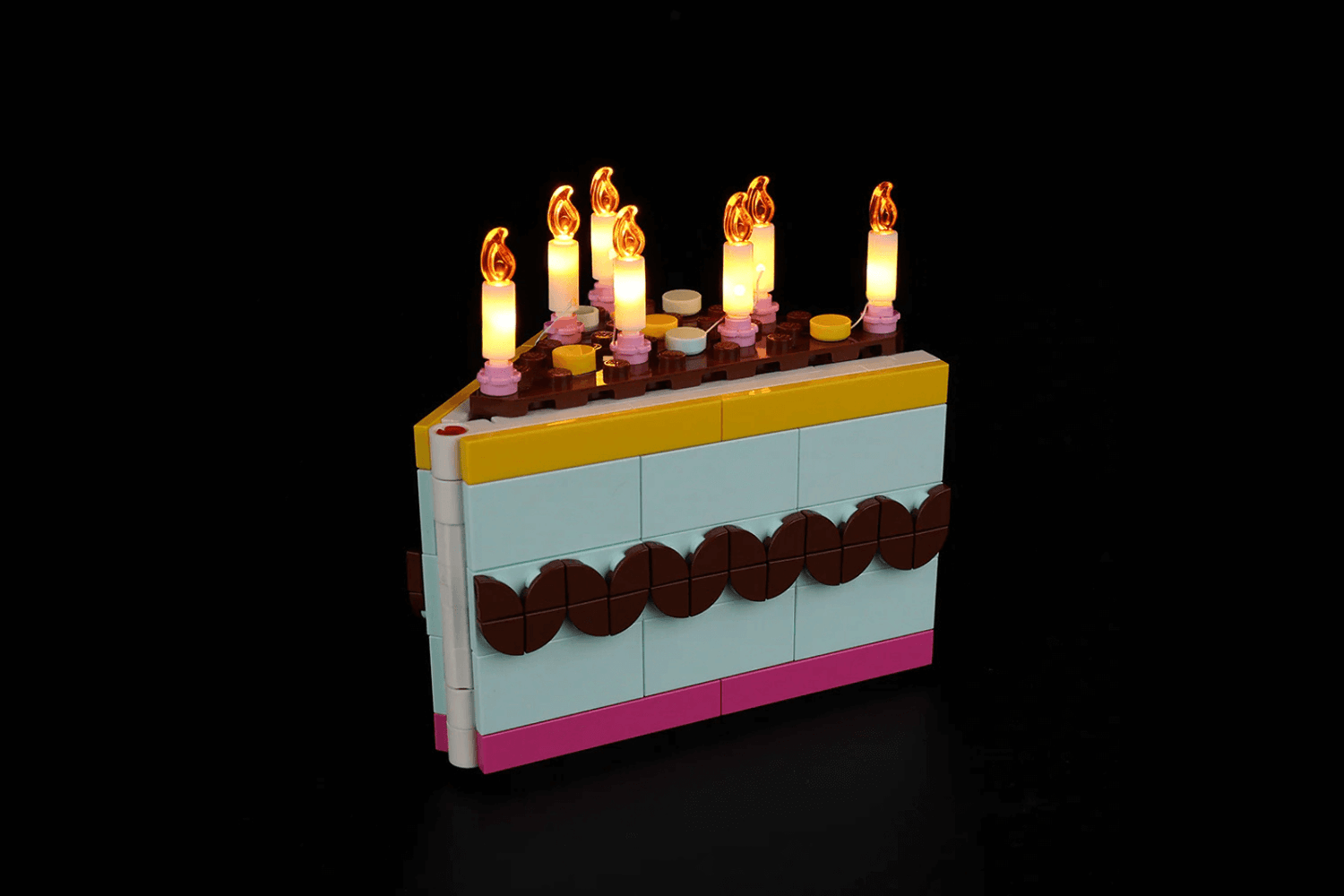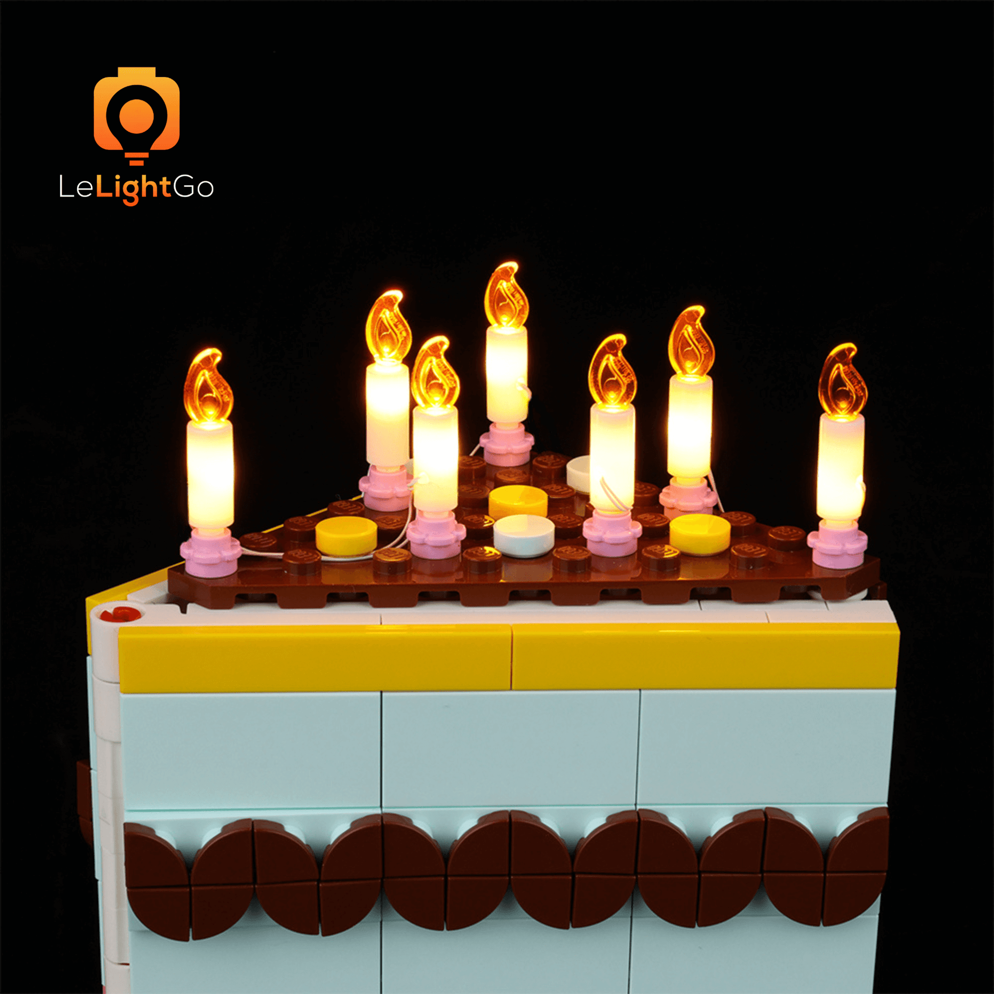 Bring magical shine to your Birthday Cake 40641. This lighting kit is designed especially for the Lego Birthday Cake 40641. This highly detailed Lego model is a spectacle in itself, but when paired with the LeLightGo lighting kit, the charming model comes alive, not only during the day but also at night.