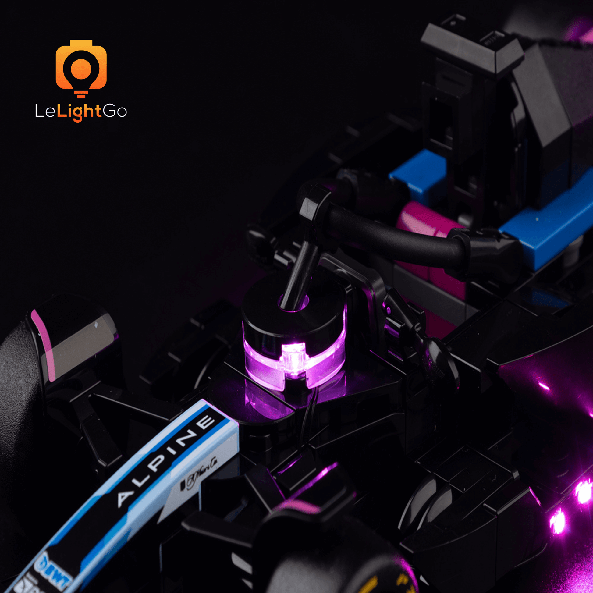 Bring magical shine to your BWT Alpine F1 Team A524 Race Car 77248. This lighting kit is designed especially for the Lego Speed Champions BWT Alpine F1 Team A524 Race Car 77248. This highly detailed Lego model is a spectacle in itself, but when paired with the LeLightGo lighting kit, the charming model comes alive, not only during the day but also at night.